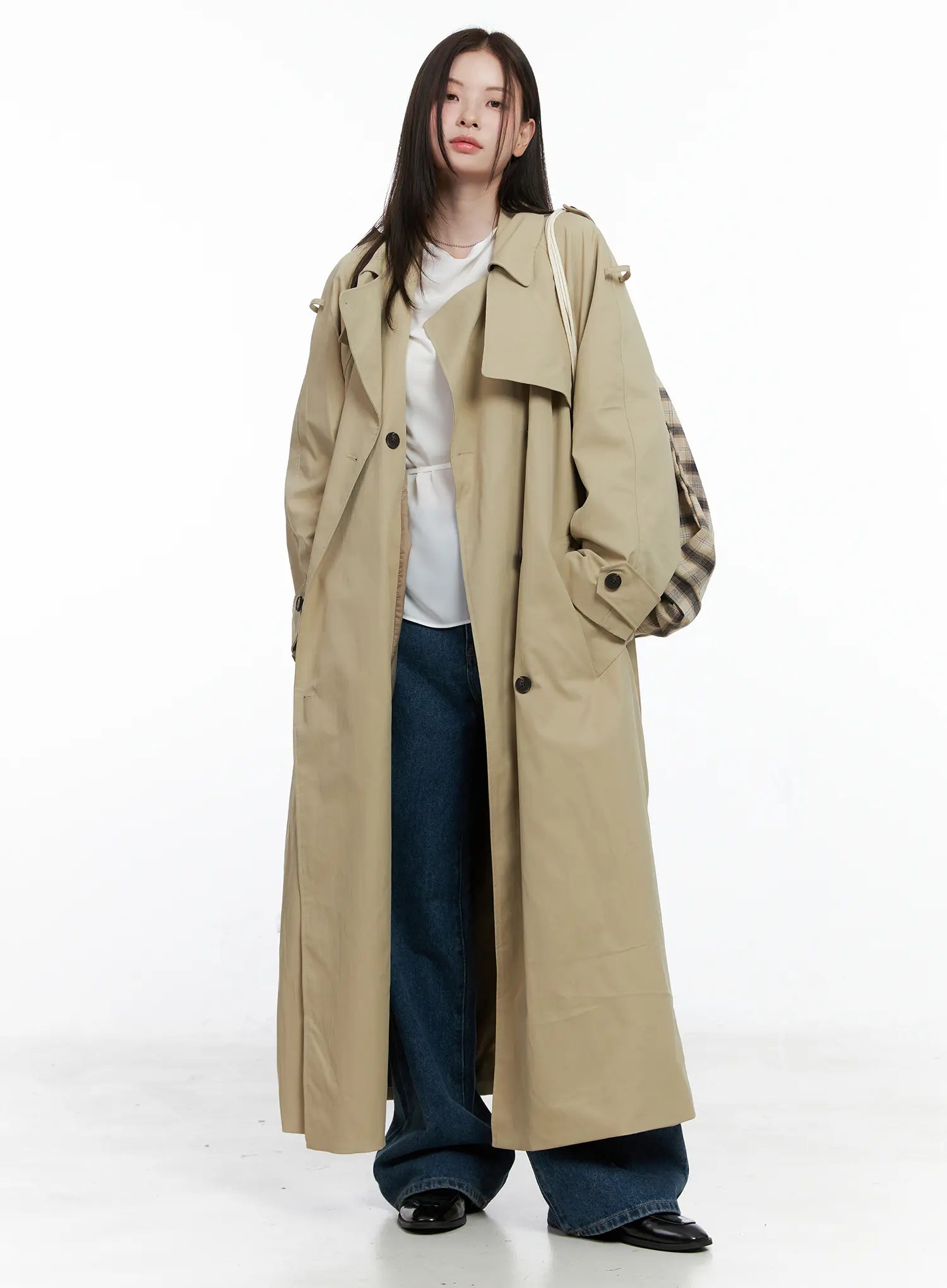 Model is wearing size One Size and the color Beige.