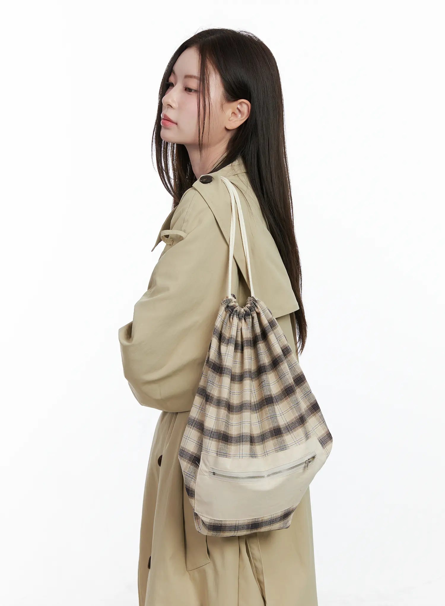 Checkered Cotton Drawstring Backpack CO521