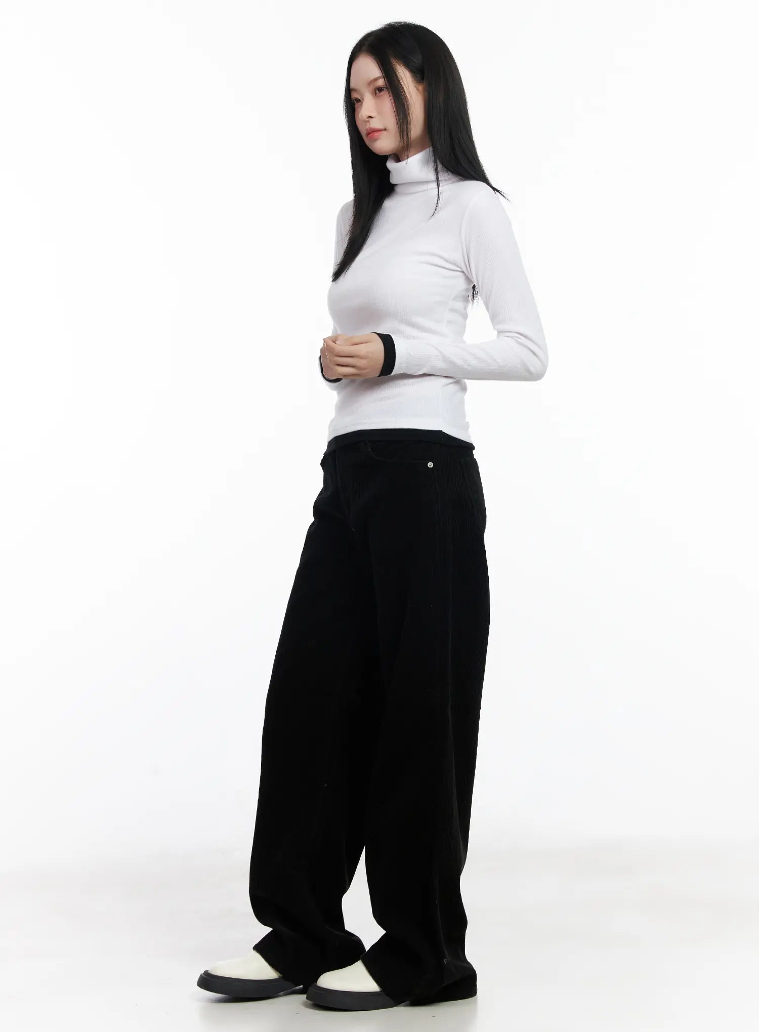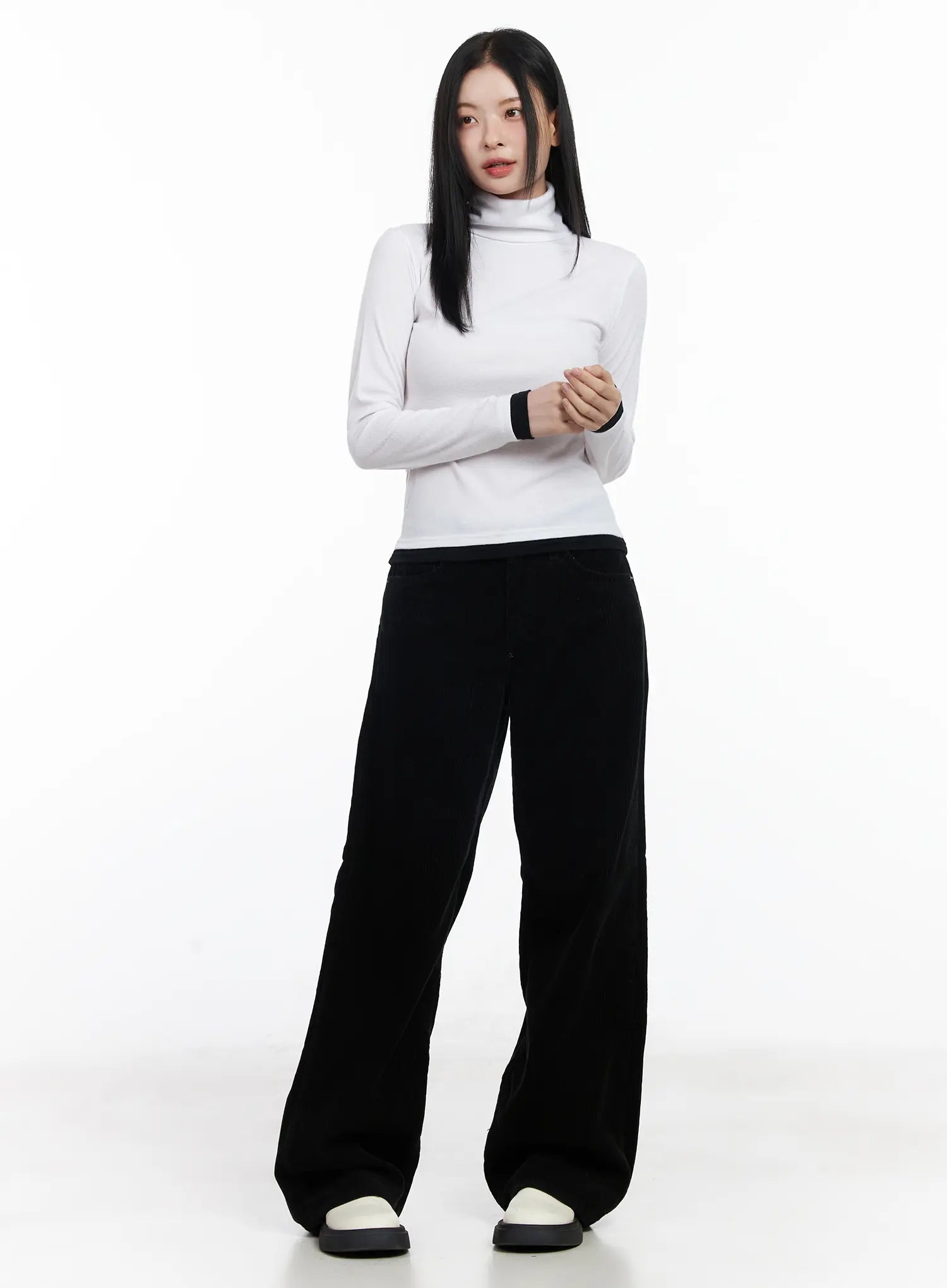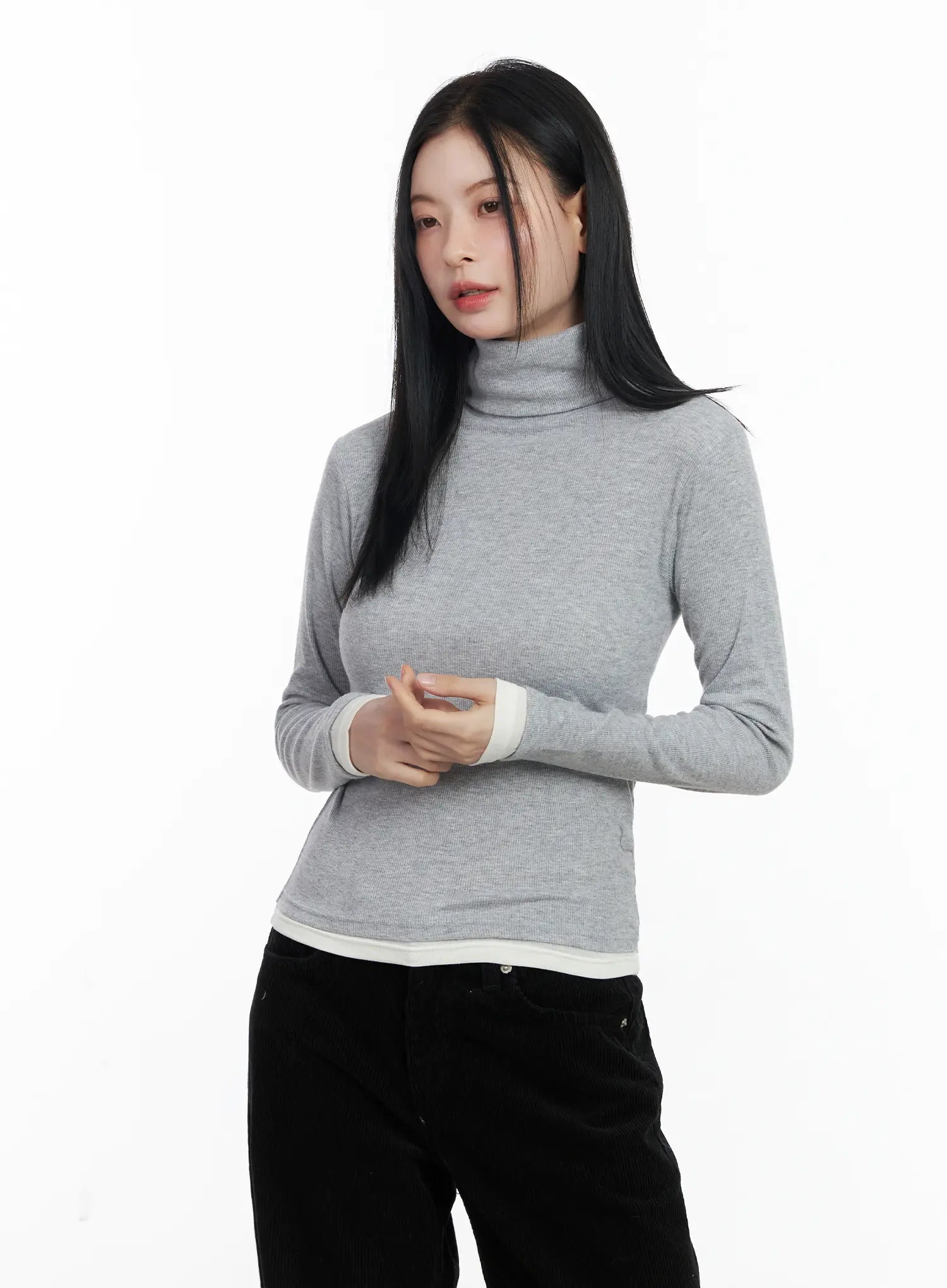 Contrast Cuff Turtleneck Long Sleeve Top CJ520
