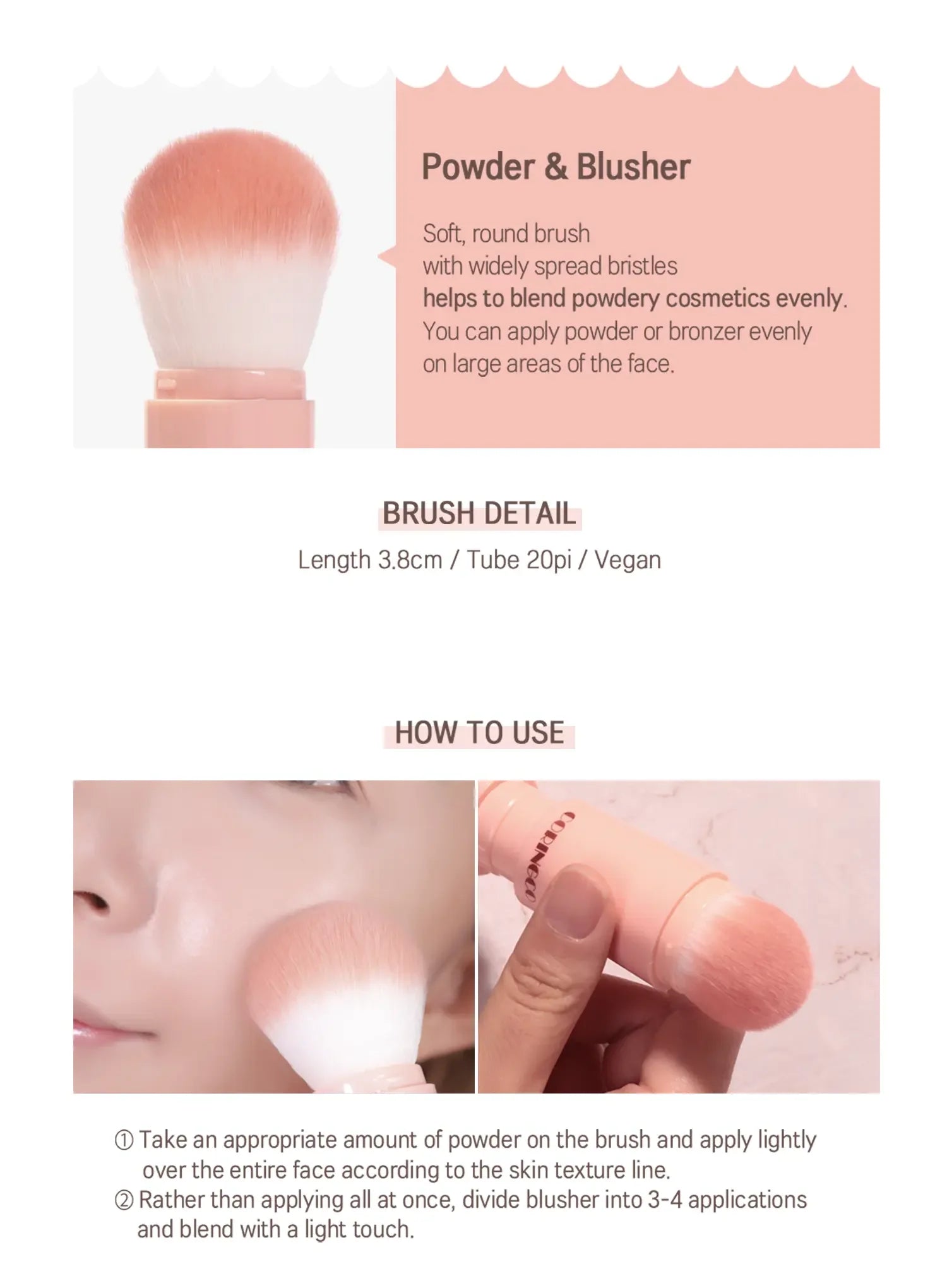 - The powder & blusher brush delivers seamless blending over wider areas like cheeks and forehead, creating a natural finish.