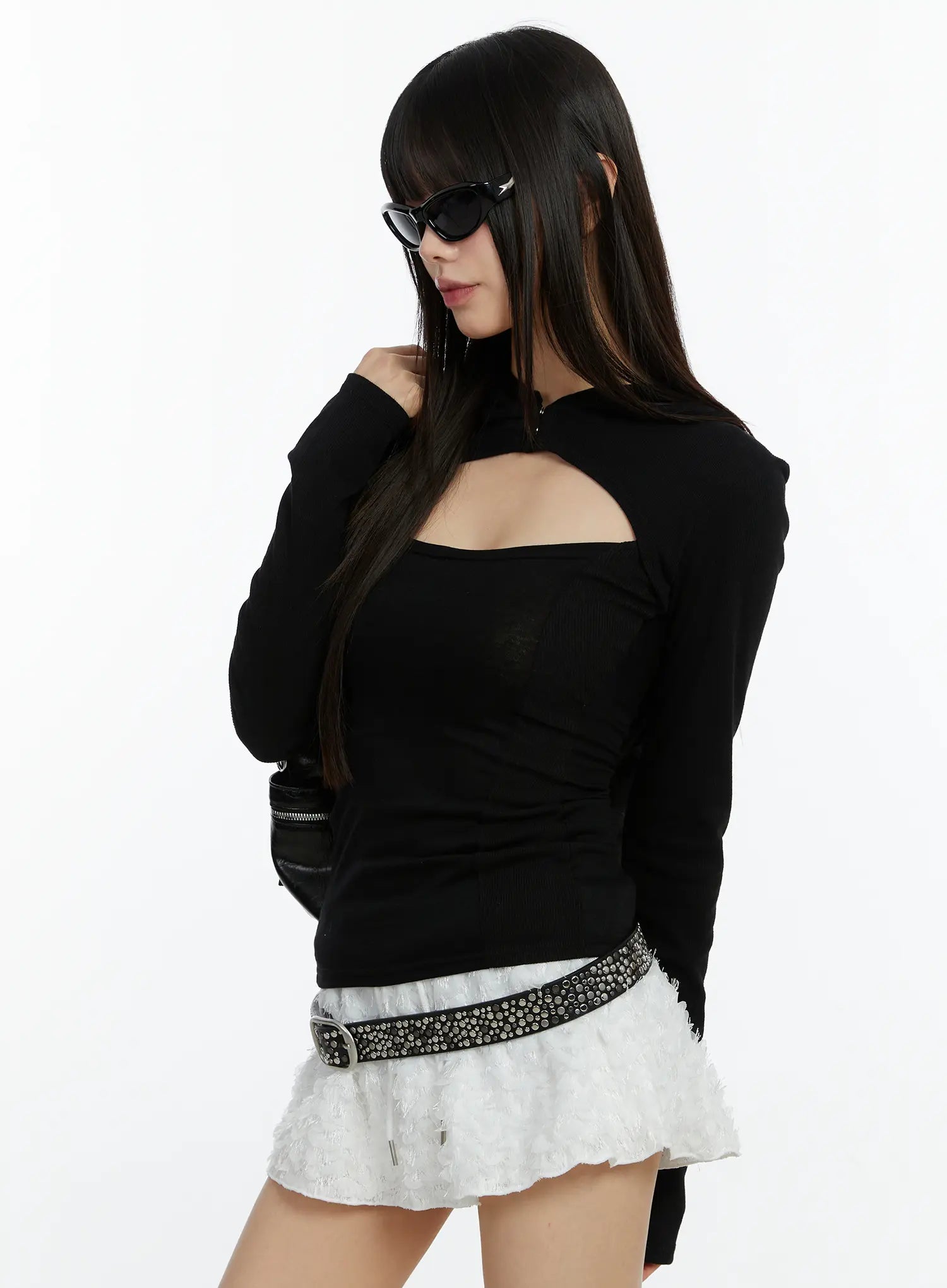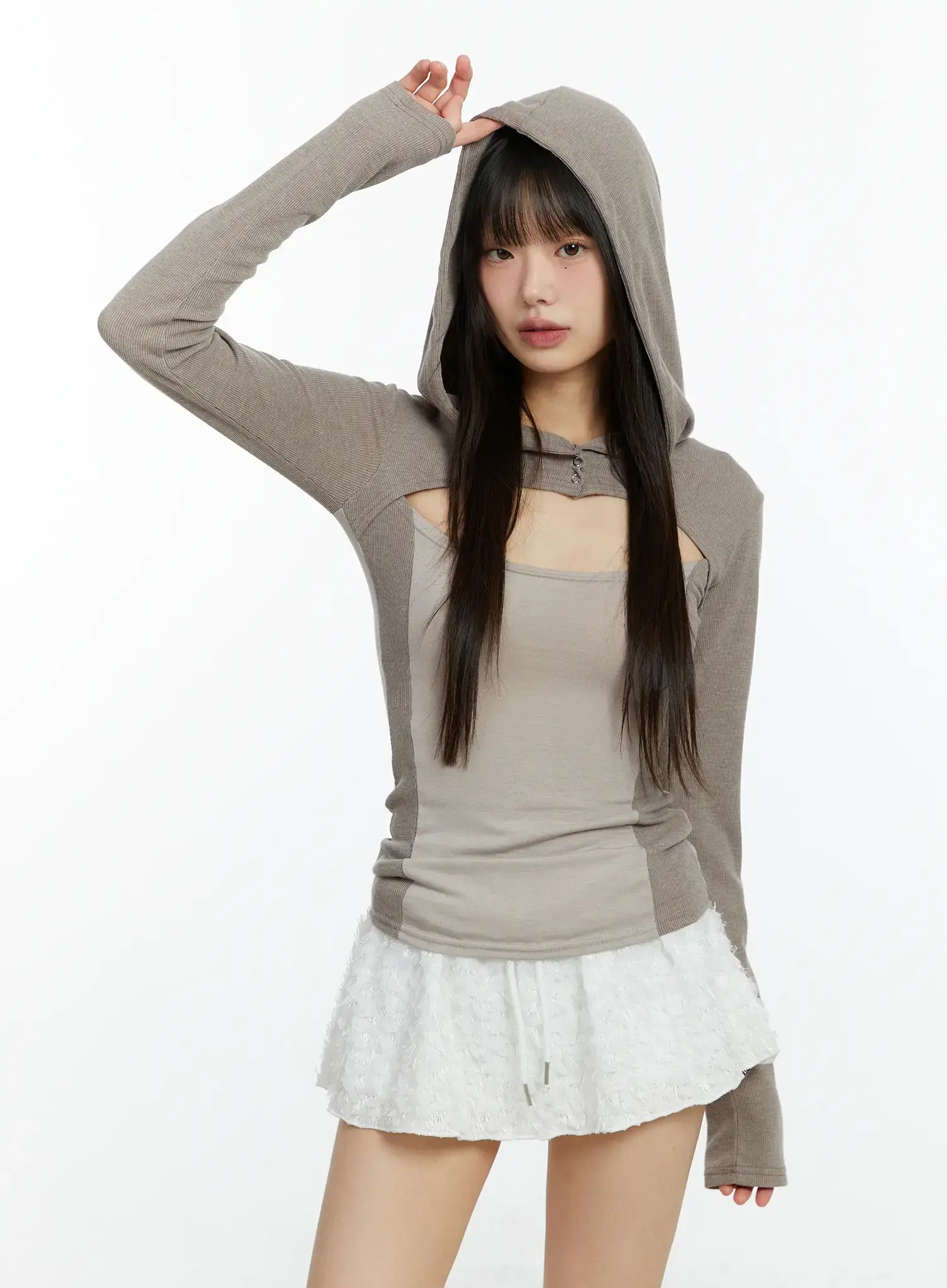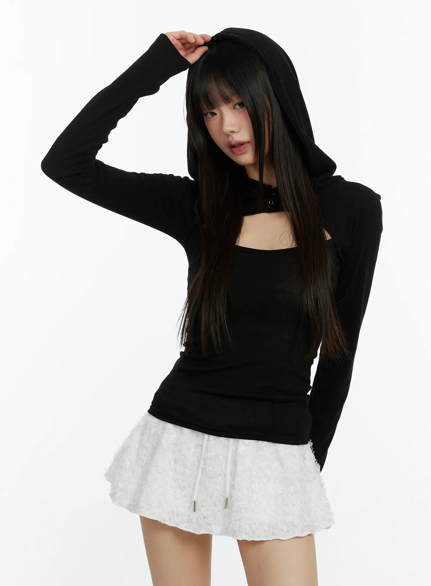 Cut-Out Hooded Long Sleeve Tee CF510