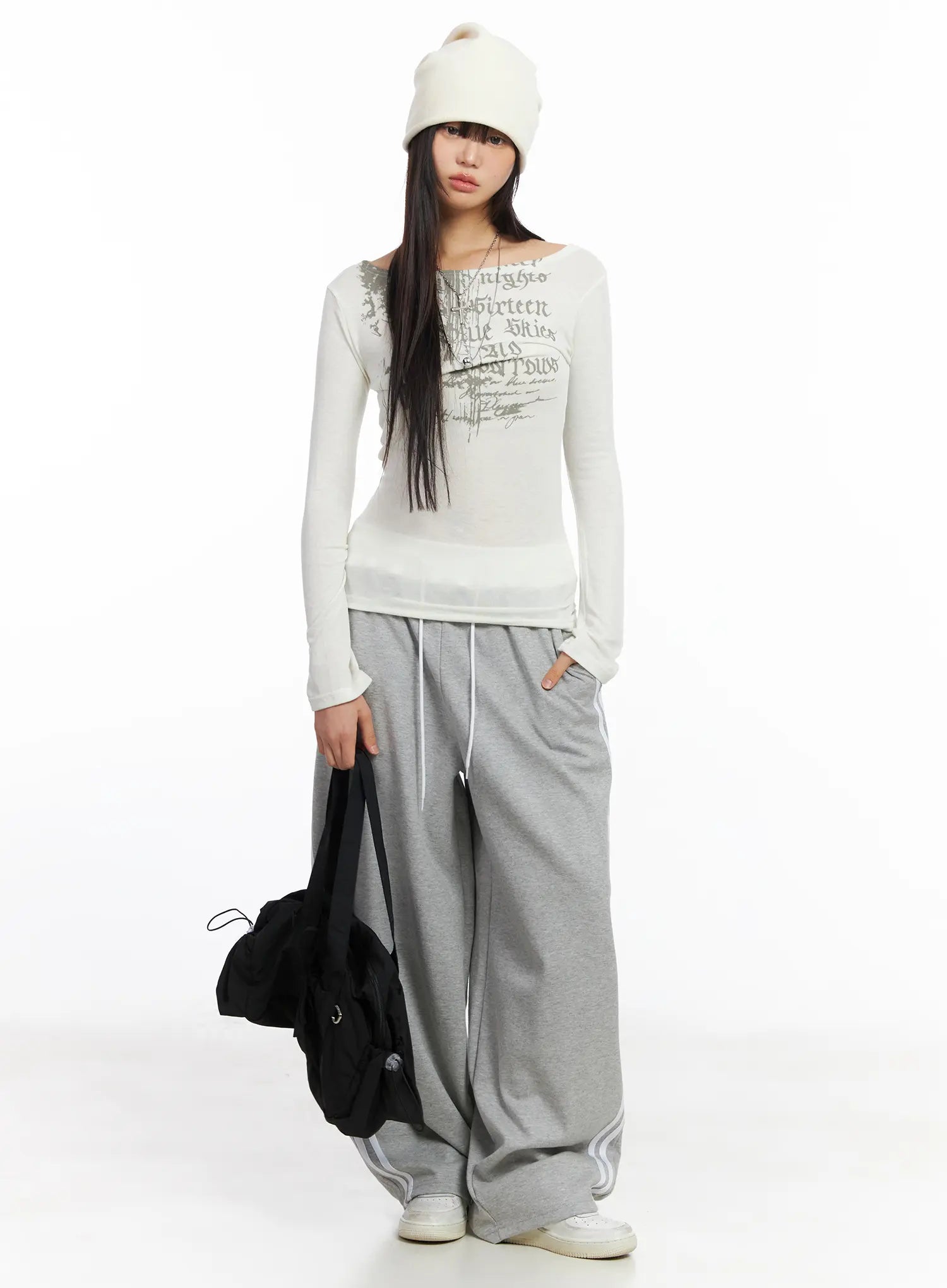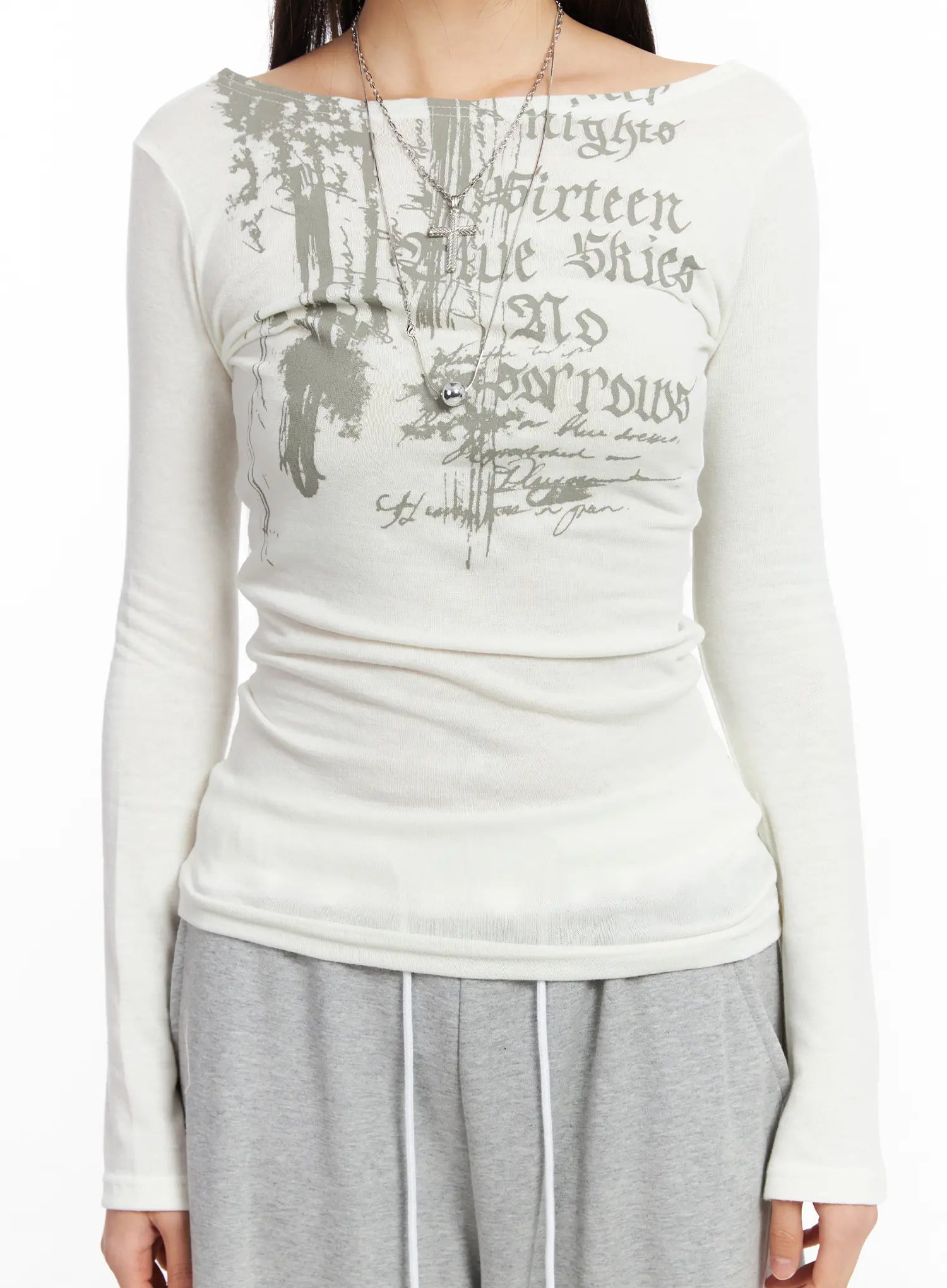 Edgy Boat Neck Graphic Long Sleeve Tee CF506