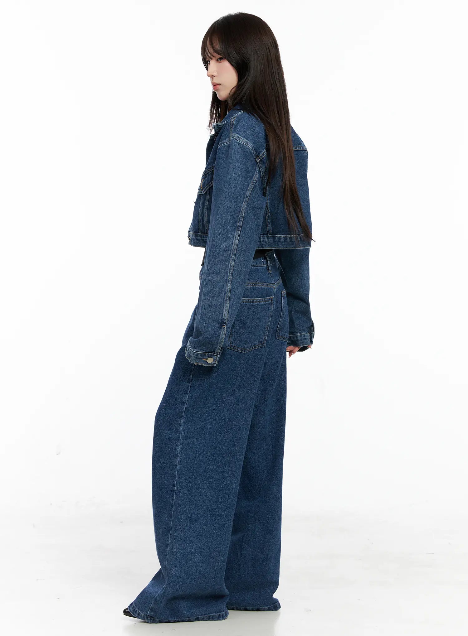 Model is wearing size M and the color Dark blue.