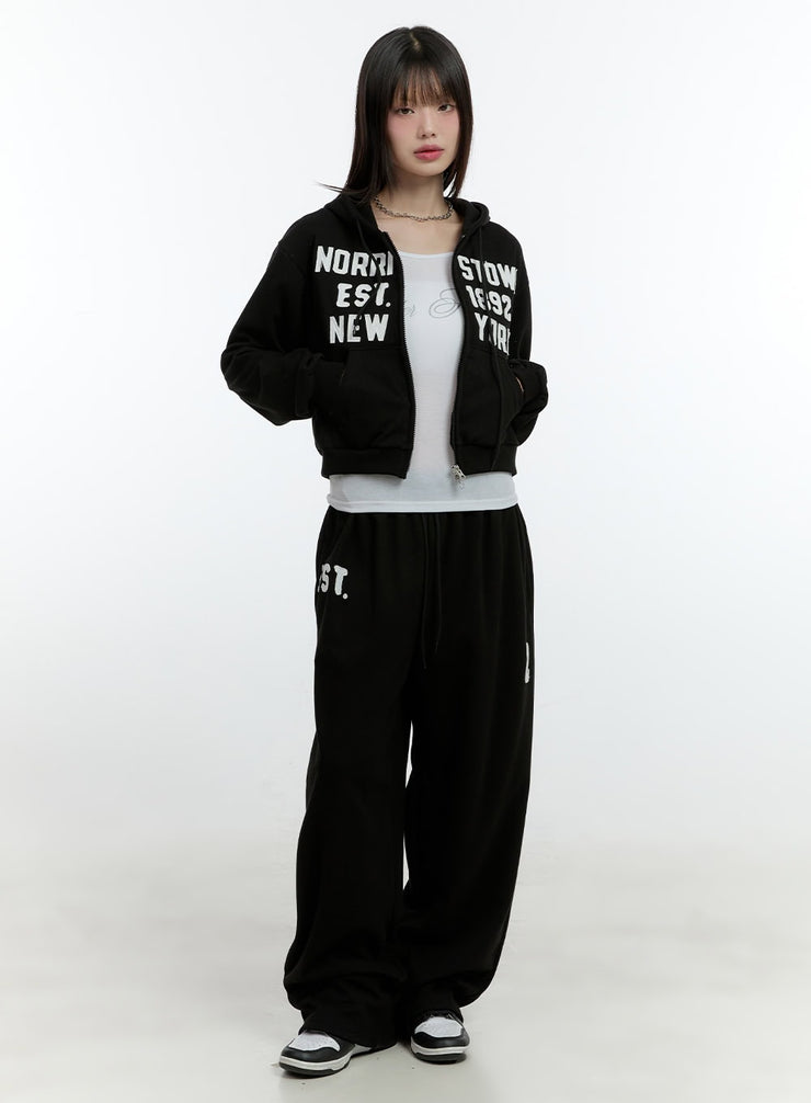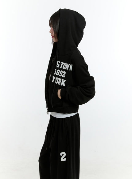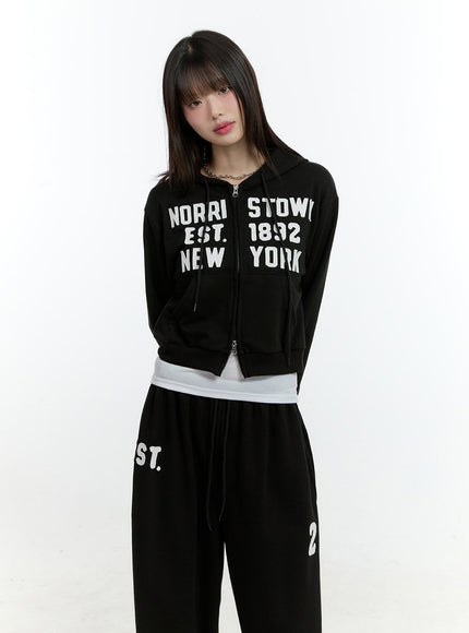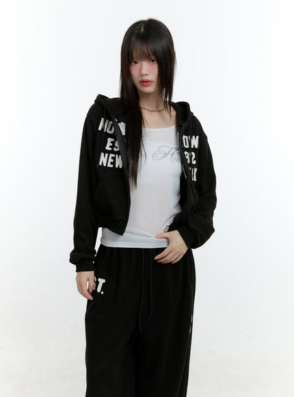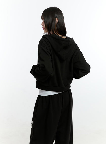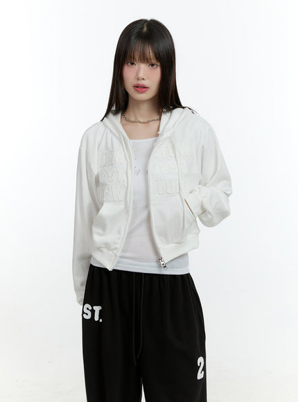 Embroidered Zip-Up Crop Hooded Jacket CF506
