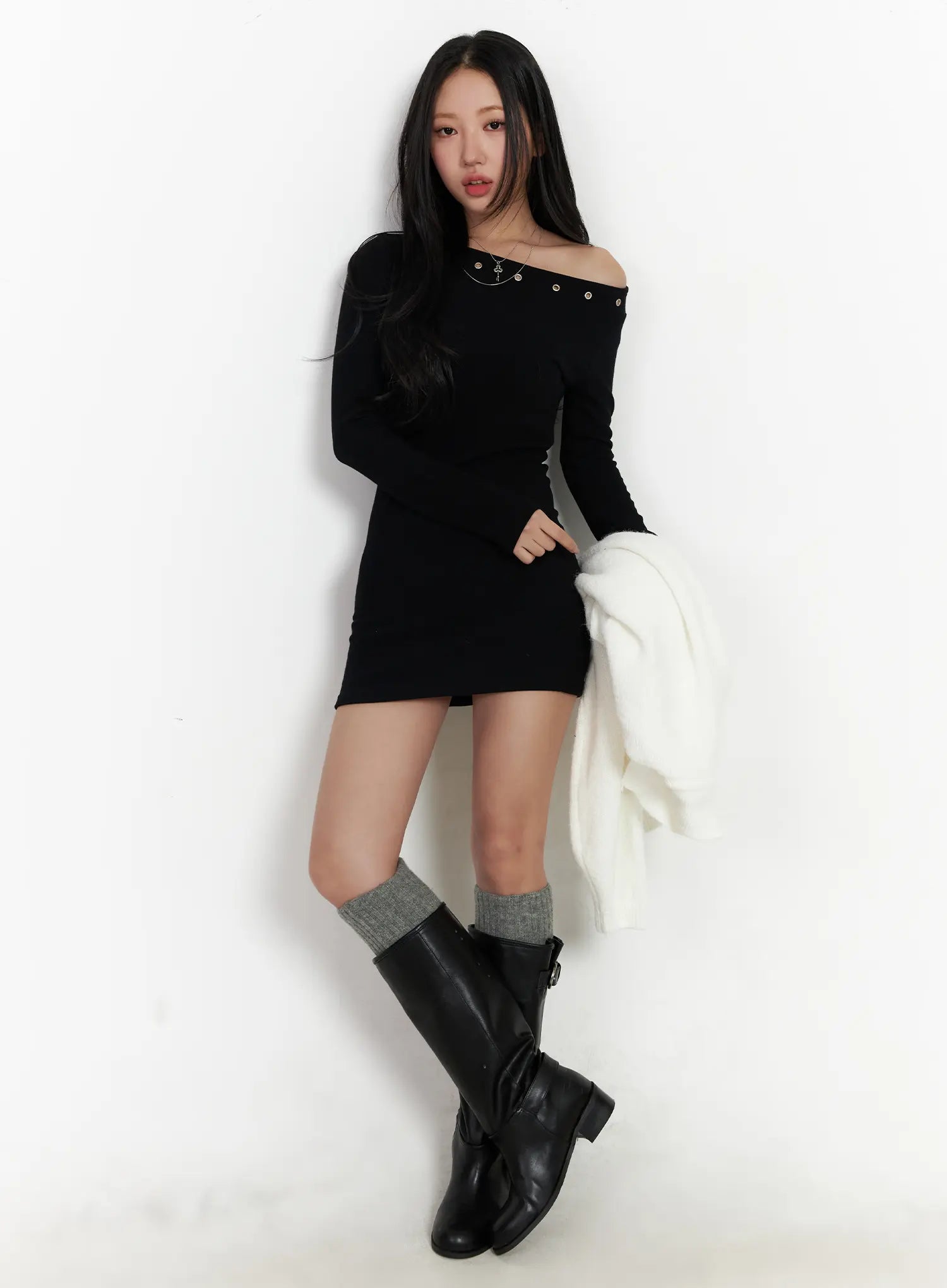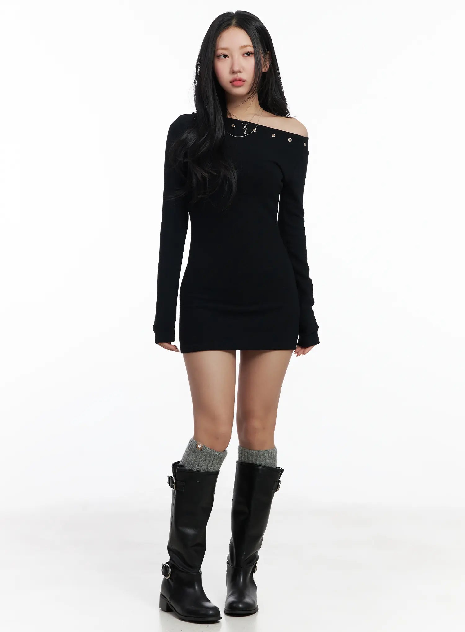 Eyelet Off-Shoulder Mini Dress CJ514