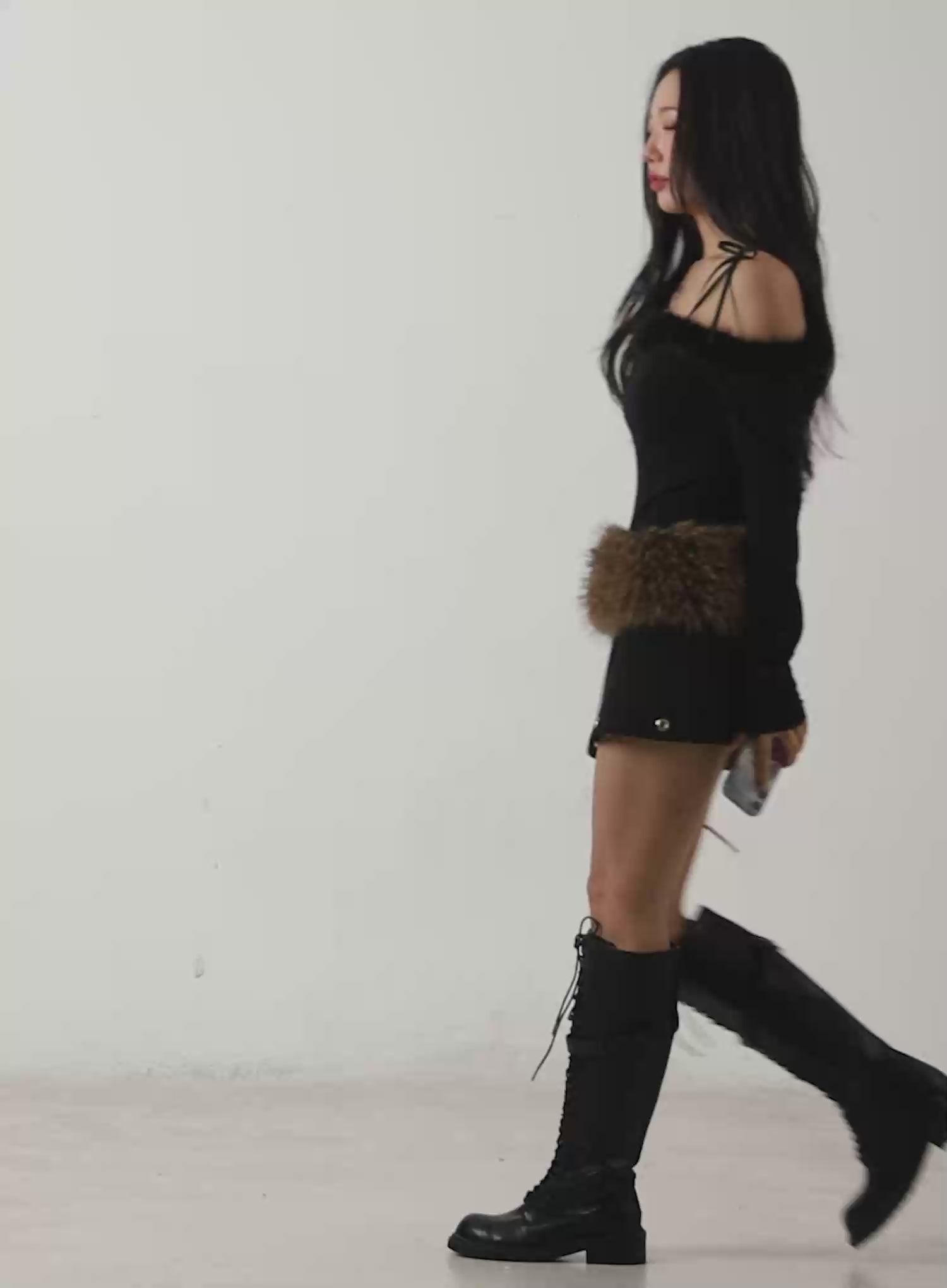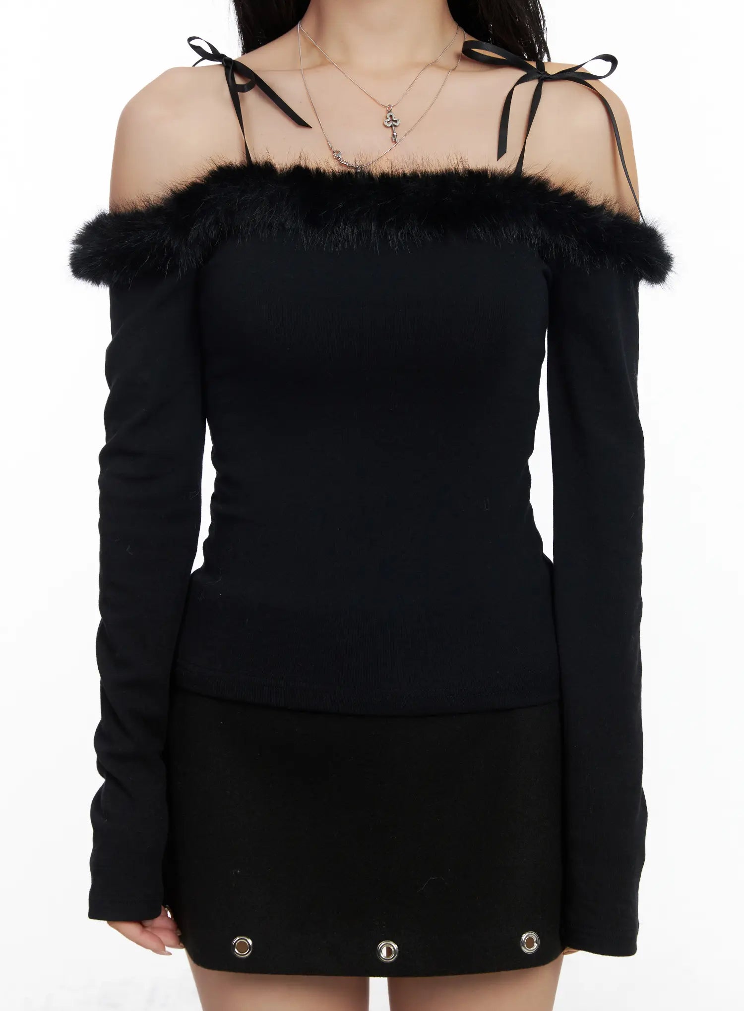 Faux Fur Off-Shoulder Long Sleeve Top CJ515
