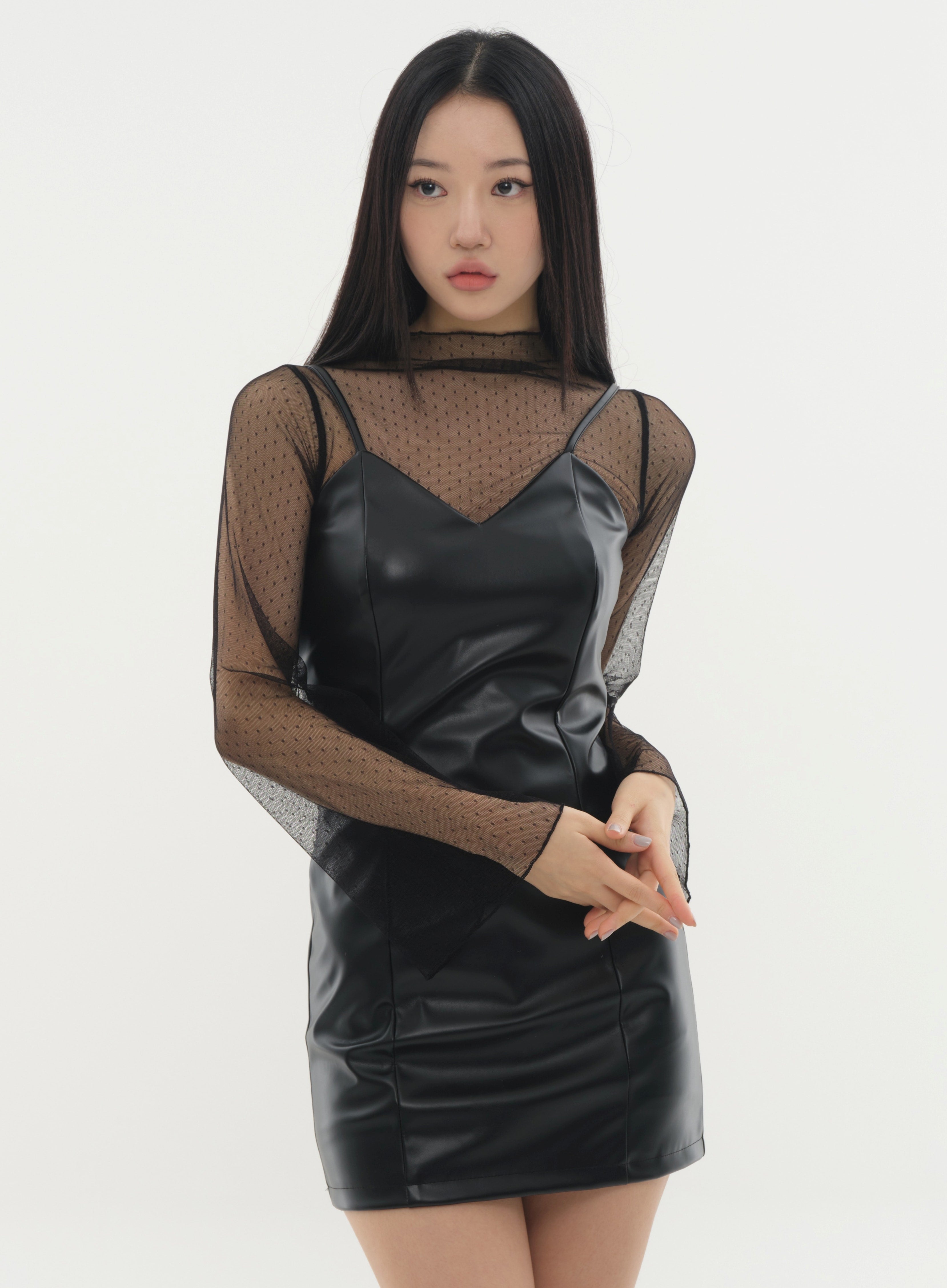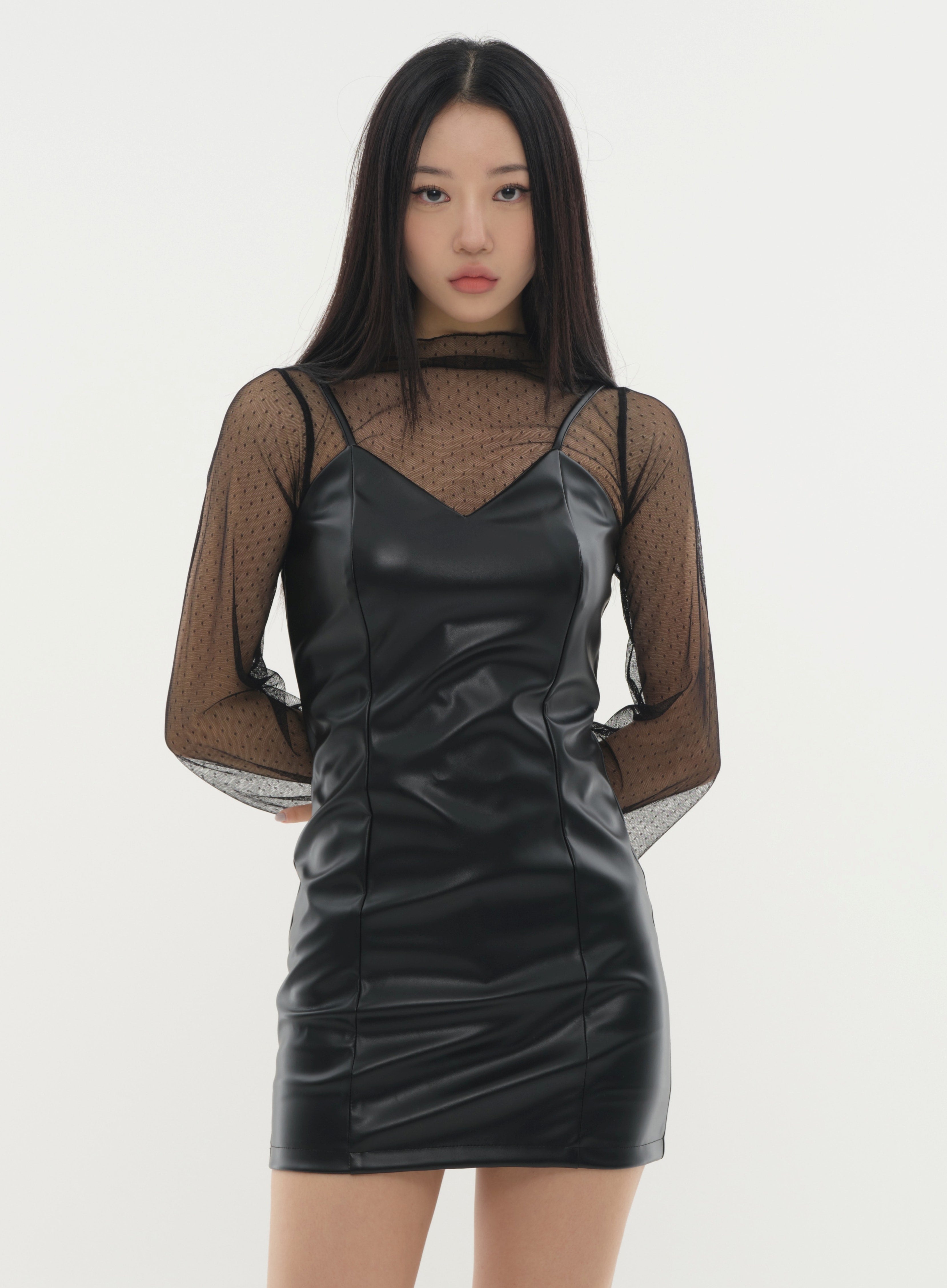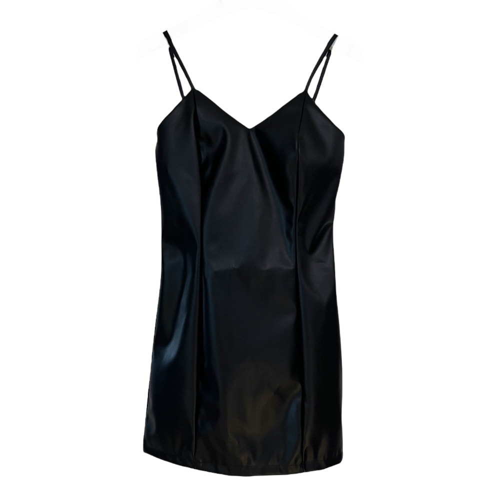 Faux Leather Strap Mini Dress #Original Kpop #121641