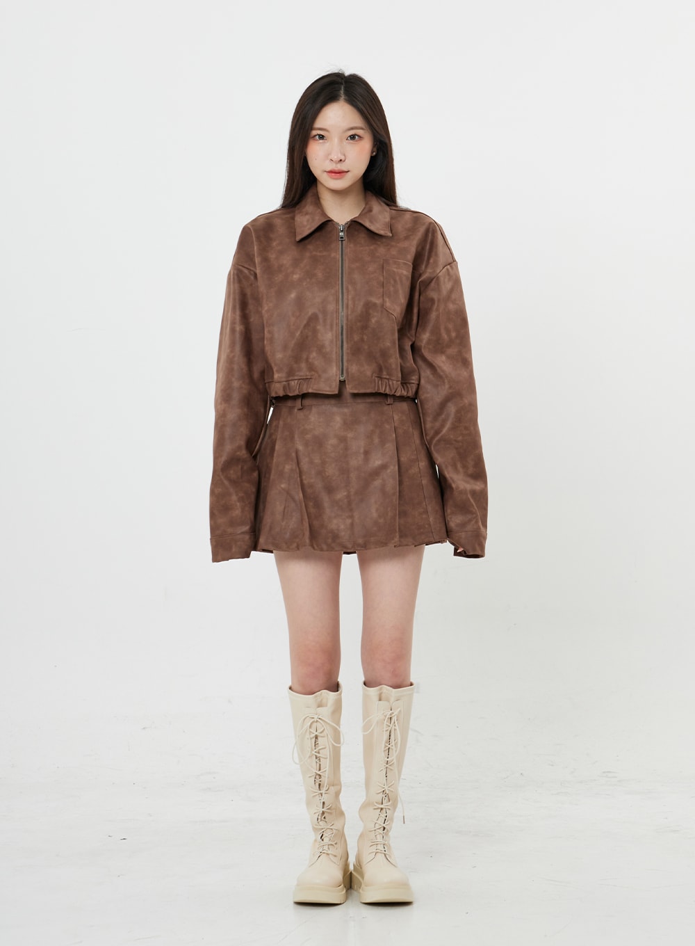 Faux Leather Zipp-Up Jumper Jacket BO24