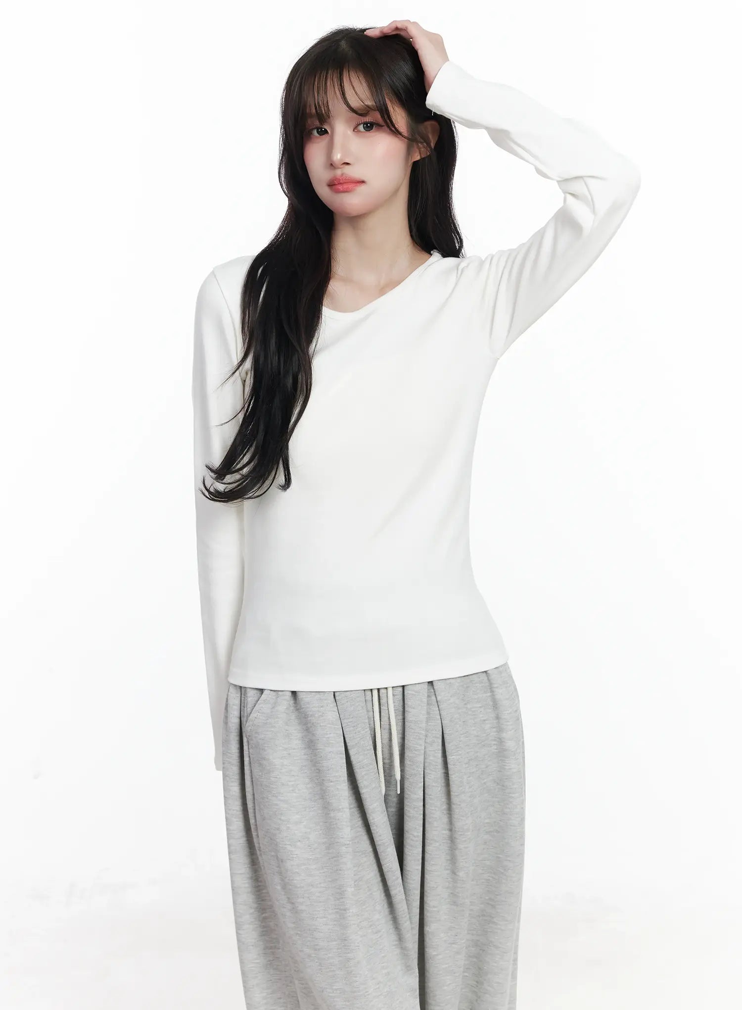 Fleece-Lined Round Neck Long Sleeve IJ529