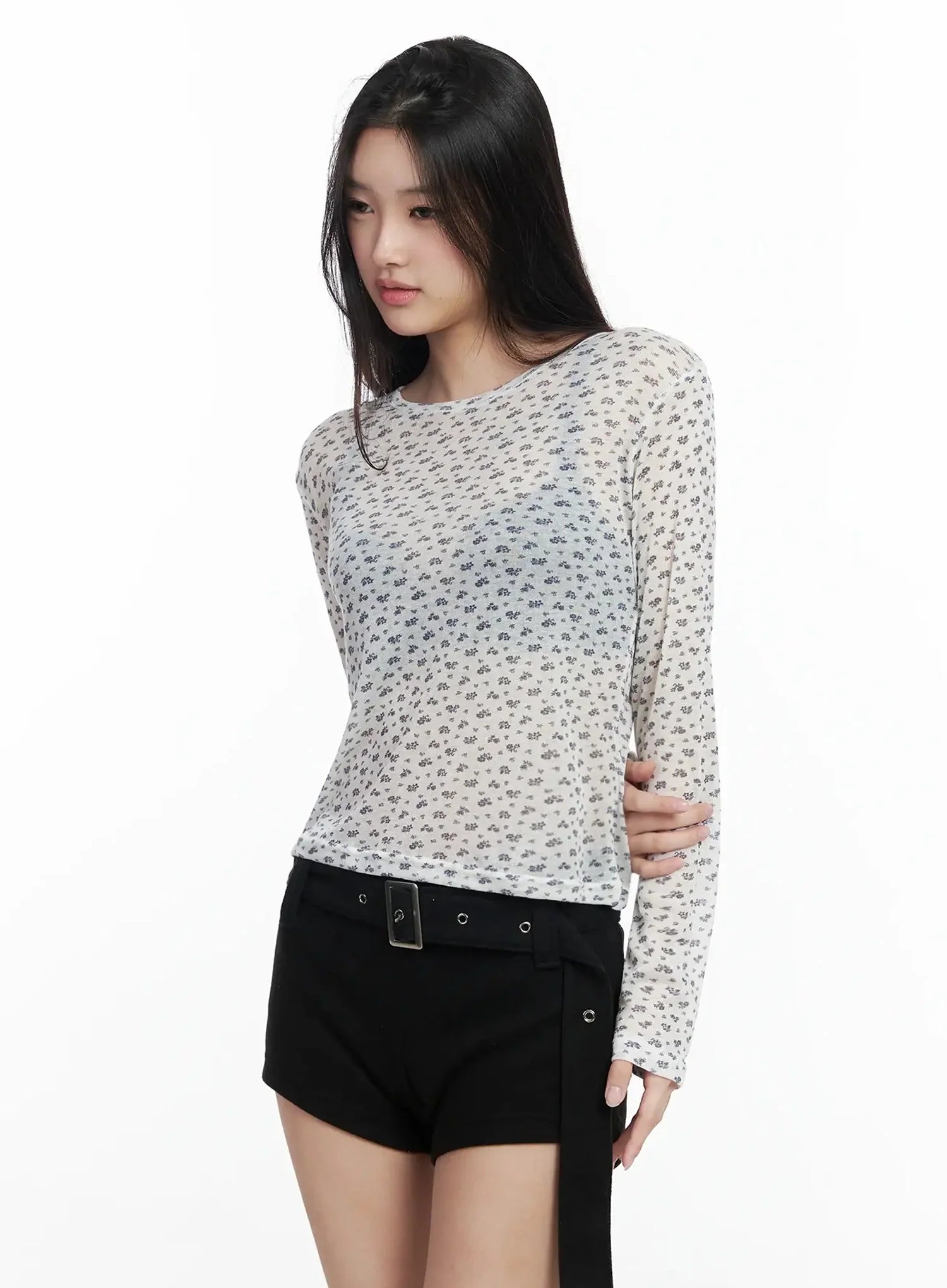 Floral Sheer Long Sleeve Top IM502