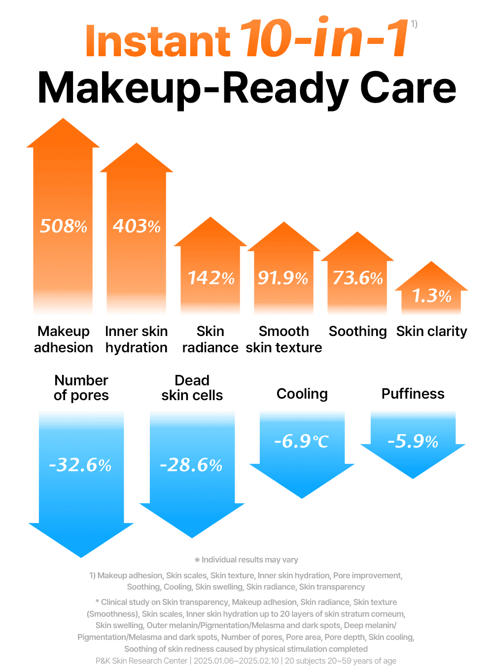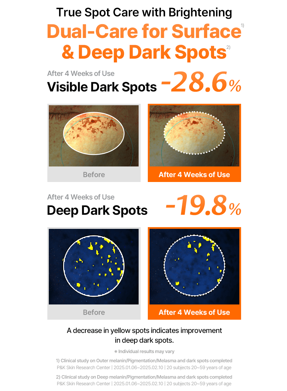 - 2% niacinamide and vitamin C derivatives help brighten the skin and improve tone, while glutathione and adenosine enhance glow and elasticity.