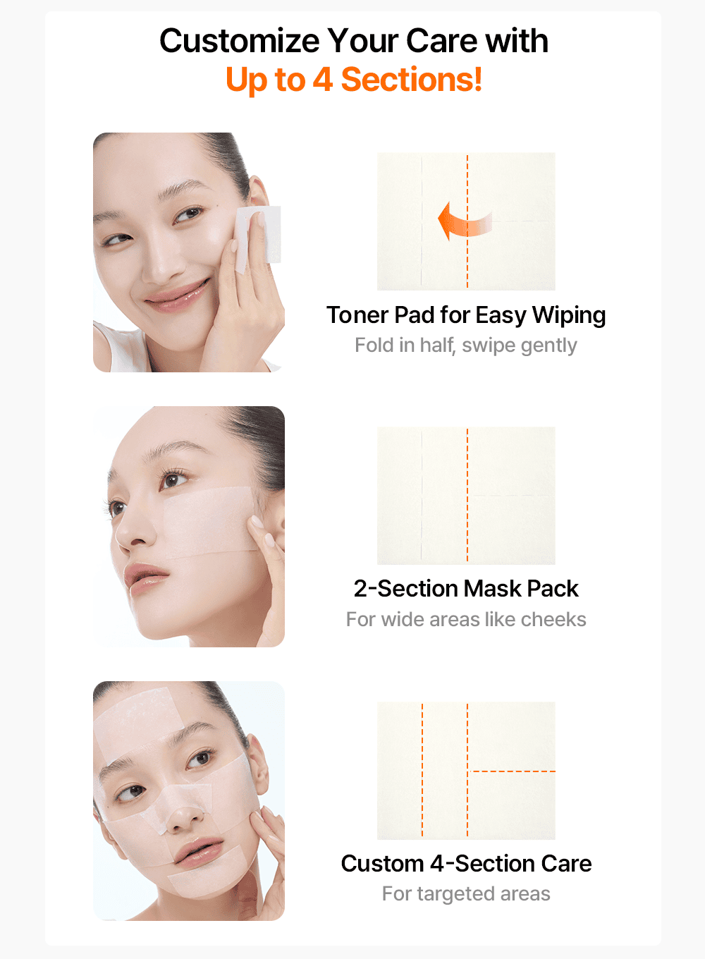 2. For intensive care, use the pad as a 5-minute mask on targeted areas (e.g. under eyes, cheeks).