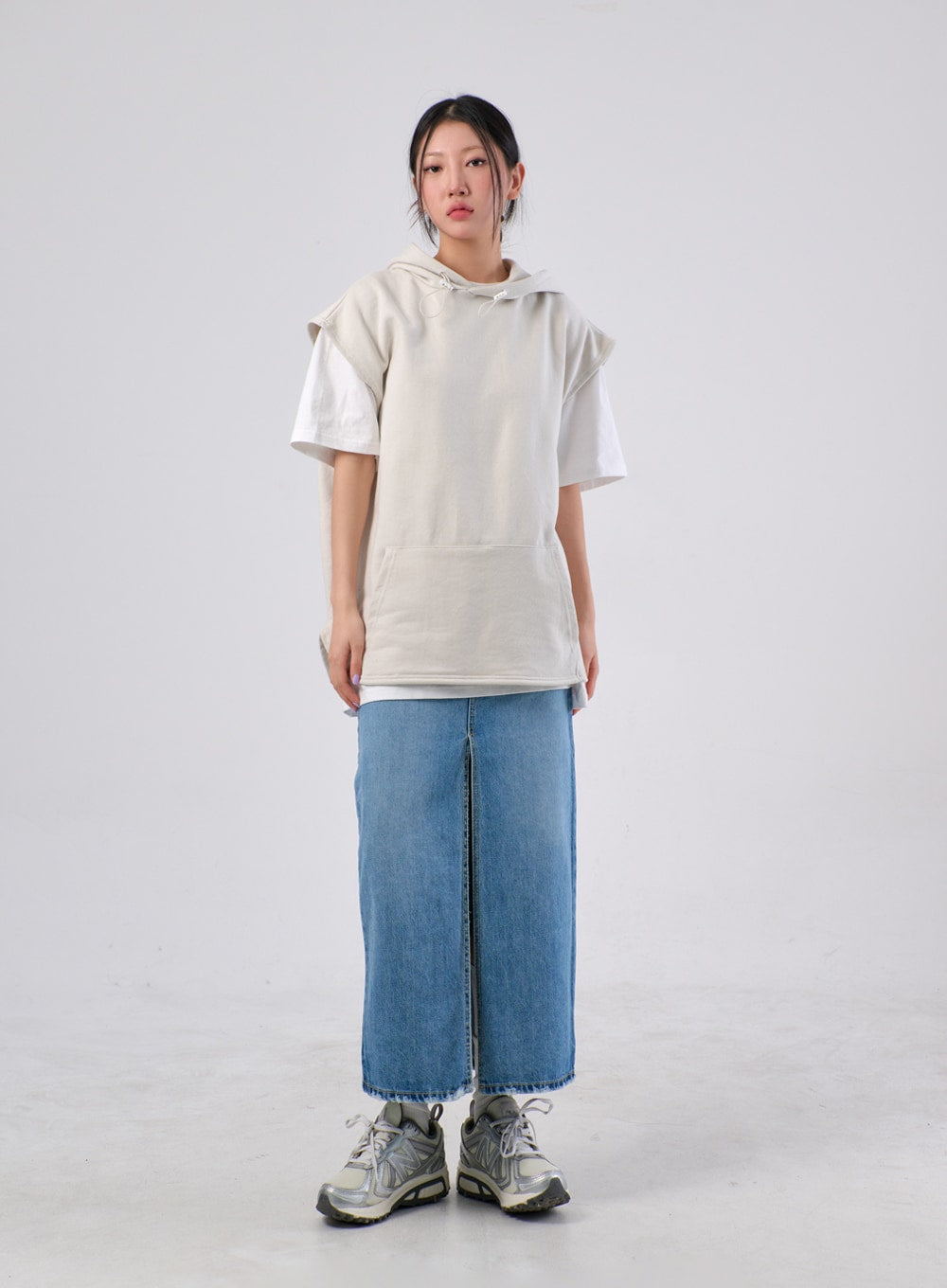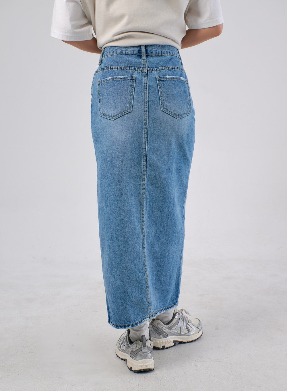 Front Slit Denim Maxi Skirt IA305