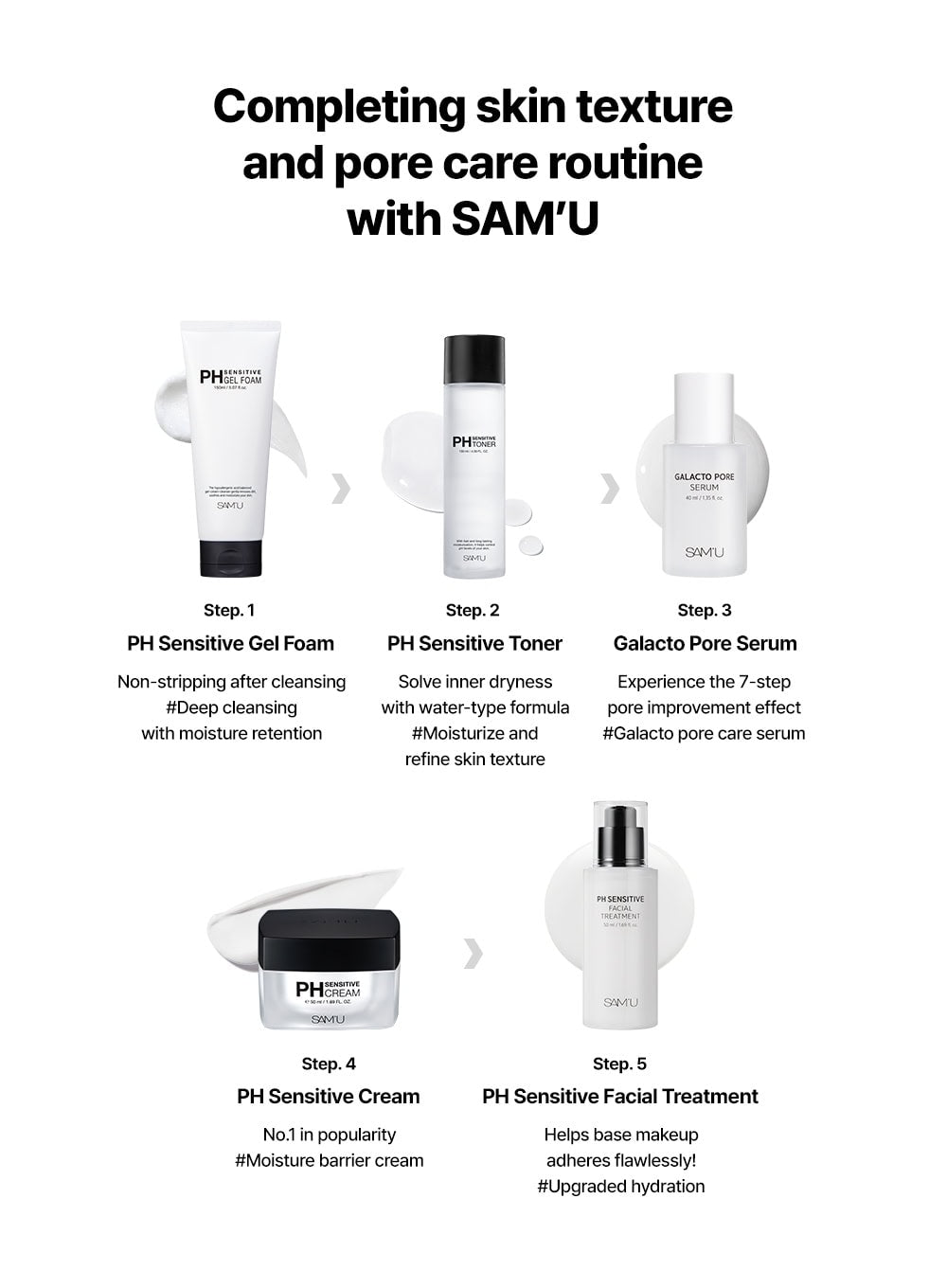 SAM'U focuses on gentle skincare that maintains a healthy skin balance, striving to restore the skin's natural beauty.