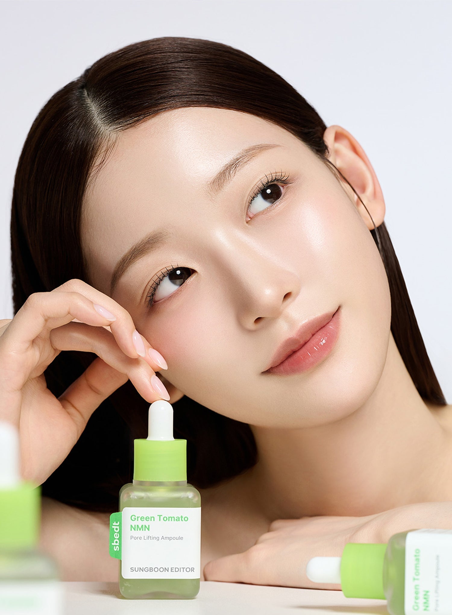 Green tomato water ampoule supporting pore appearance and skin elasticity.
