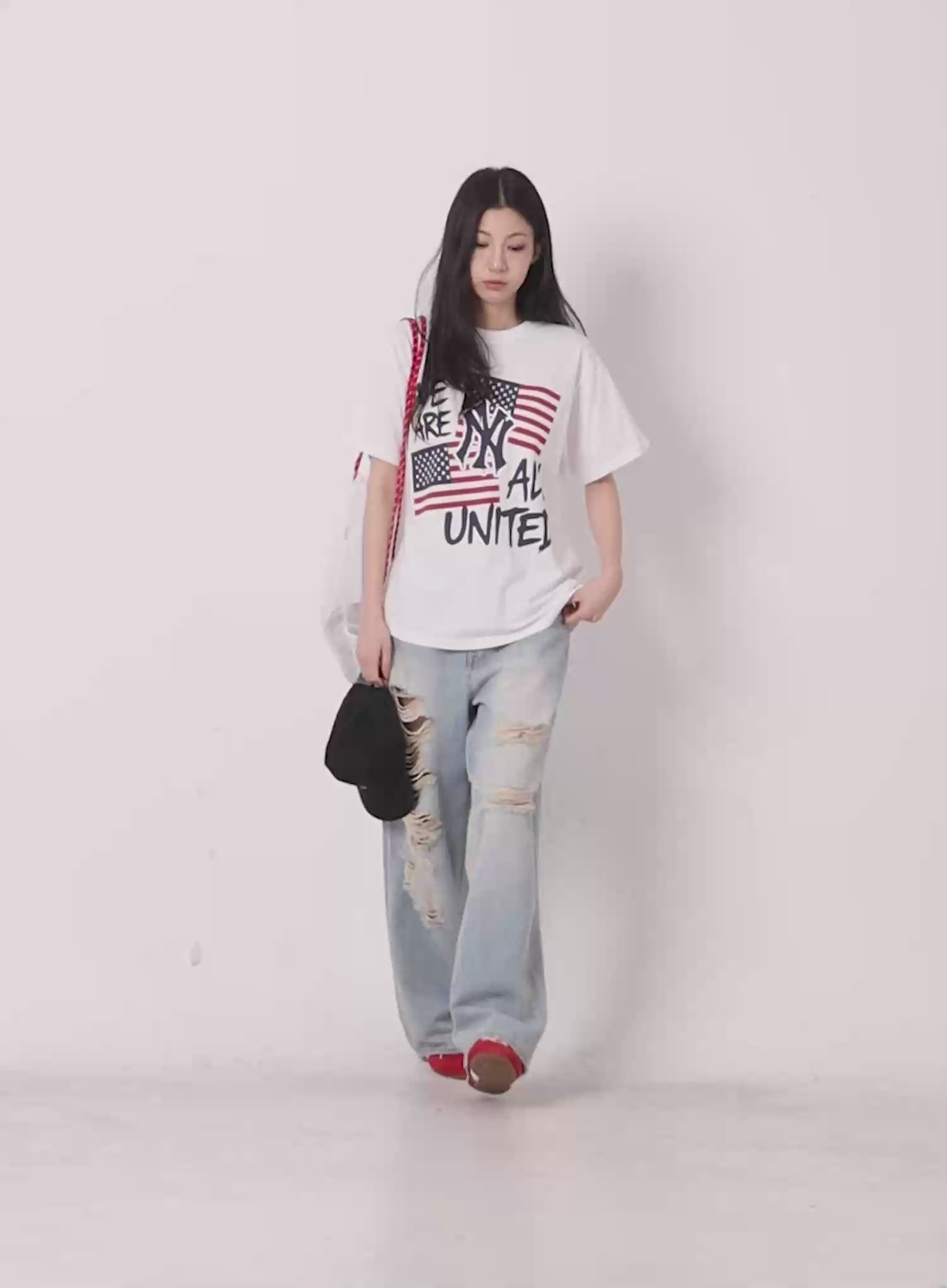 Gyuri Dirty-Wash Distressed Wide Jeans CU530