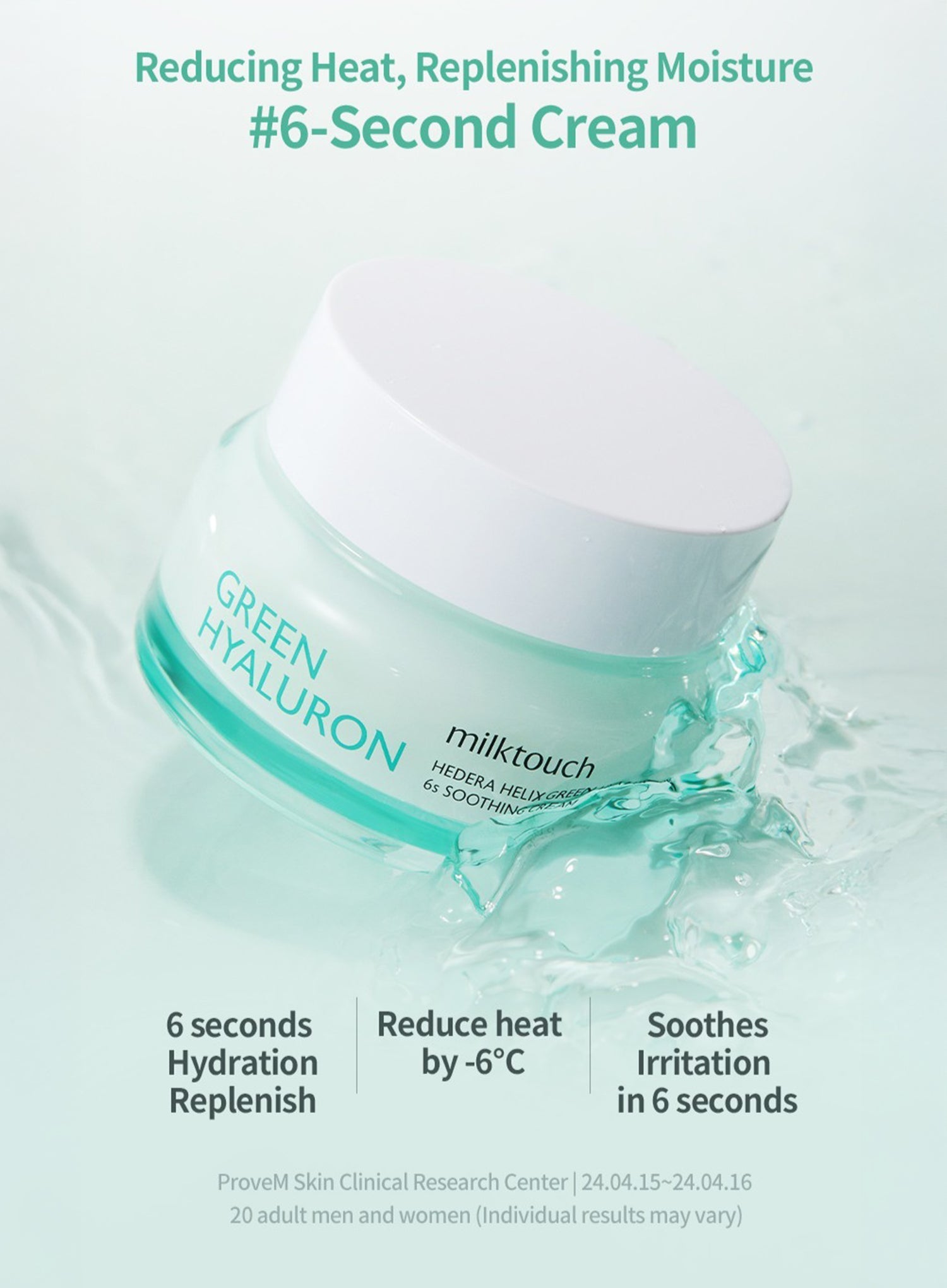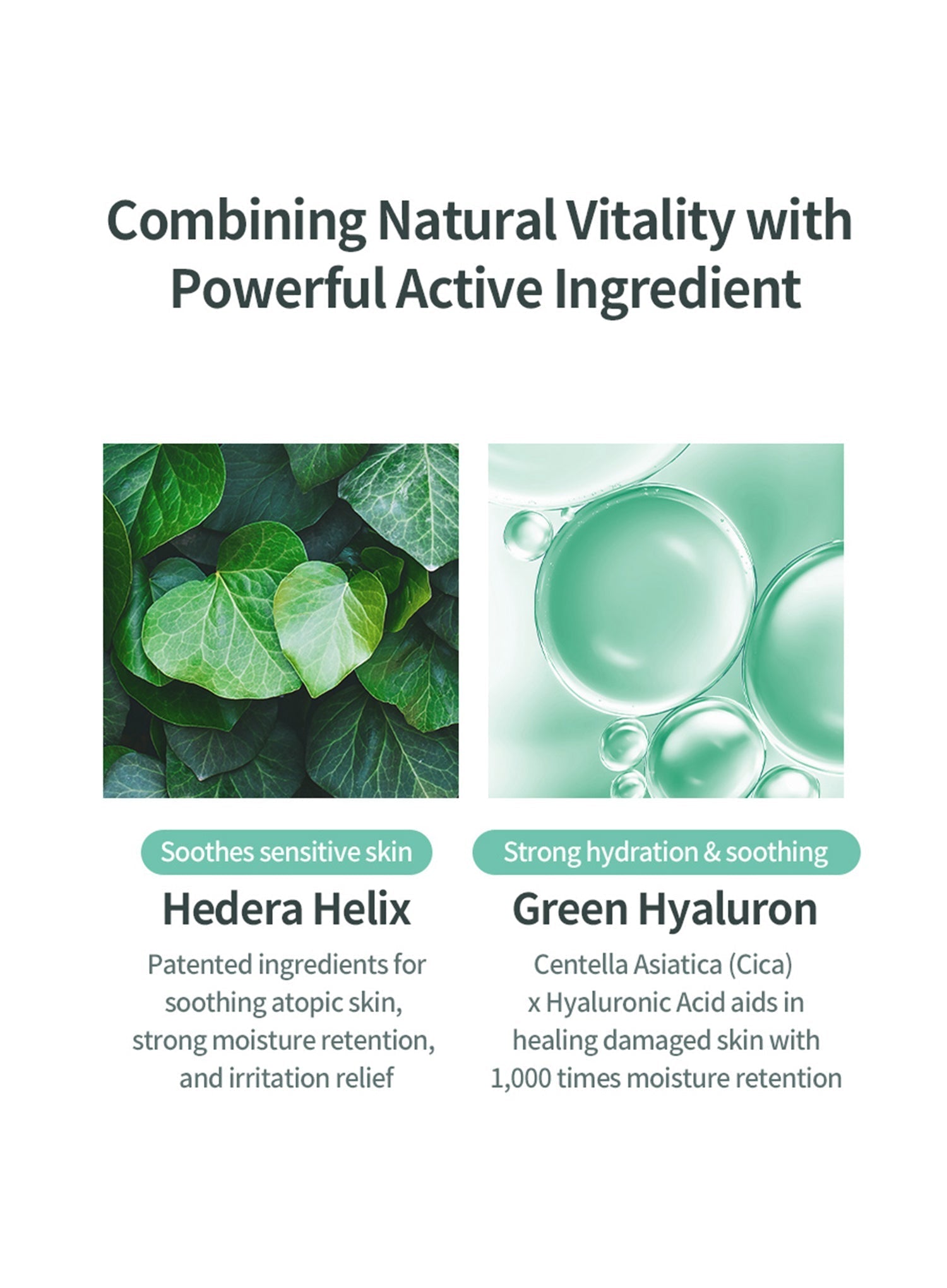 - Hedera Helix and Green Hyaluron deliver quick calming and moisture