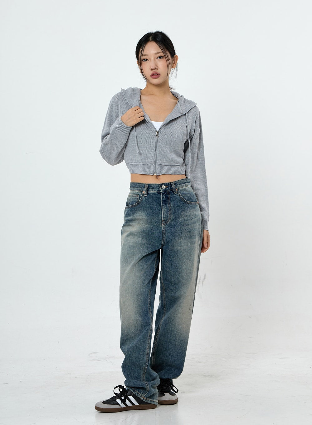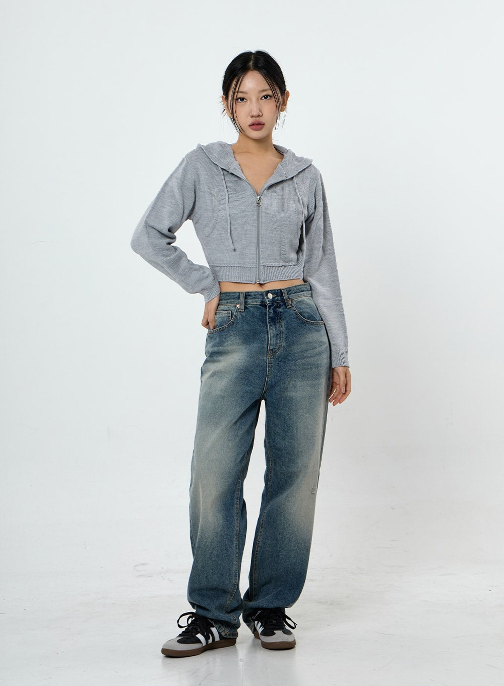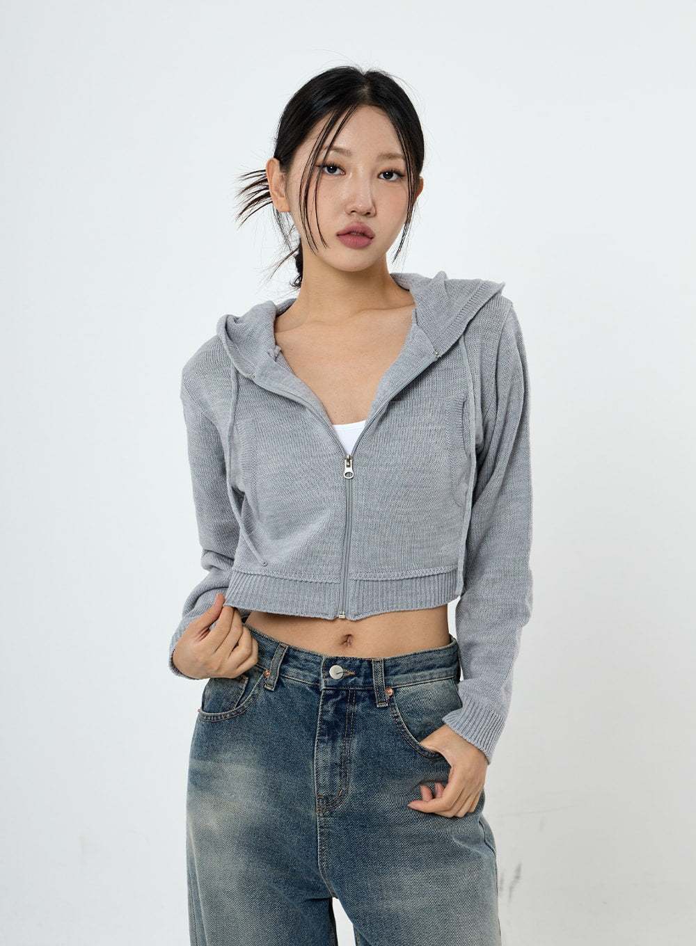 Knit Crop Hoodie Zip Up CS28