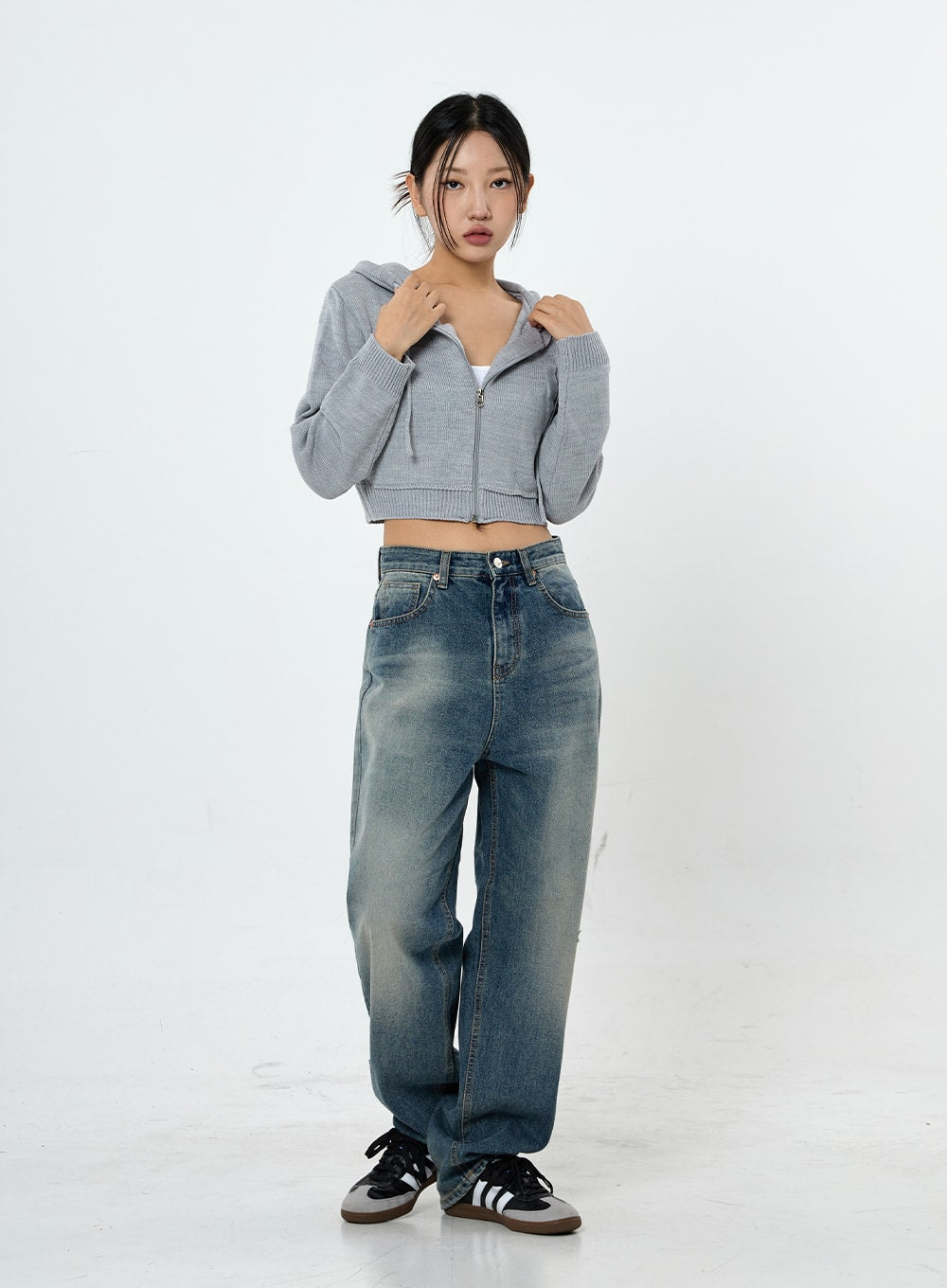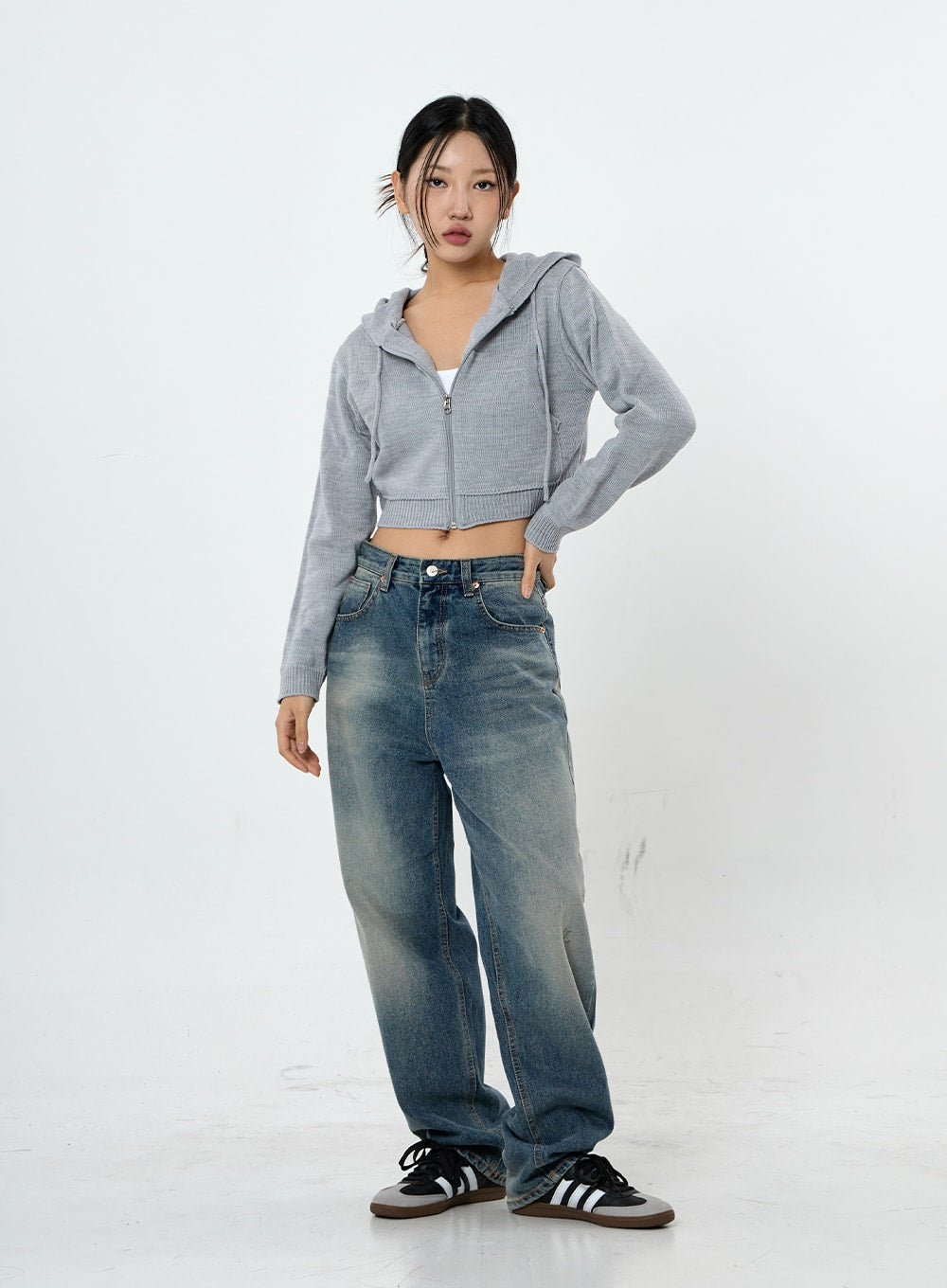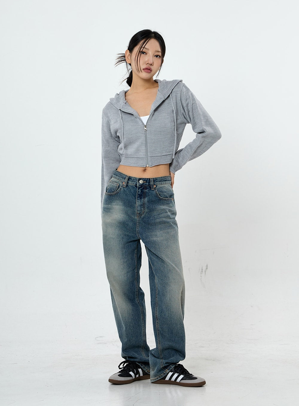 Knit Crop Hoodie Zip Up CS28