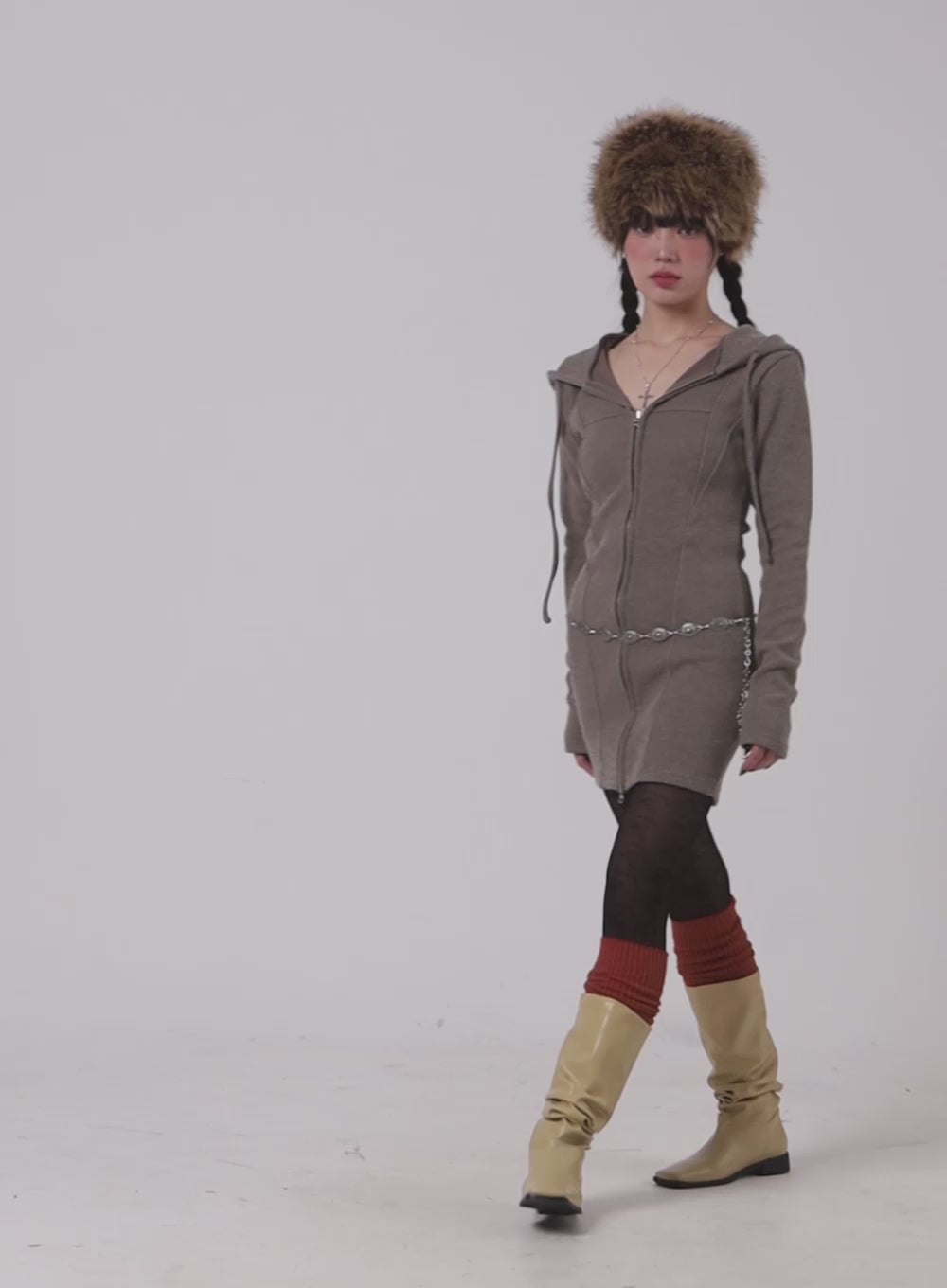 Model is wearing size S/M and the color Dark beige.