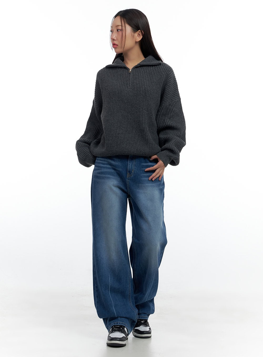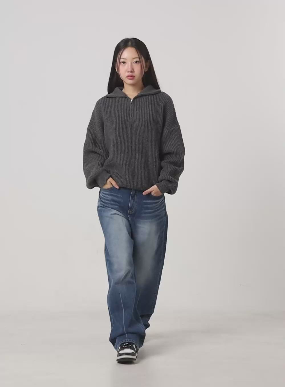 Knitted Half Zip Turtle Neck Sweater CS424