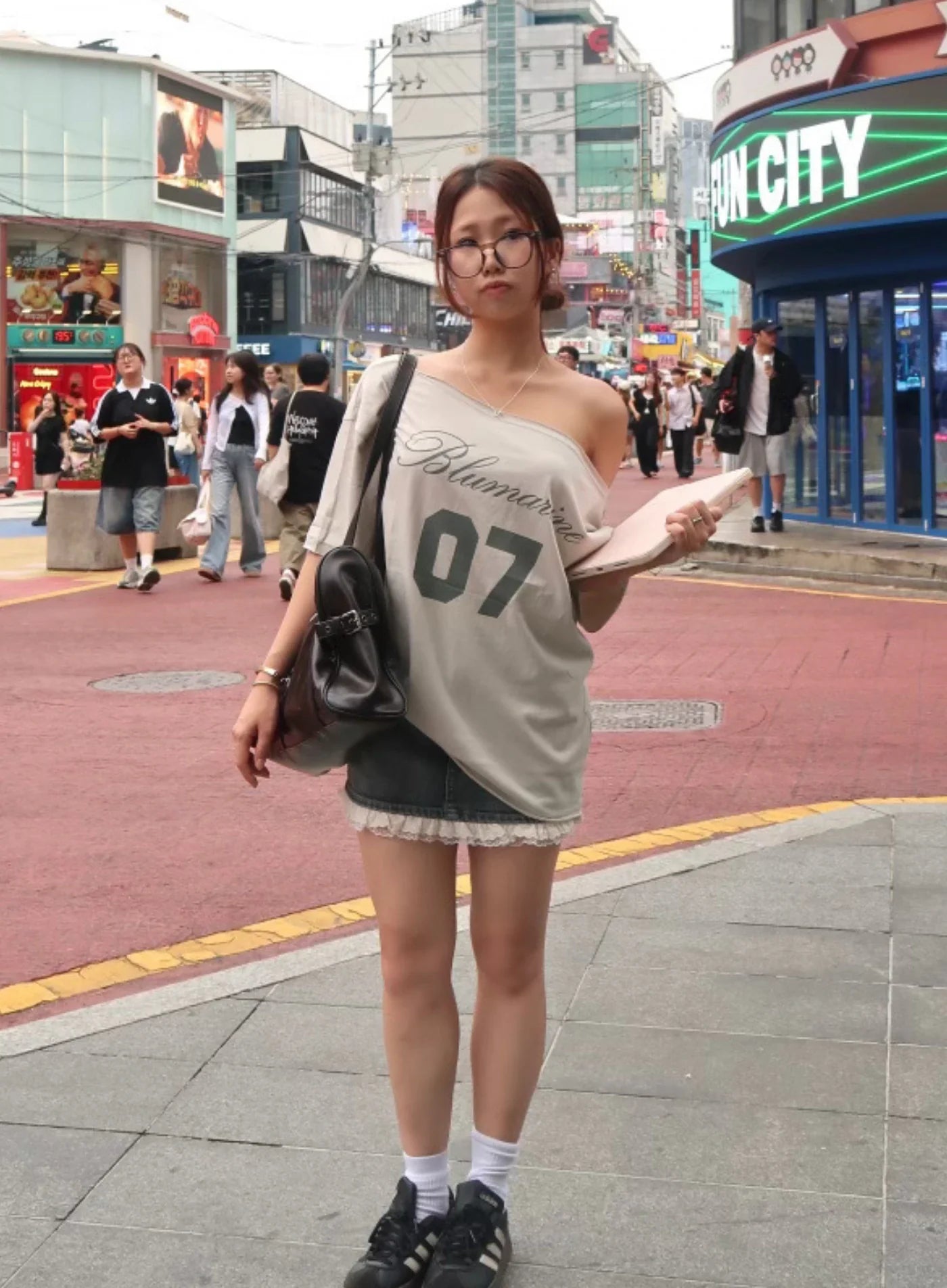 Lace-Trim Distressed Denim Mini Skirt CY521