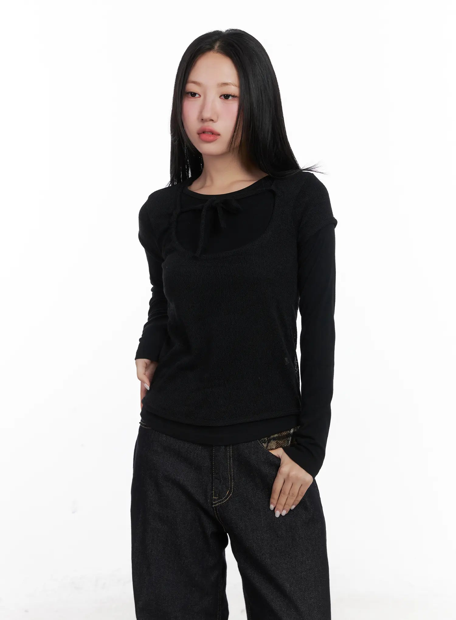 Layered Knit Tie Top Set CD501