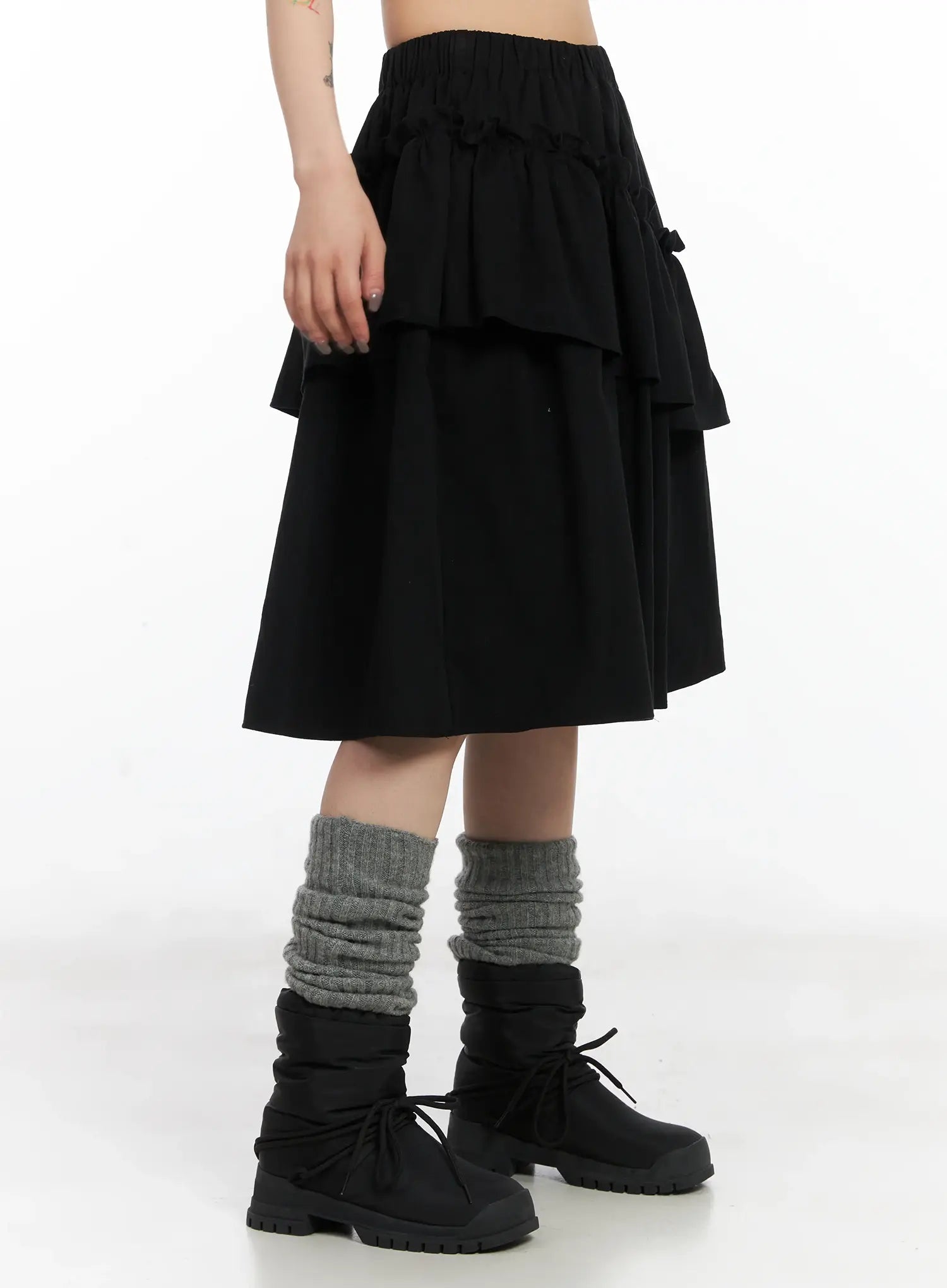 Layered Ruffle Flare Midi Skirt CD502