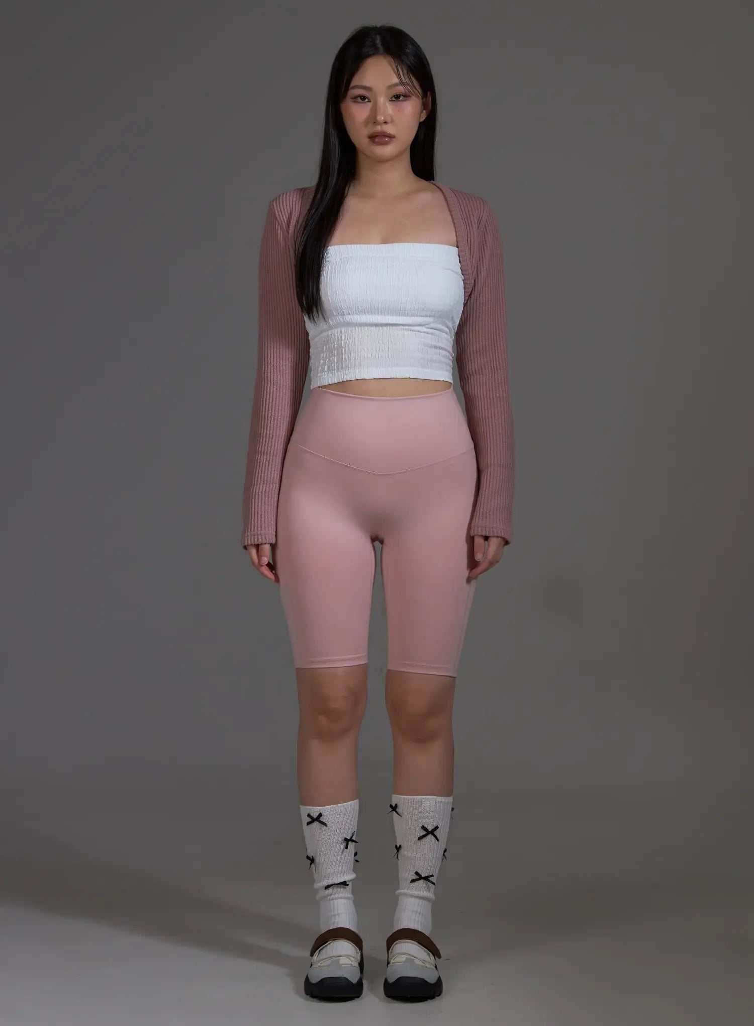 Light Pink High-Waist Biker Shorts (Light Pink) IO517