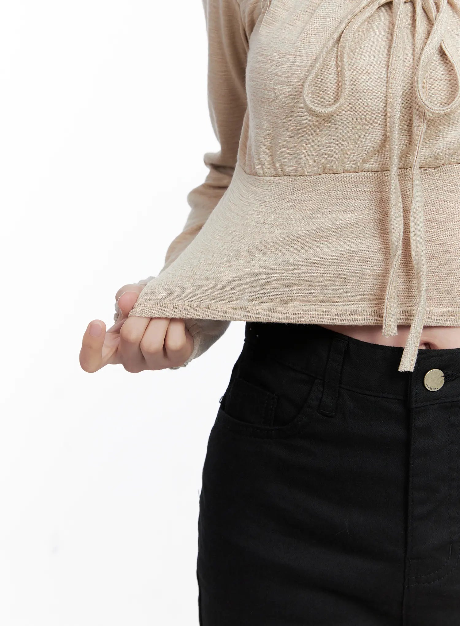 Long Sleeve Shirred Ribbon Crop Top CG521