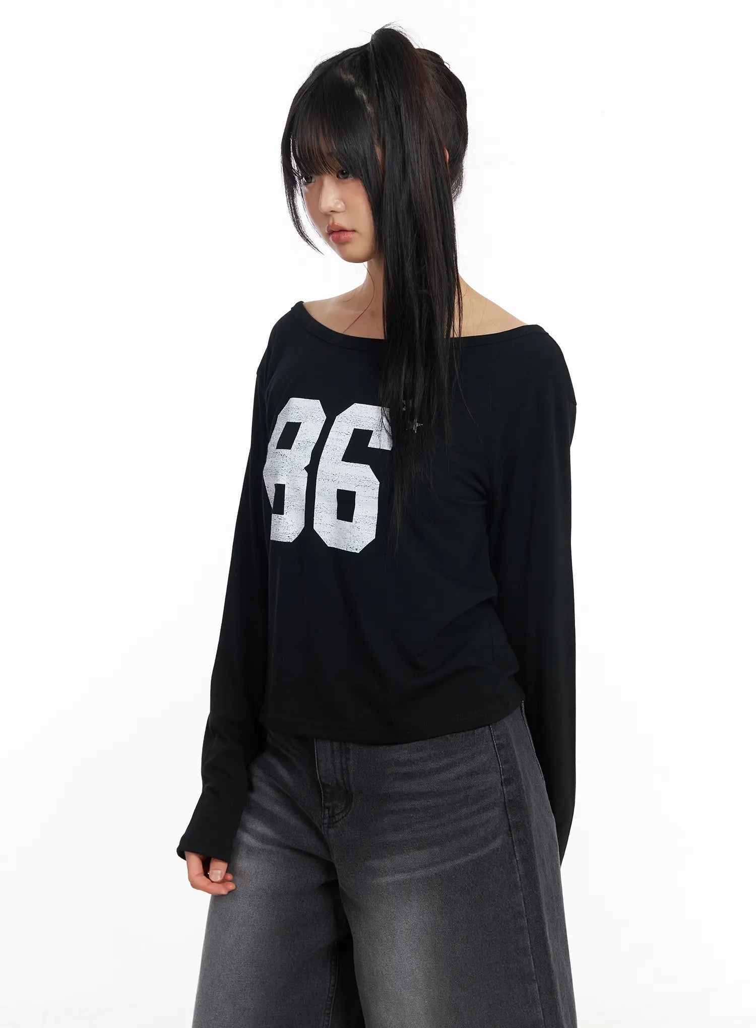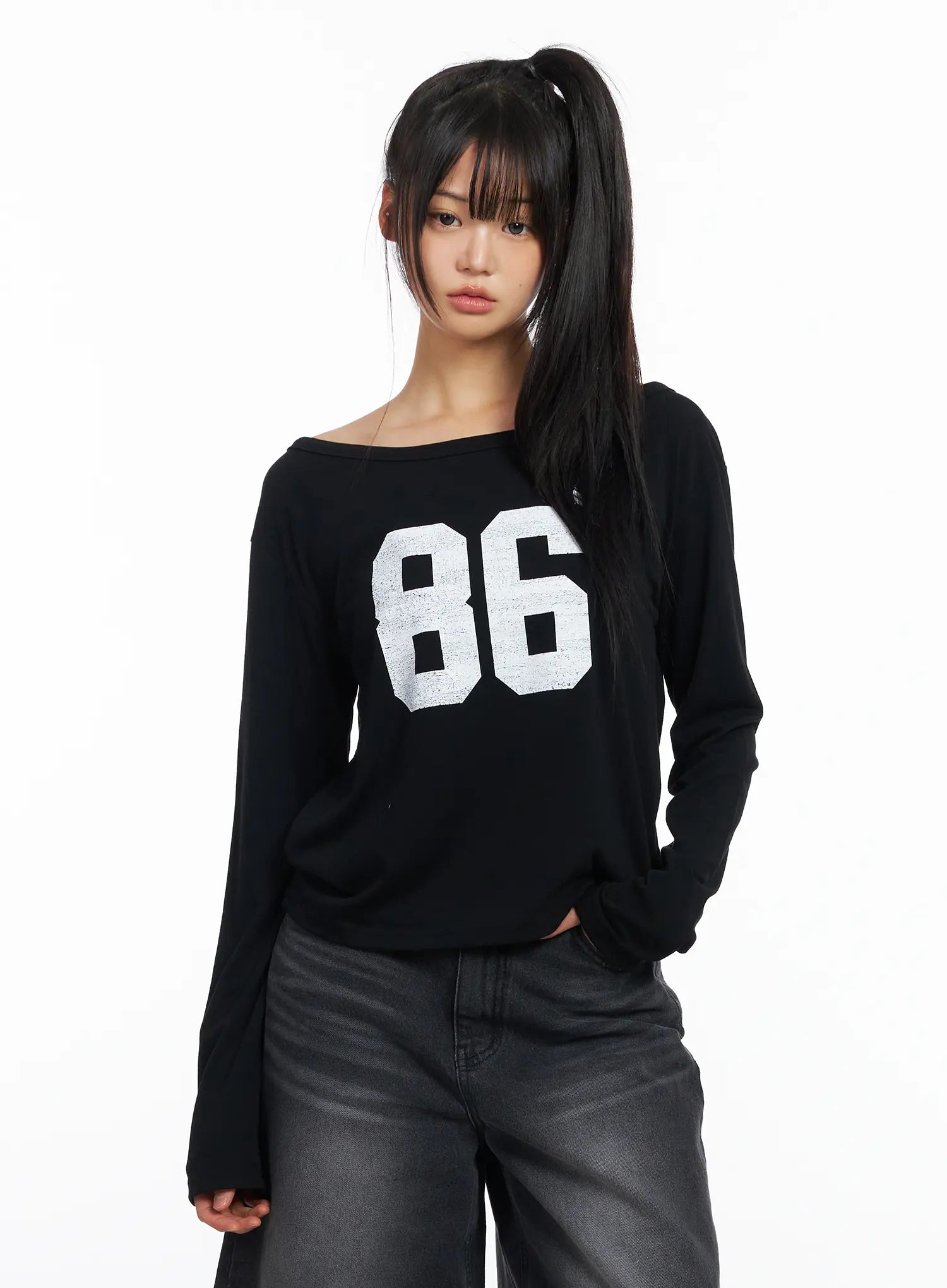 Loose Fit Boat Neck Graphic Long Sleeve Tee CF504