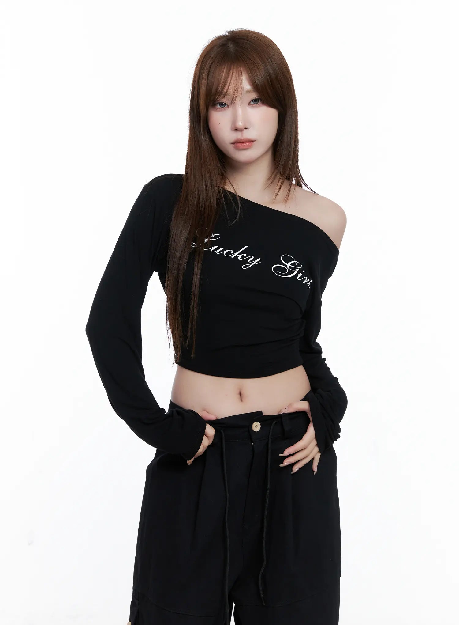 Lucky Girl One-Shoulder Long Sleeve Top CG529