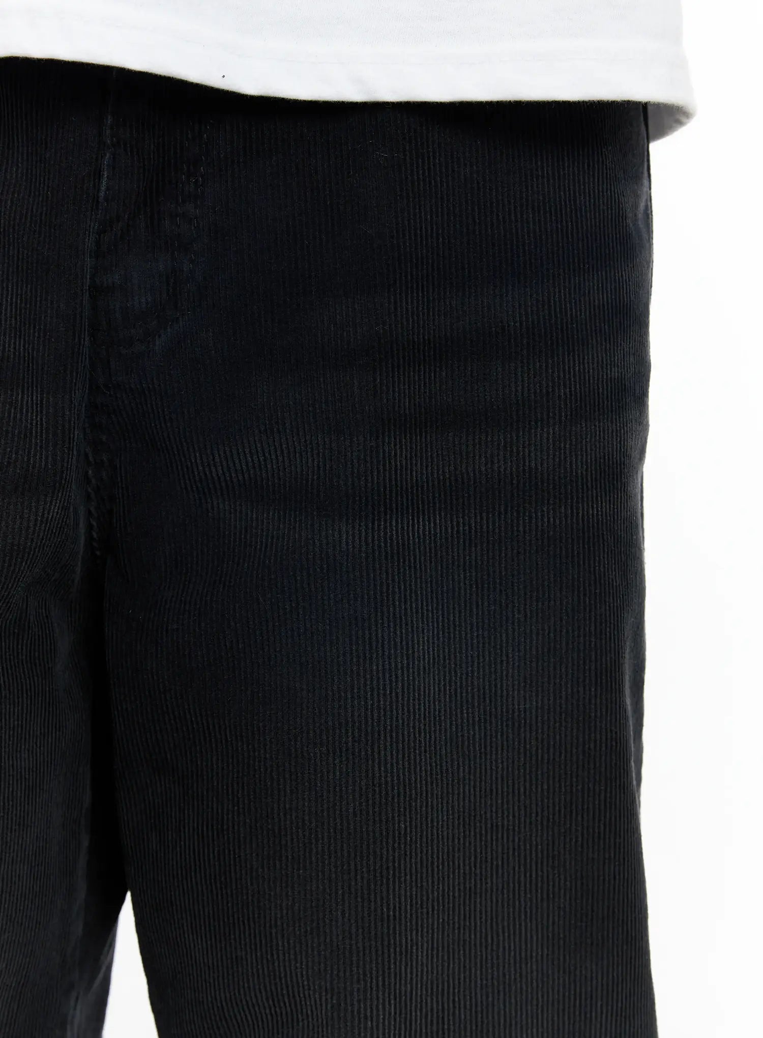 Men's Black Washed Wide Corduroy Pants IJ521
