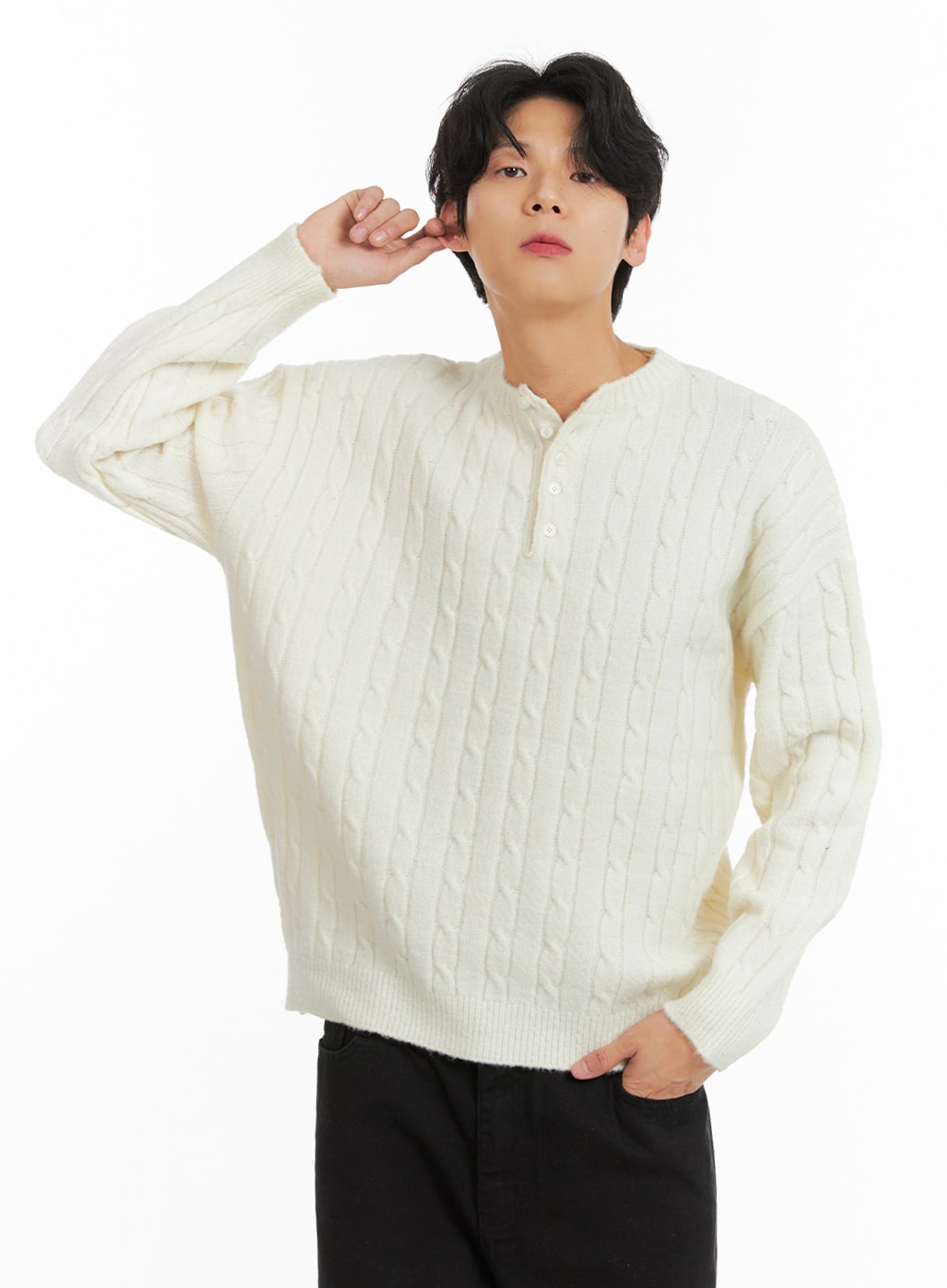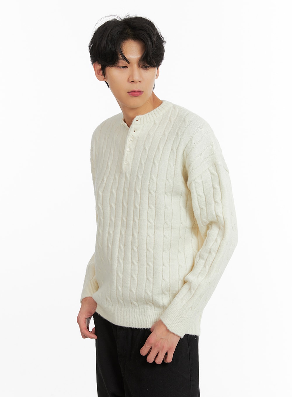 Men's Cable Knit Buttoned Sweater IA401