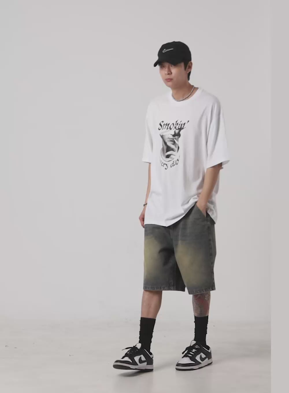 Men's Cotton Graphic Oversize T-Shirt (White) IG402