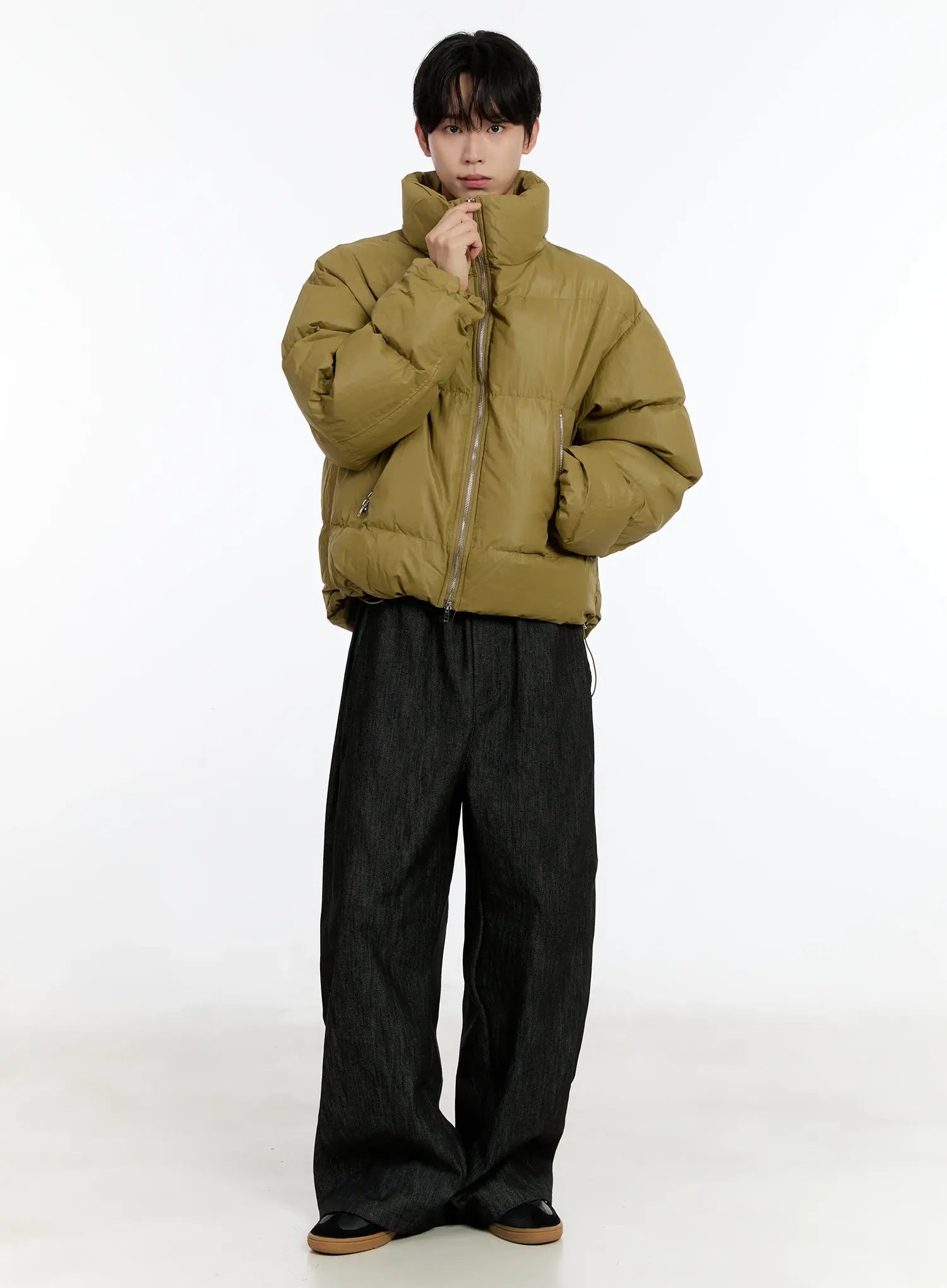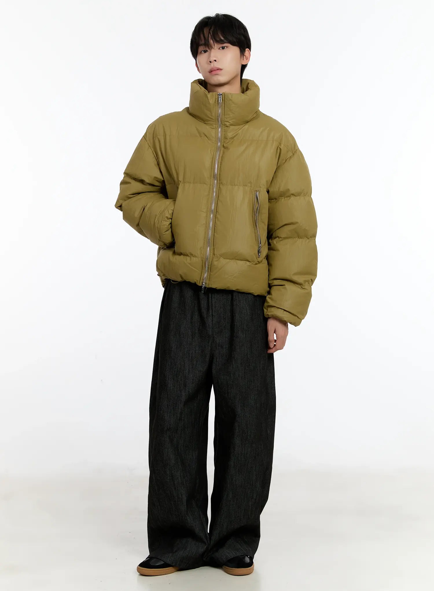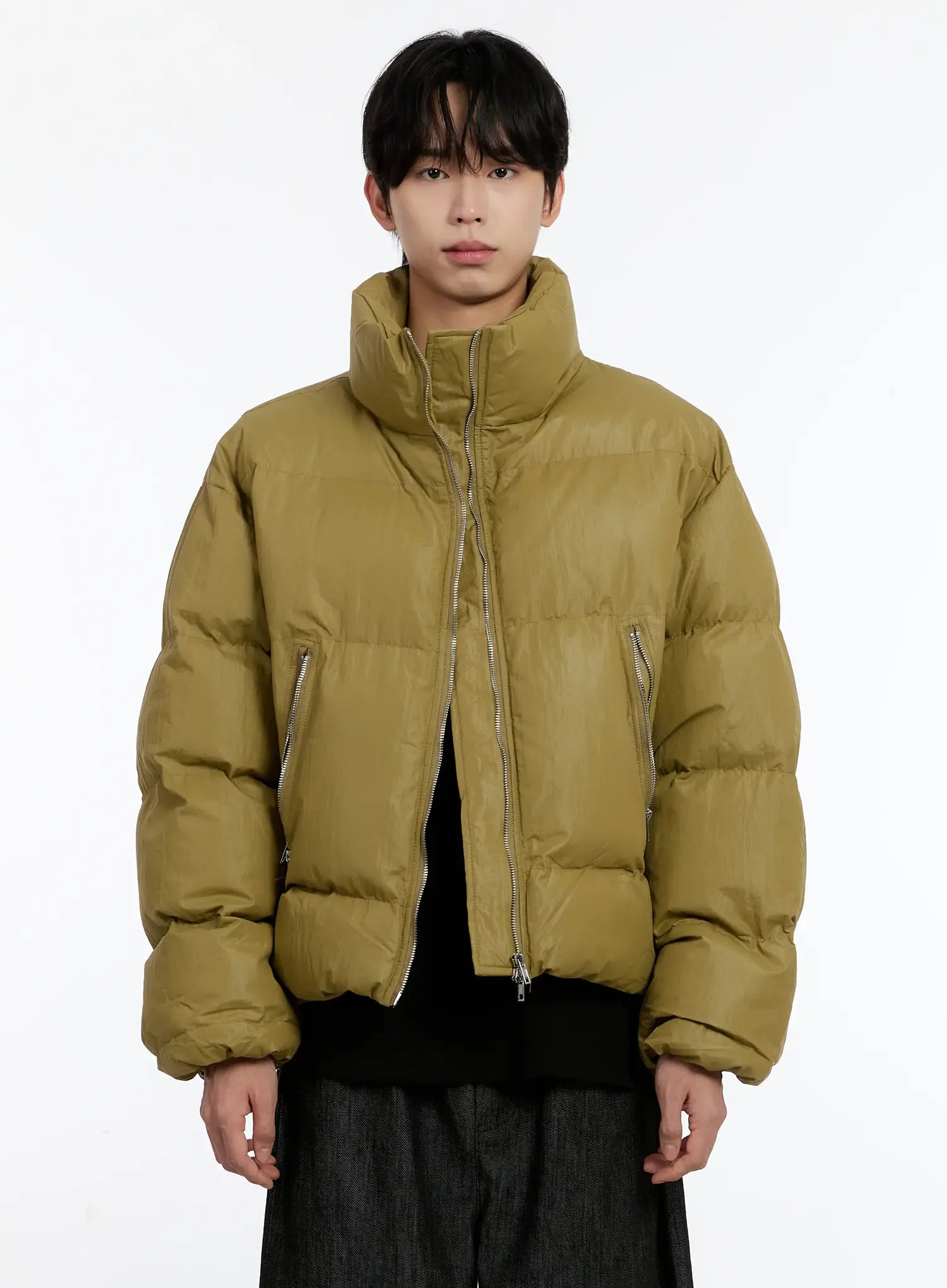 Men's Cropped Puffer Jacket (Dark Yellow) ID502
