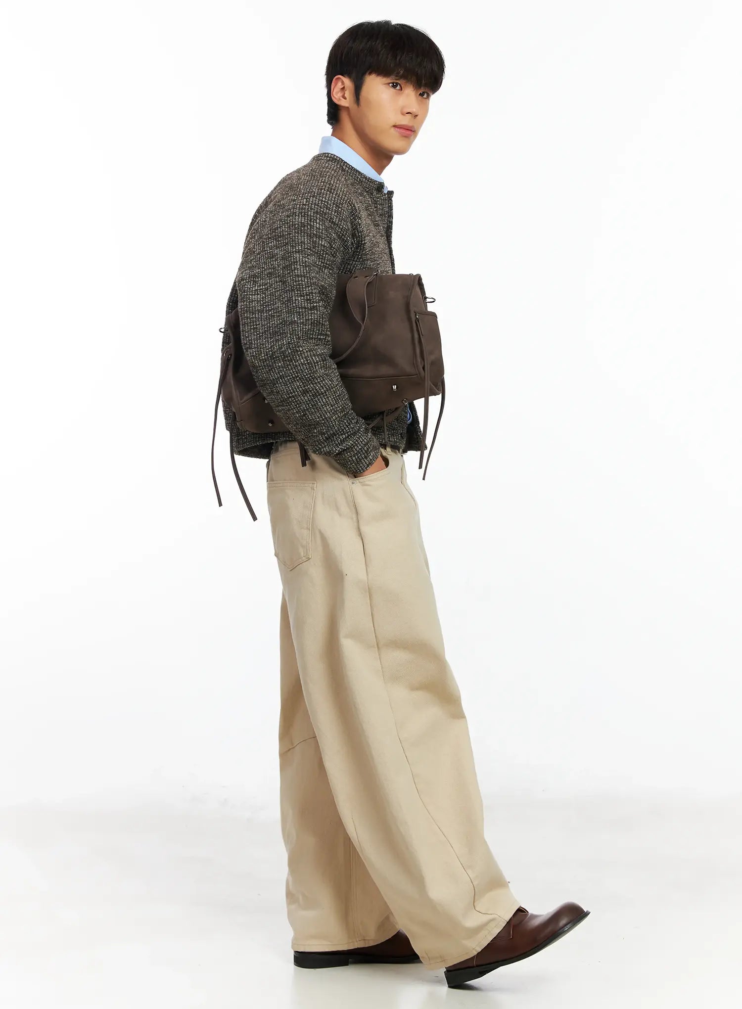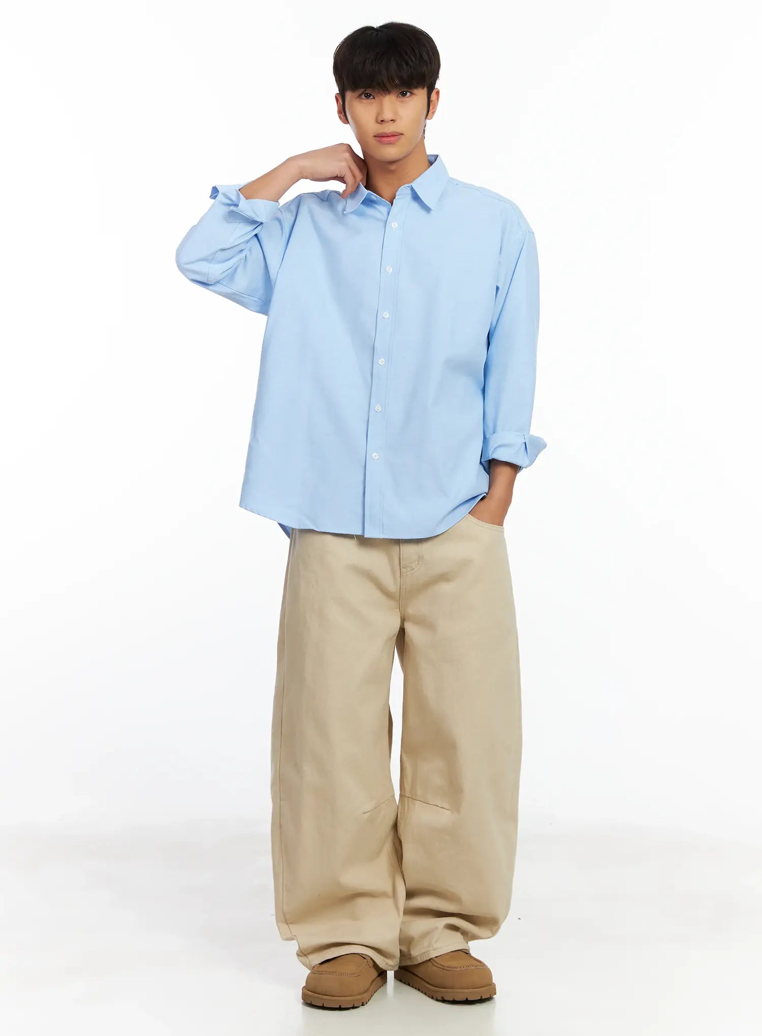 Model is wearing size L and the color Light beige.