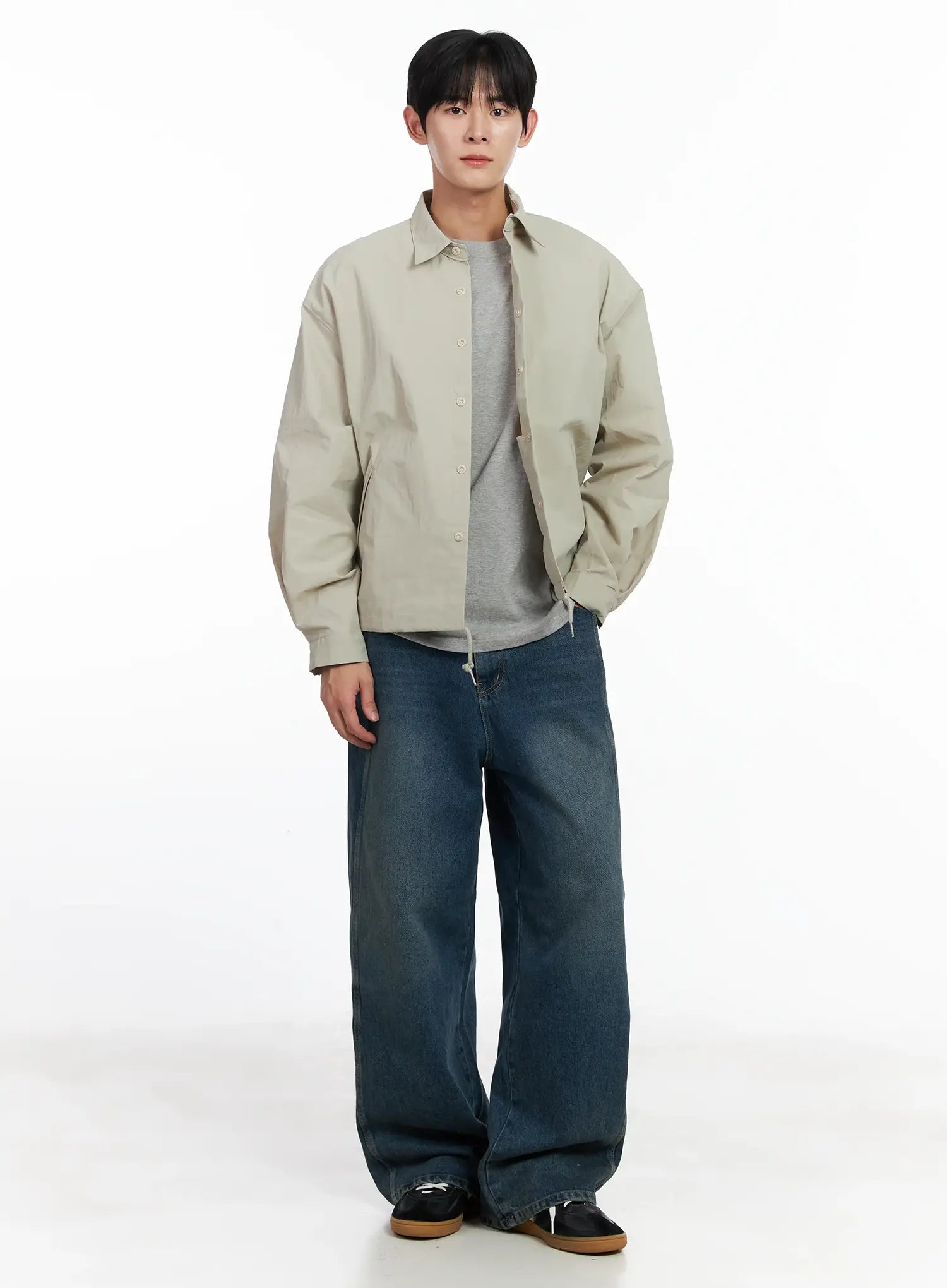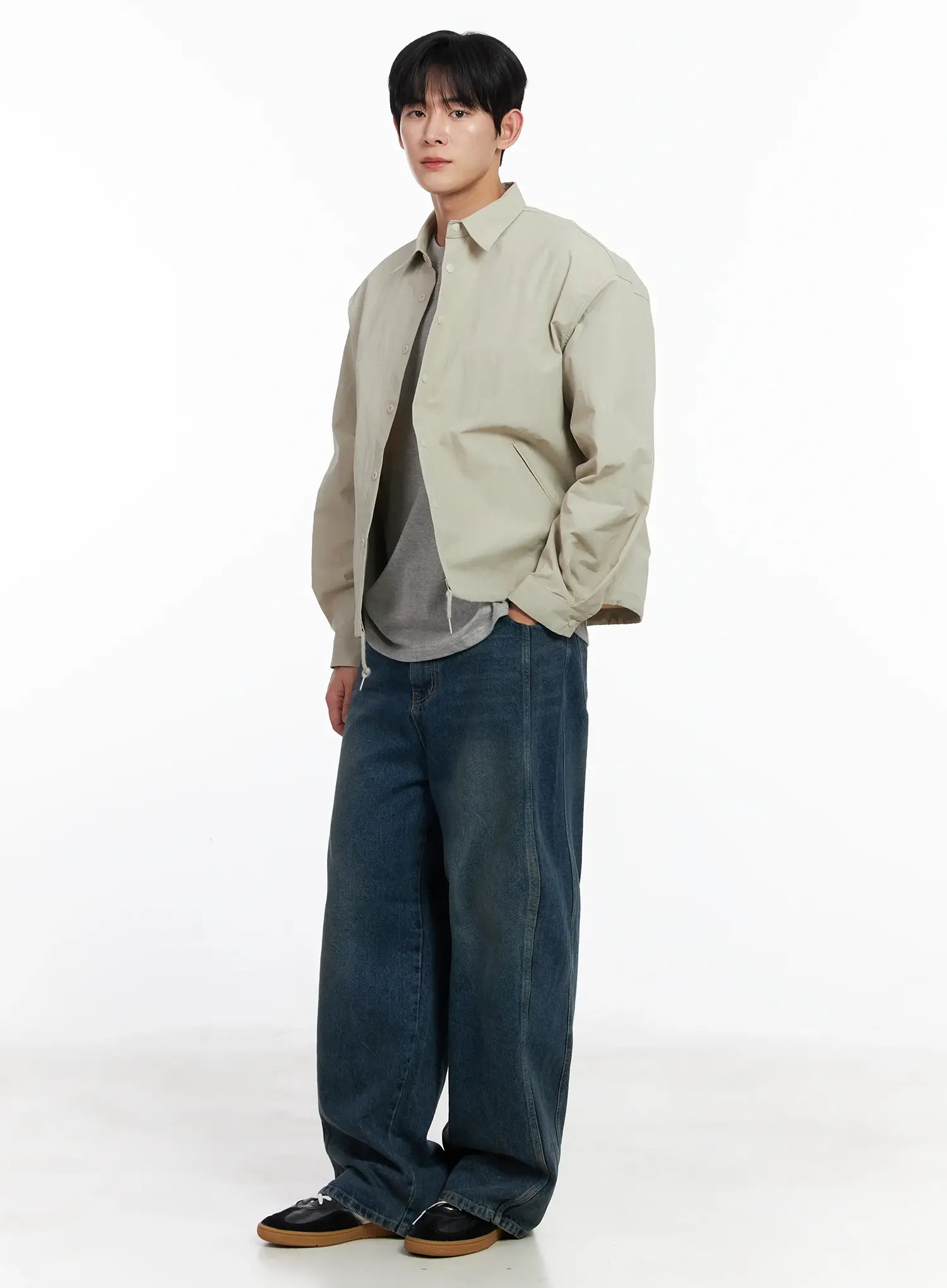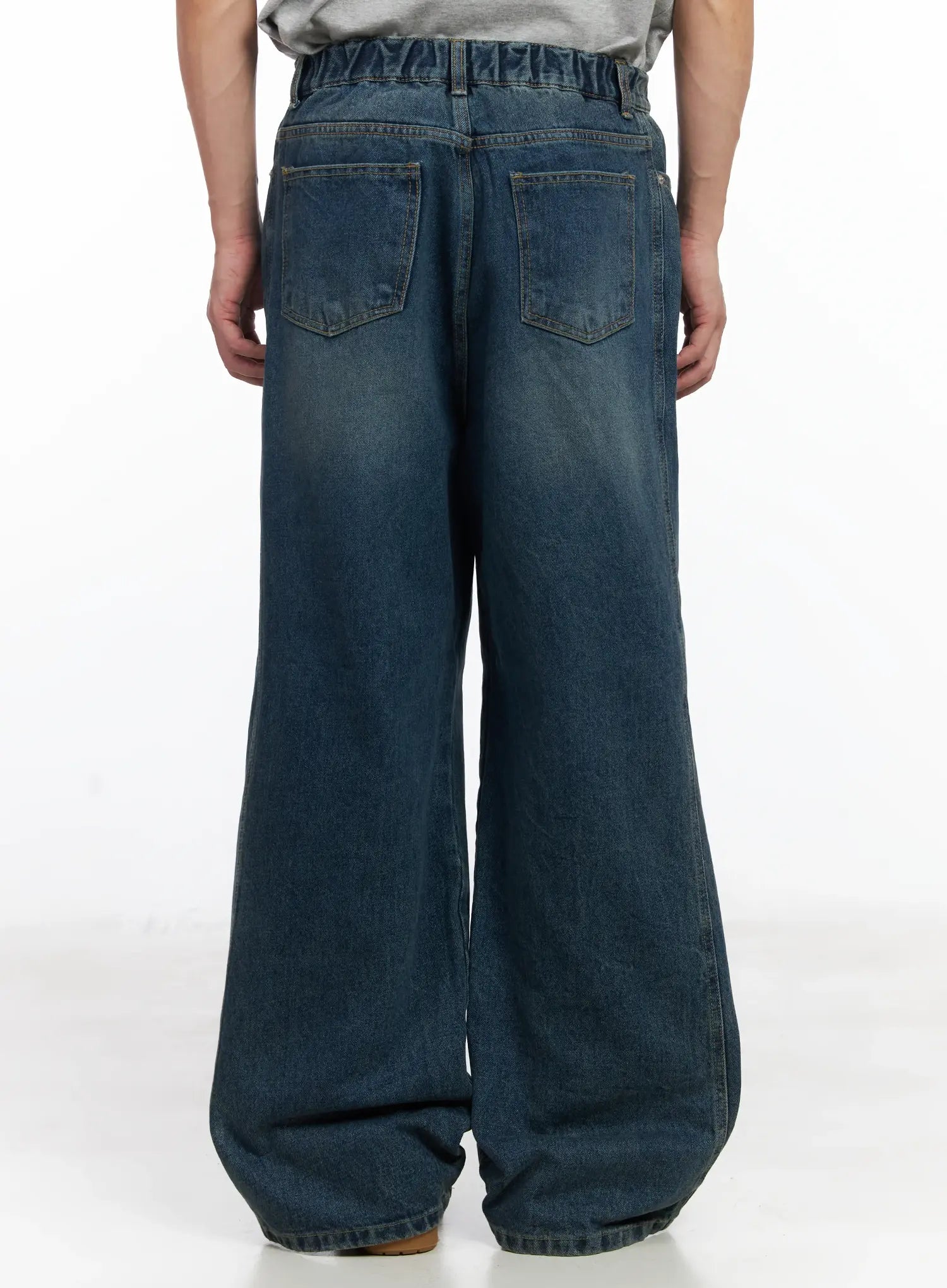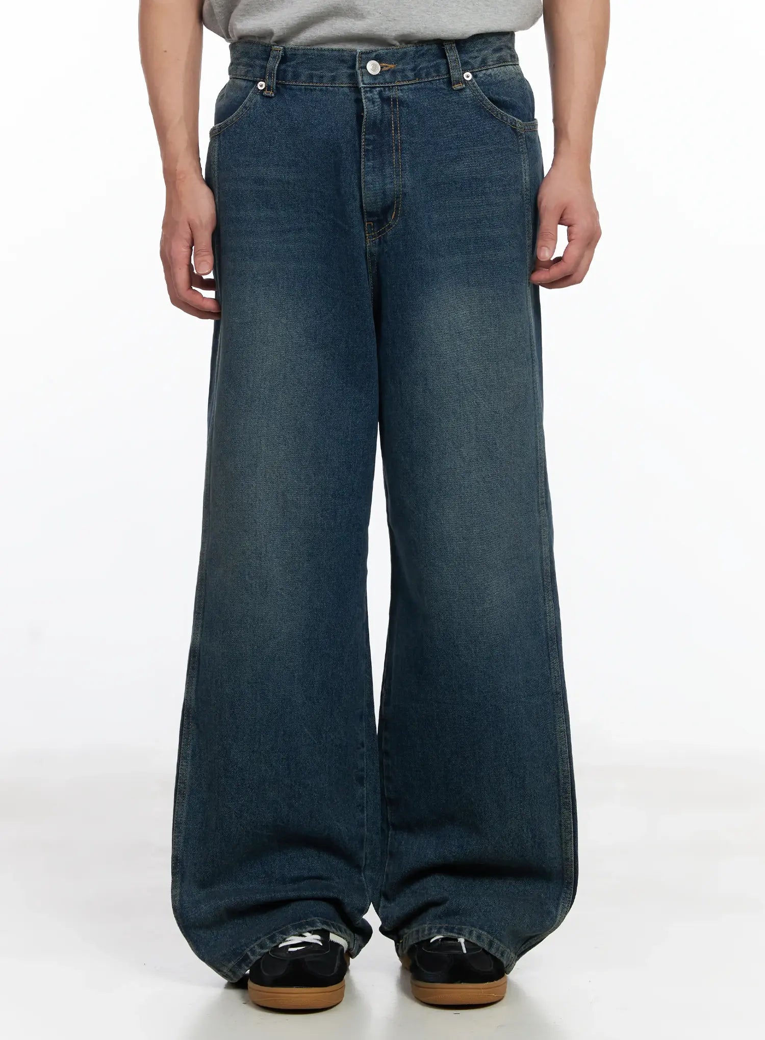 Men's Dark Blue Wide Denim Pants IJ521