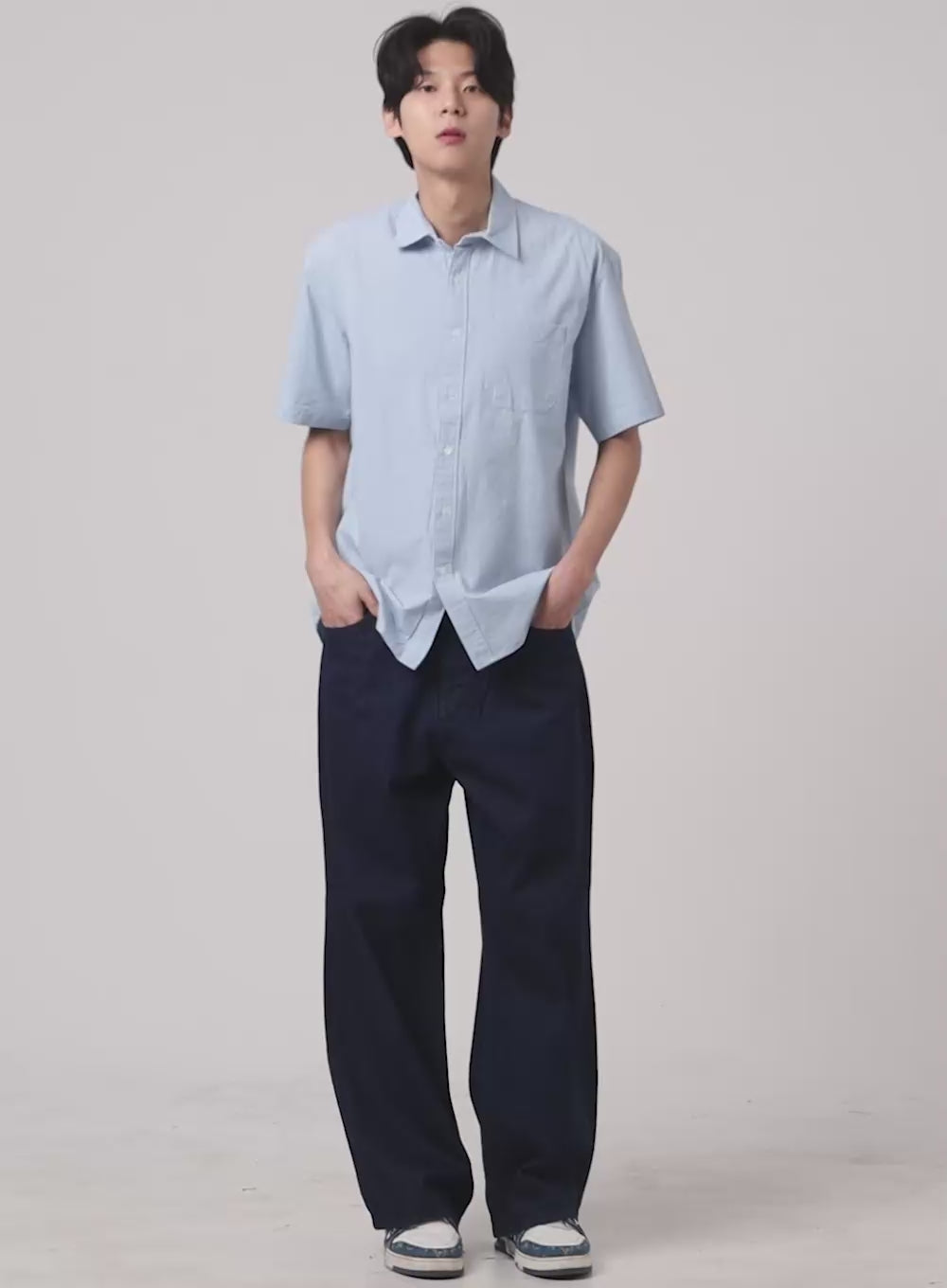 Men's Denim Short Sleeve Buttoned Shirt IA402