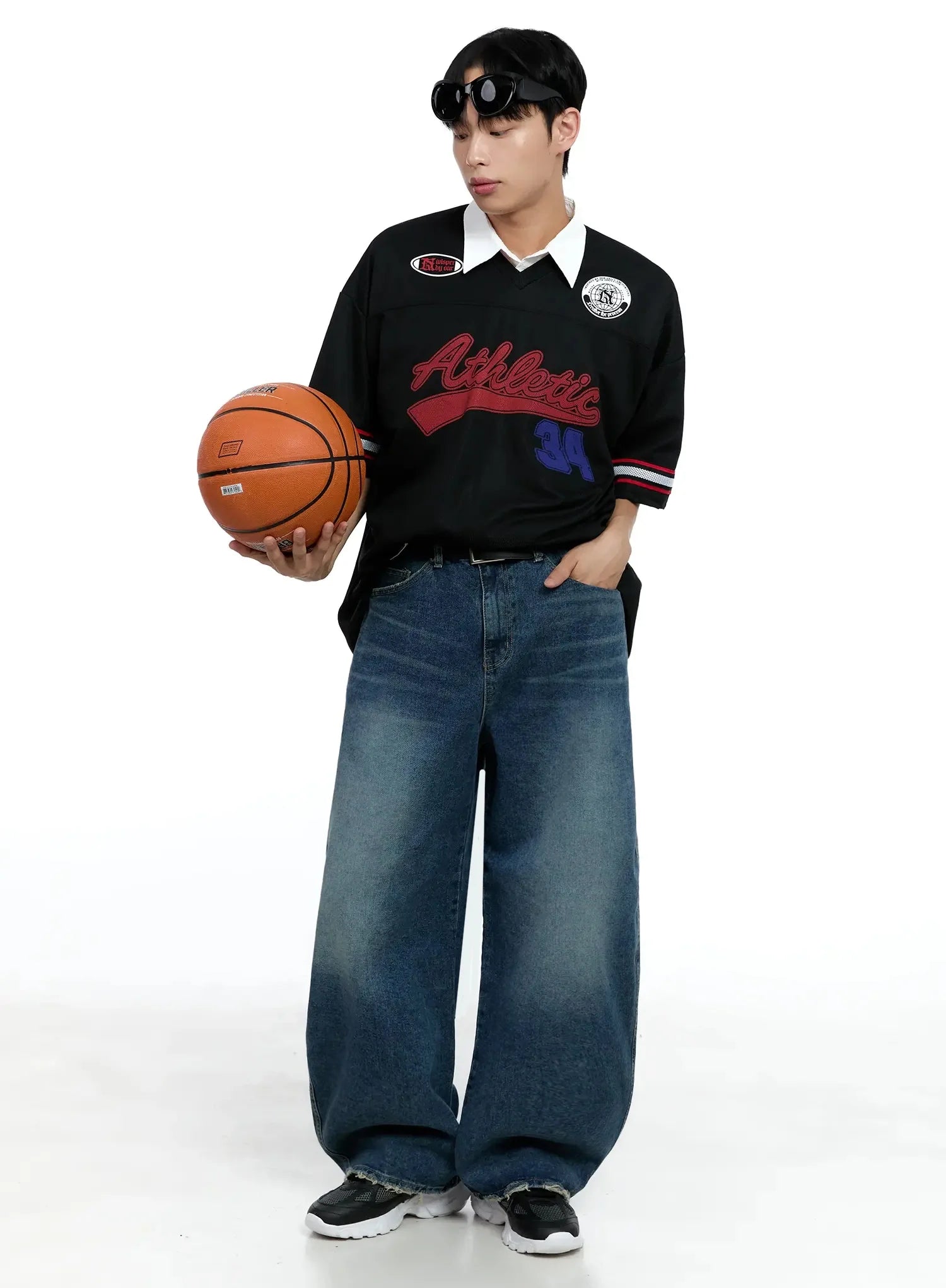 Men's Frayed Hem Baggy Jeans IG520