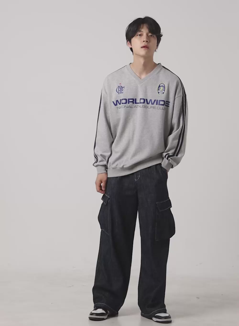 Men's Graphic V-Neck Sweatshirt (Black) IG409