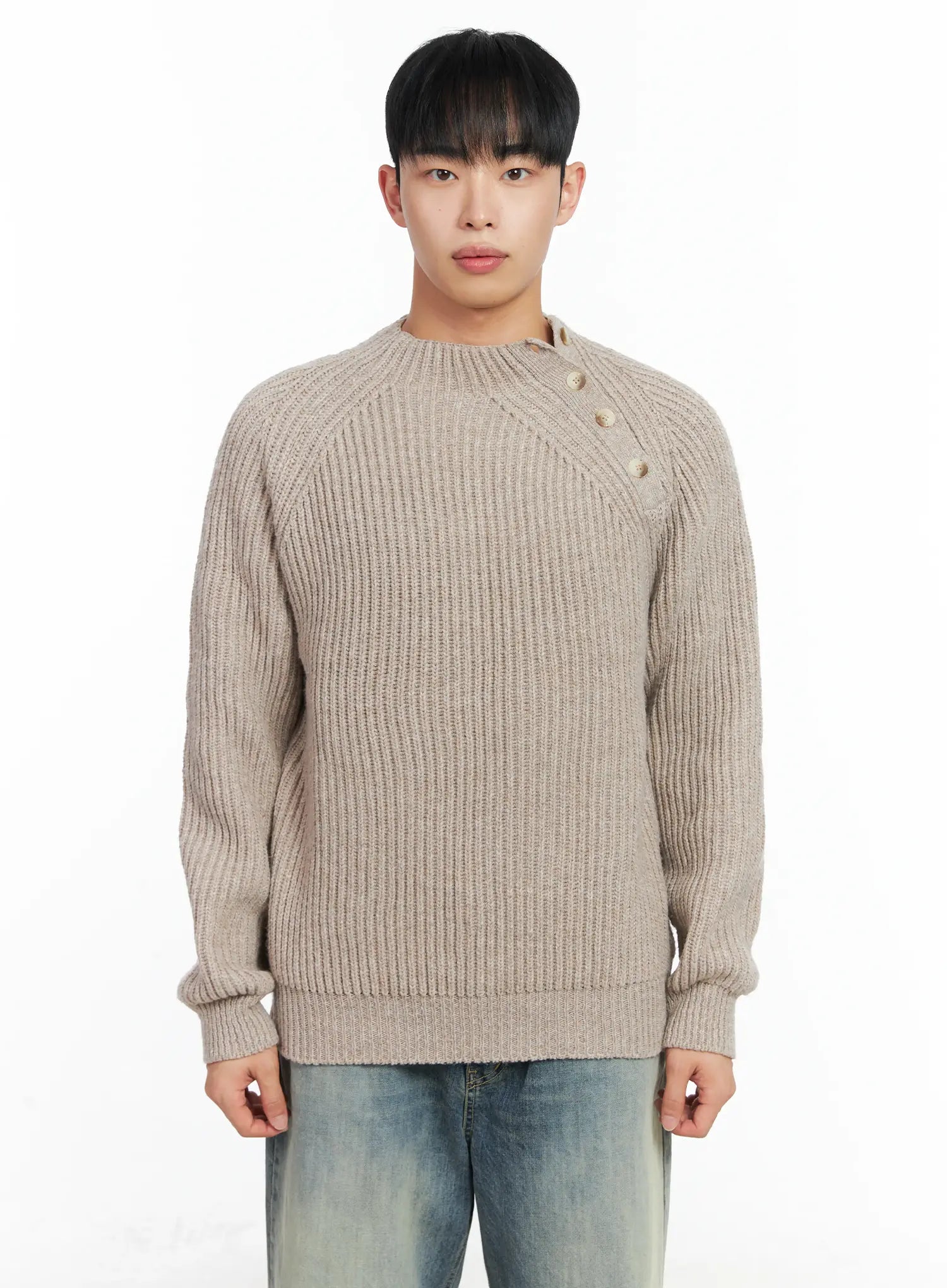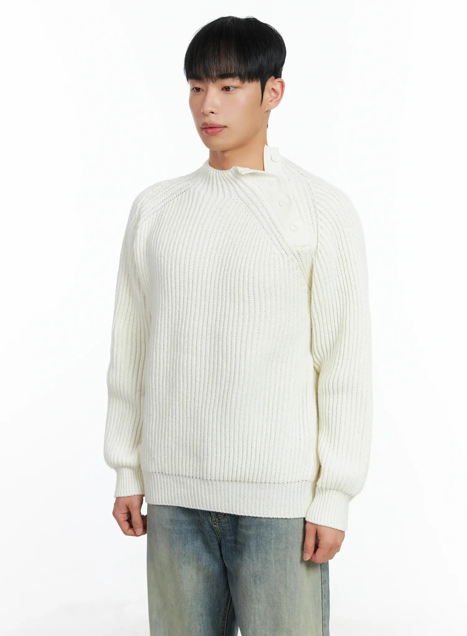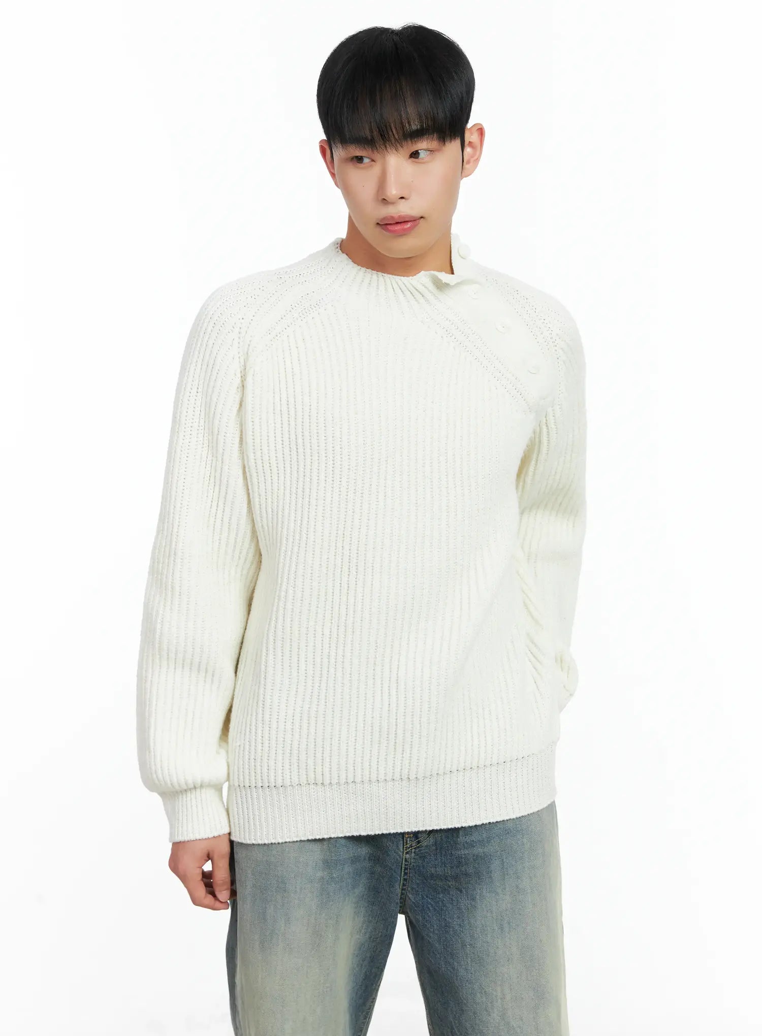 Men's Mock Neck Raglan Knit Sweater IN518