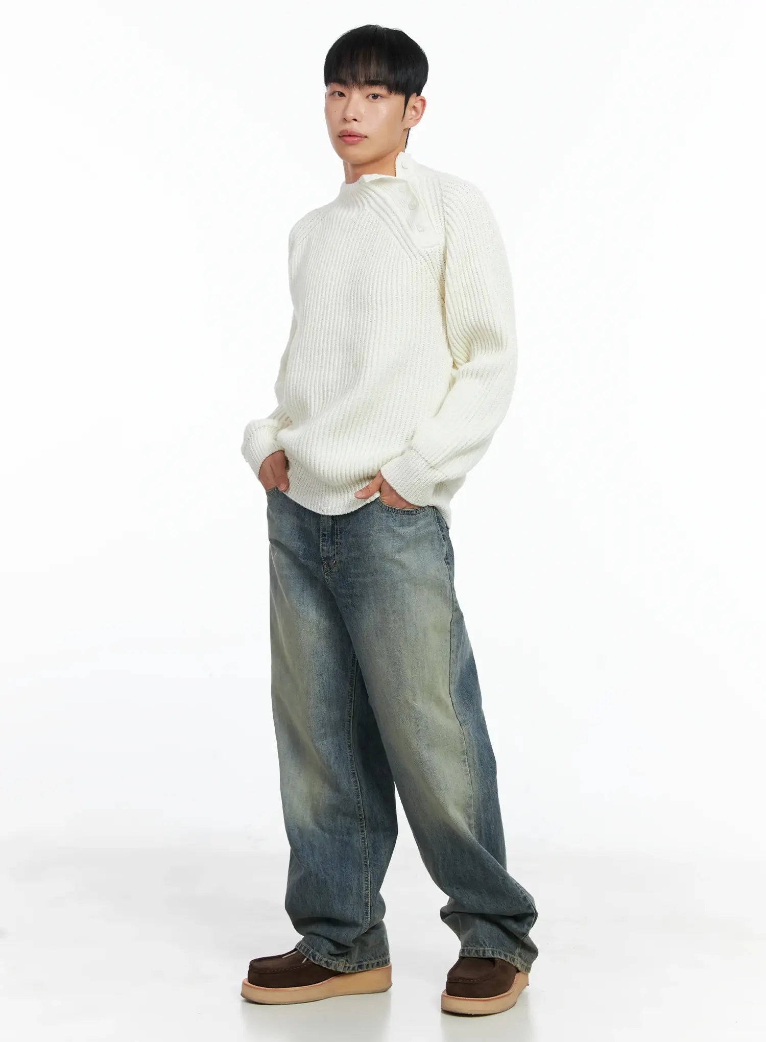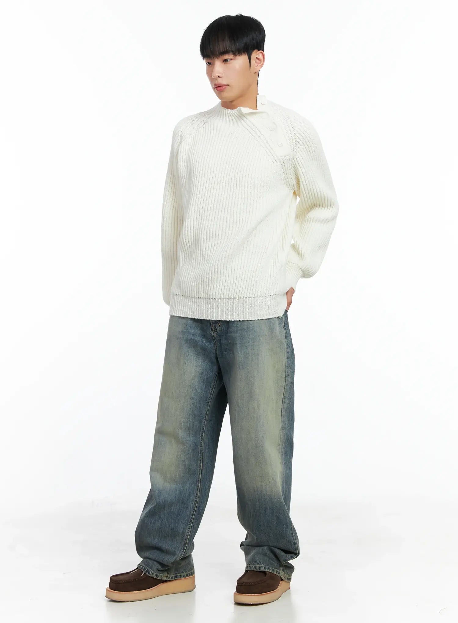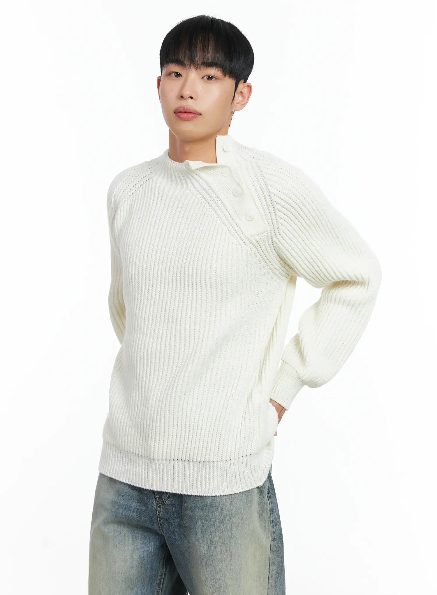 Men's Mock Neck Raglan Knit Sweater IN518
