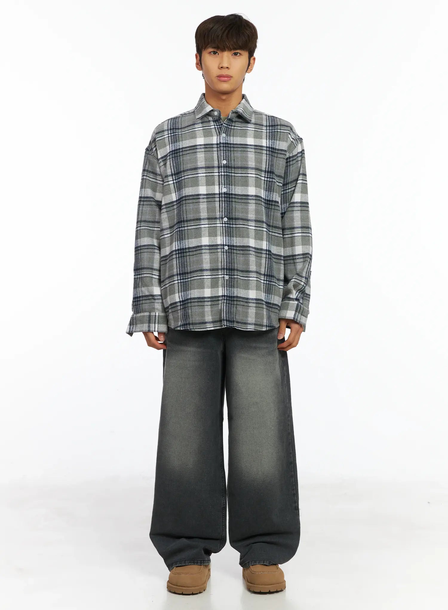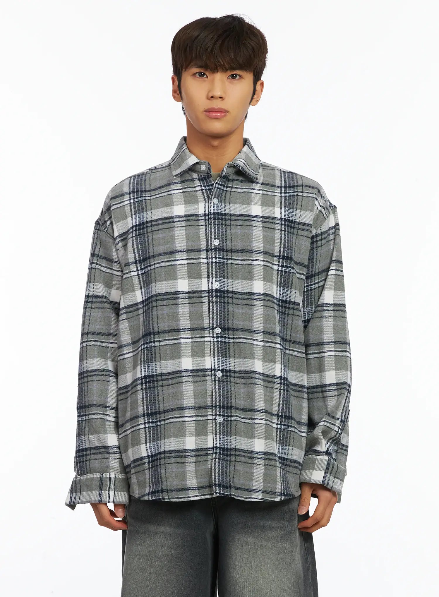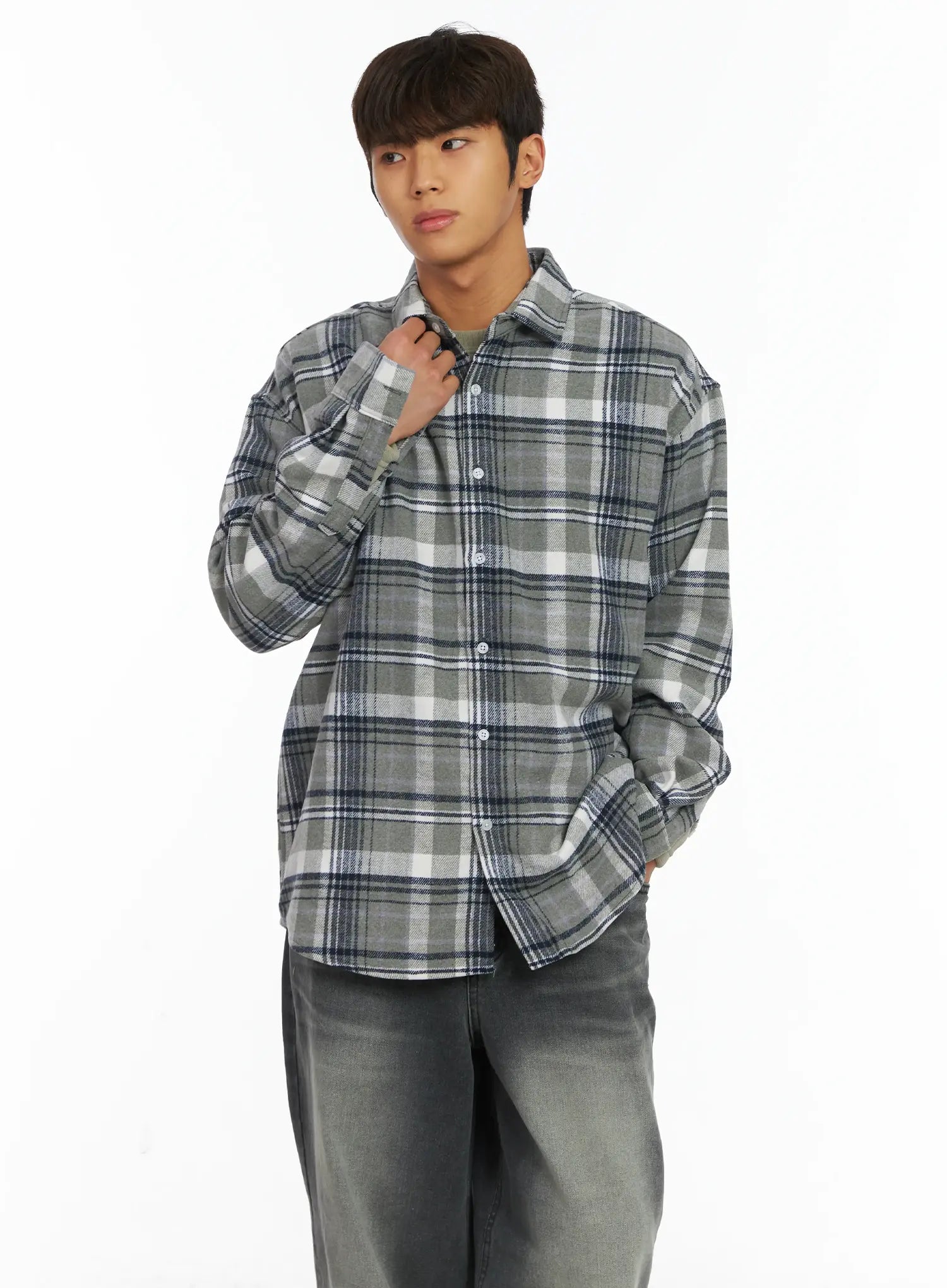 Men's Plaid Button-Up Shirt IJ514
