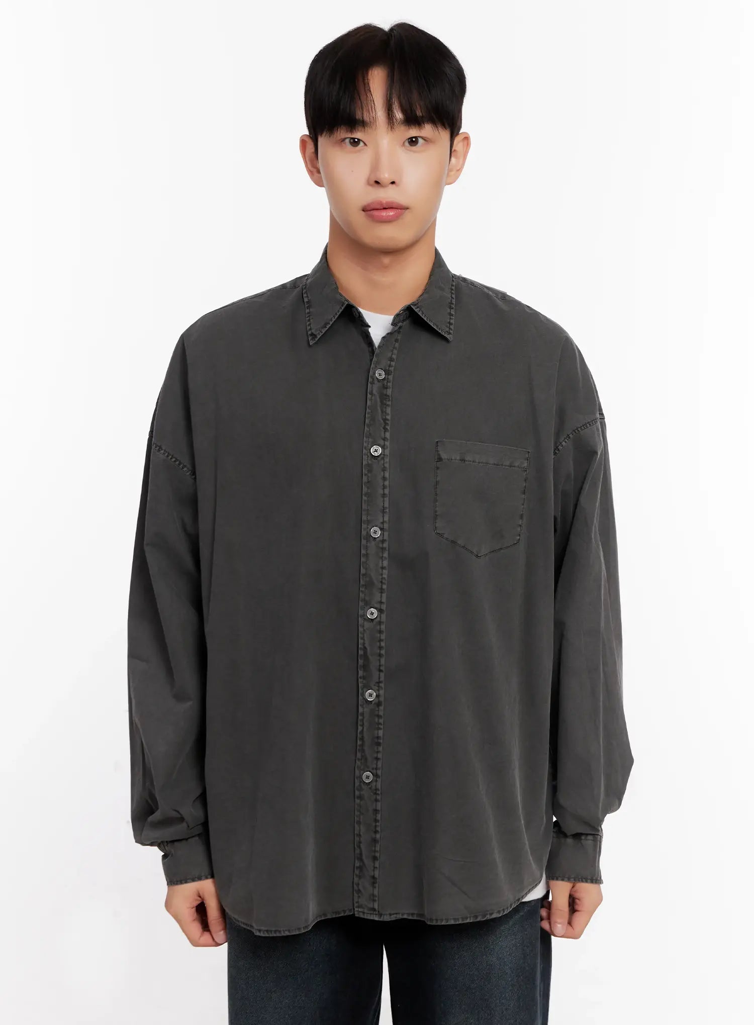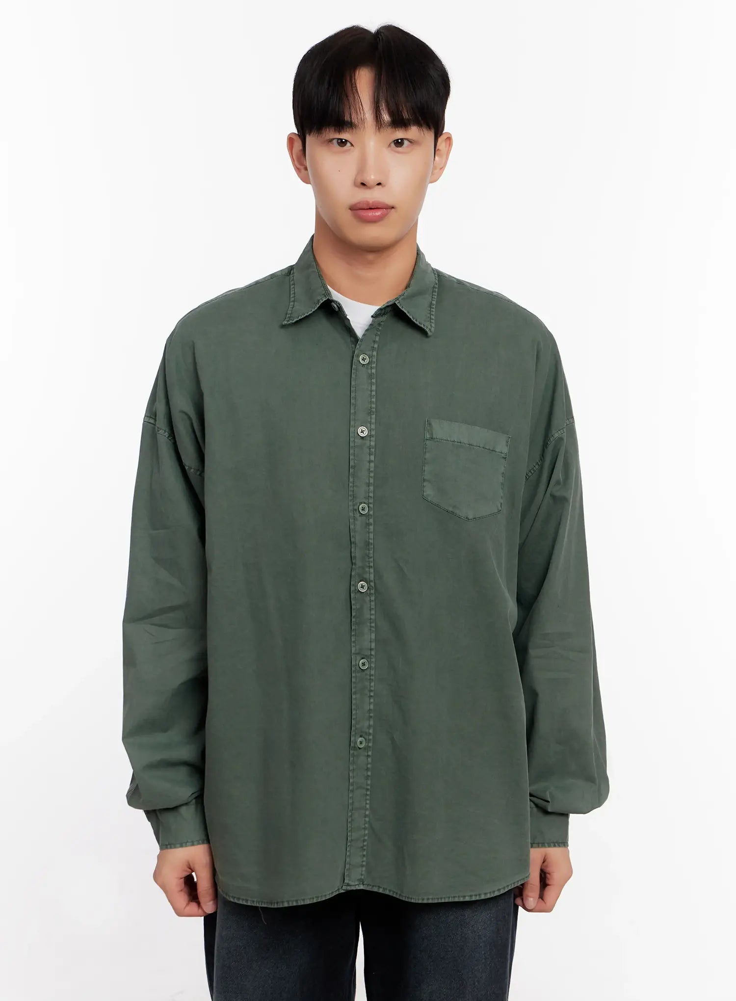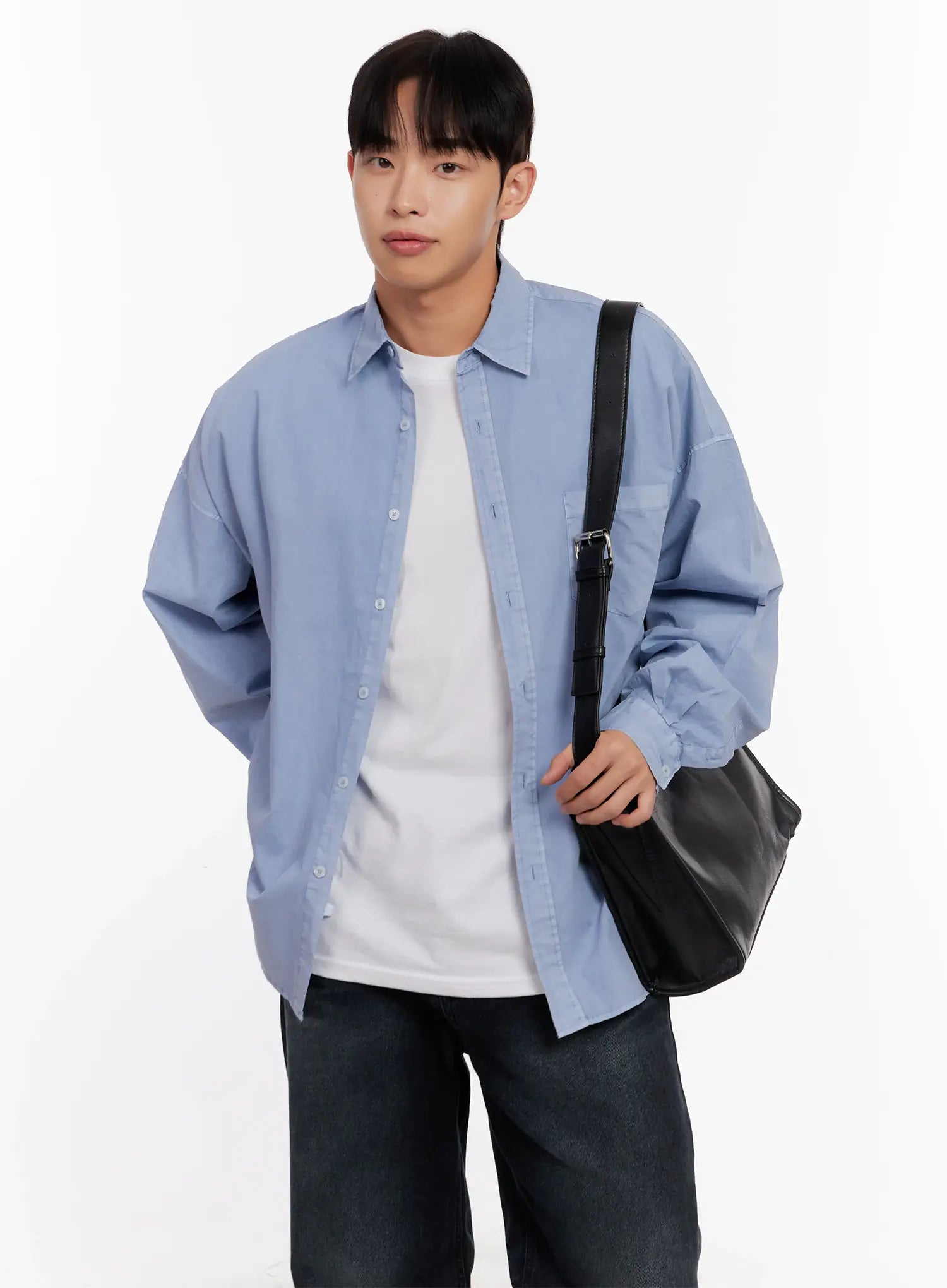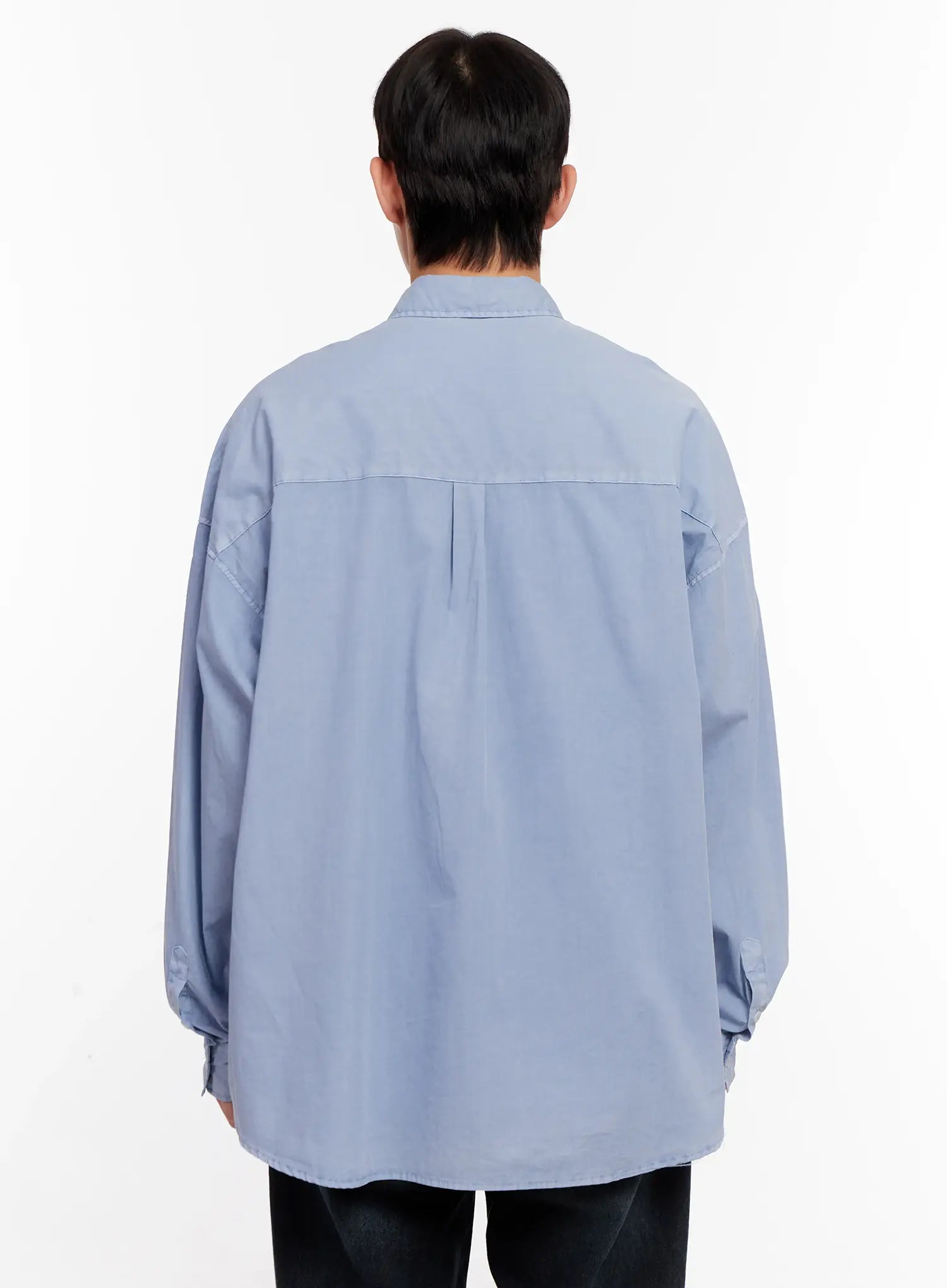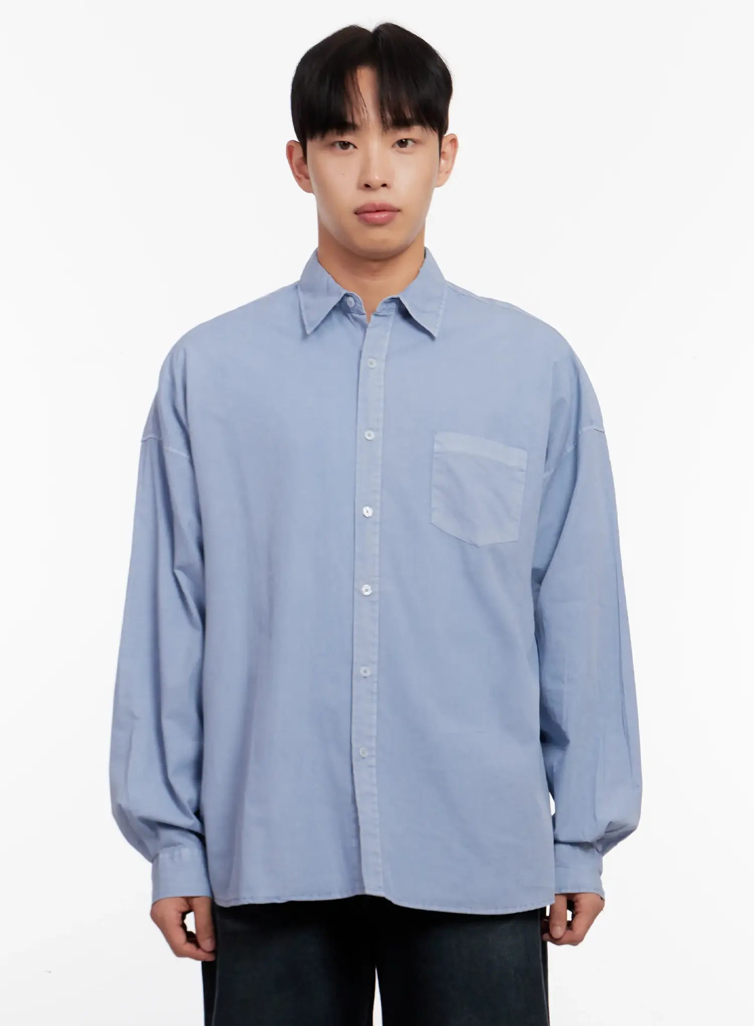 Men's Relaxed Fit Blue Cotton Shirt IO528