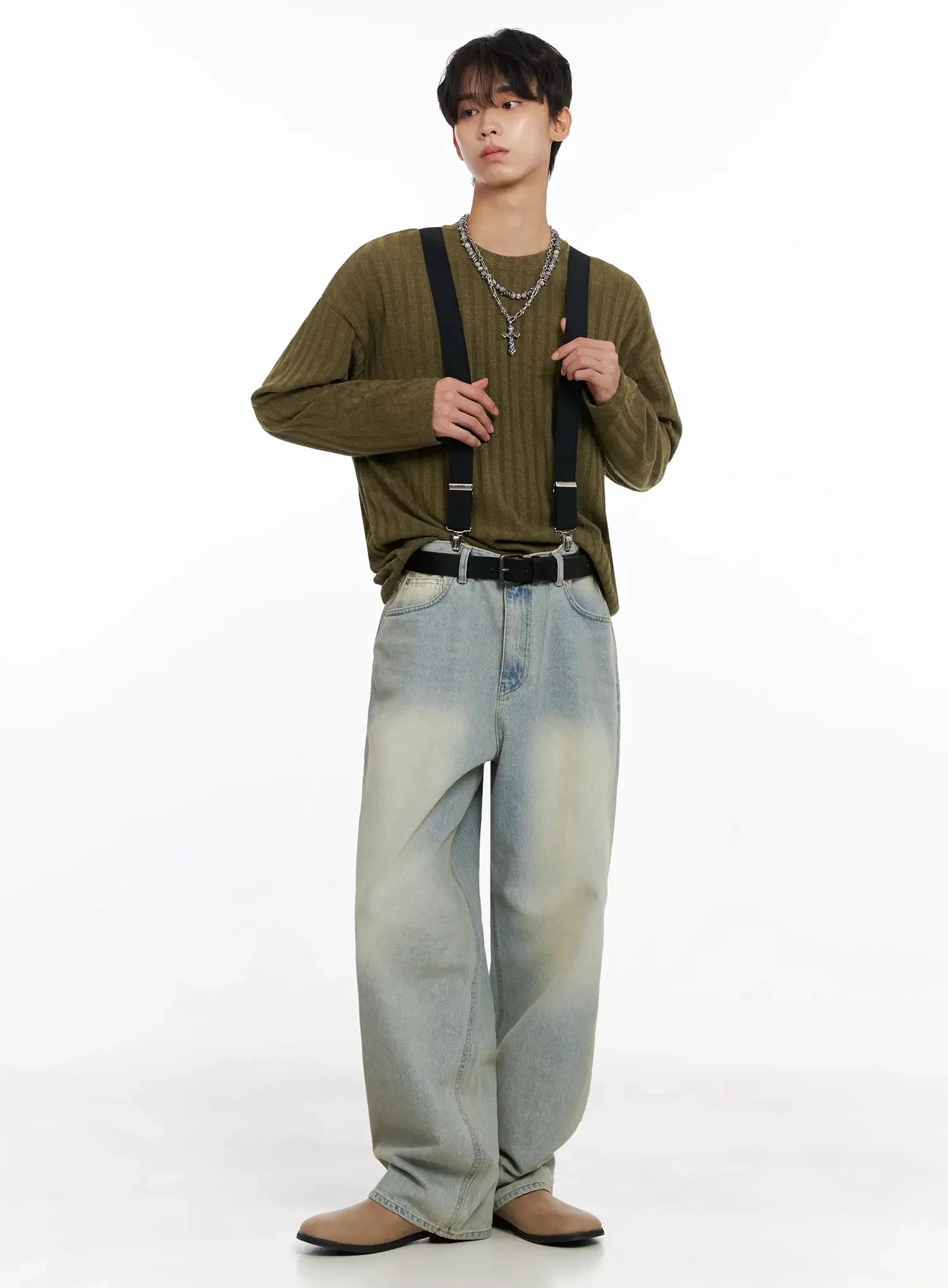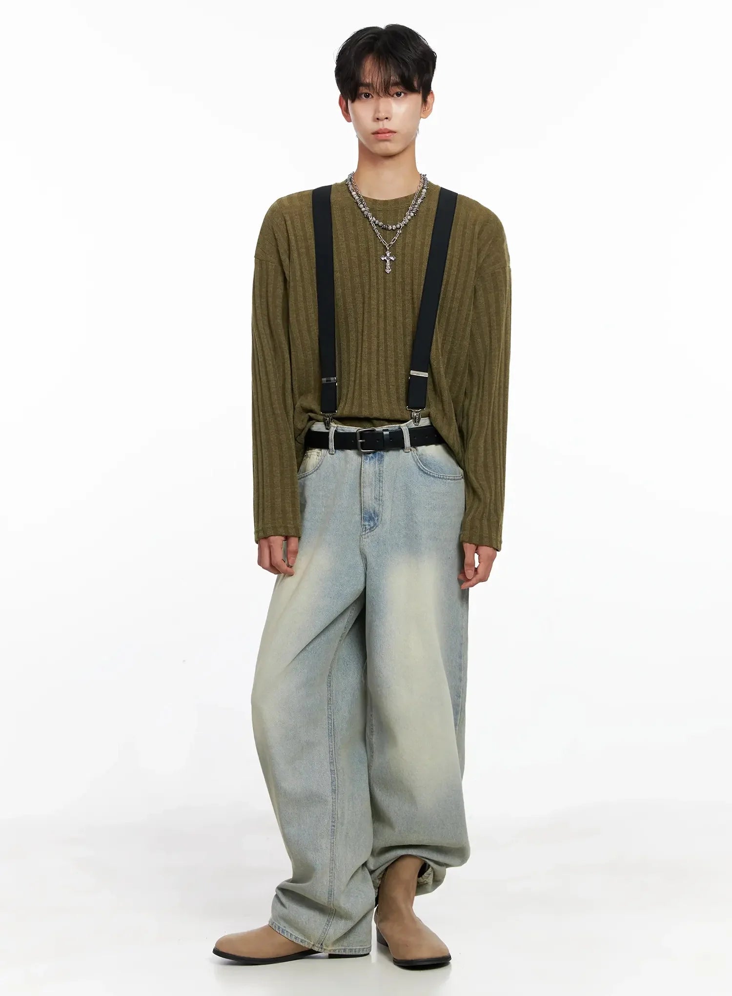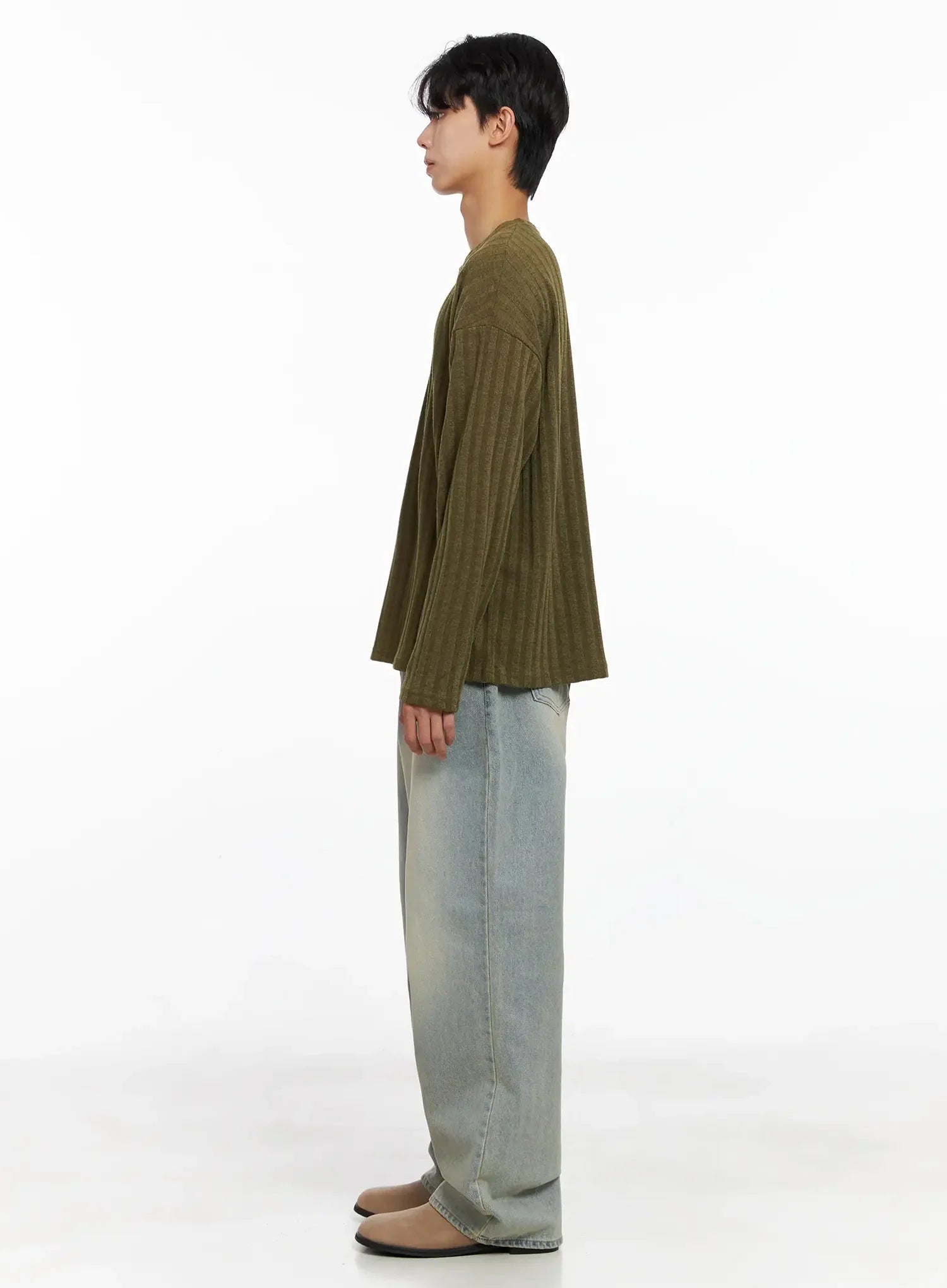 Men's Ribbed Knit Long Sleeve Shirt IO516