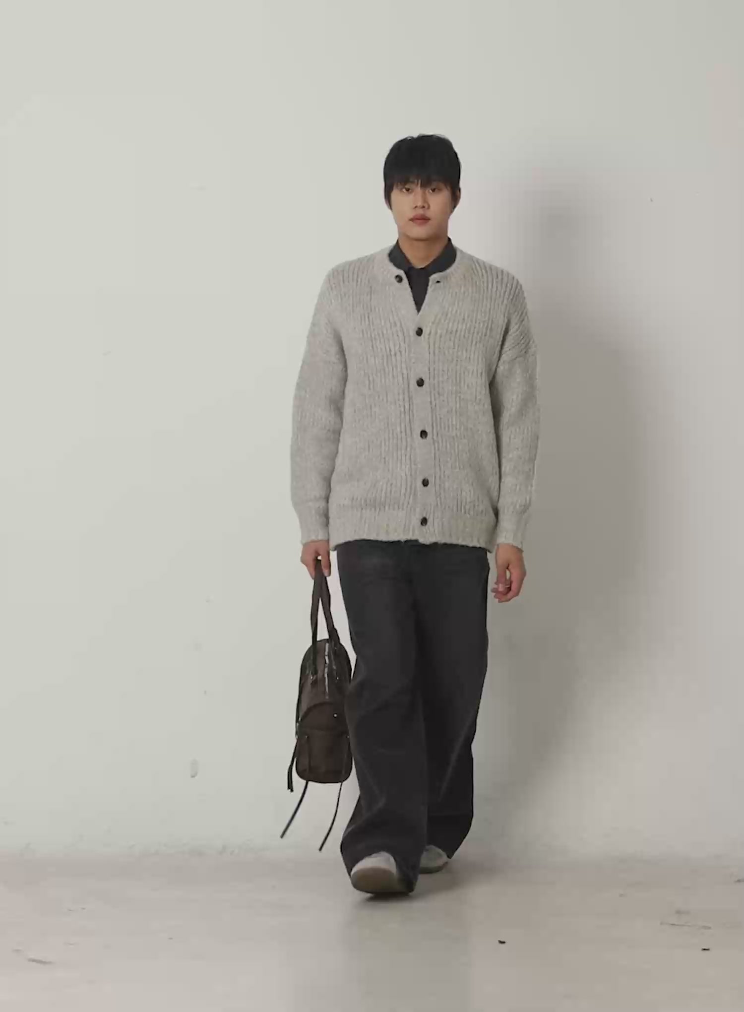 Men's Round Neck Button-Up Cardigan IF503