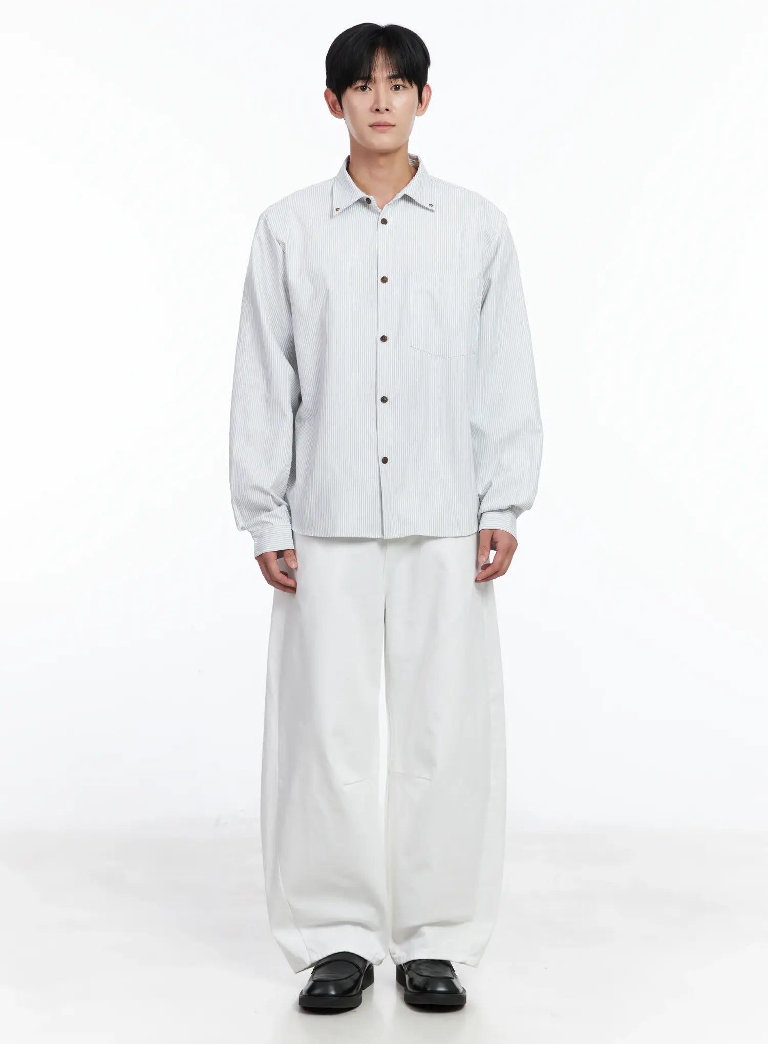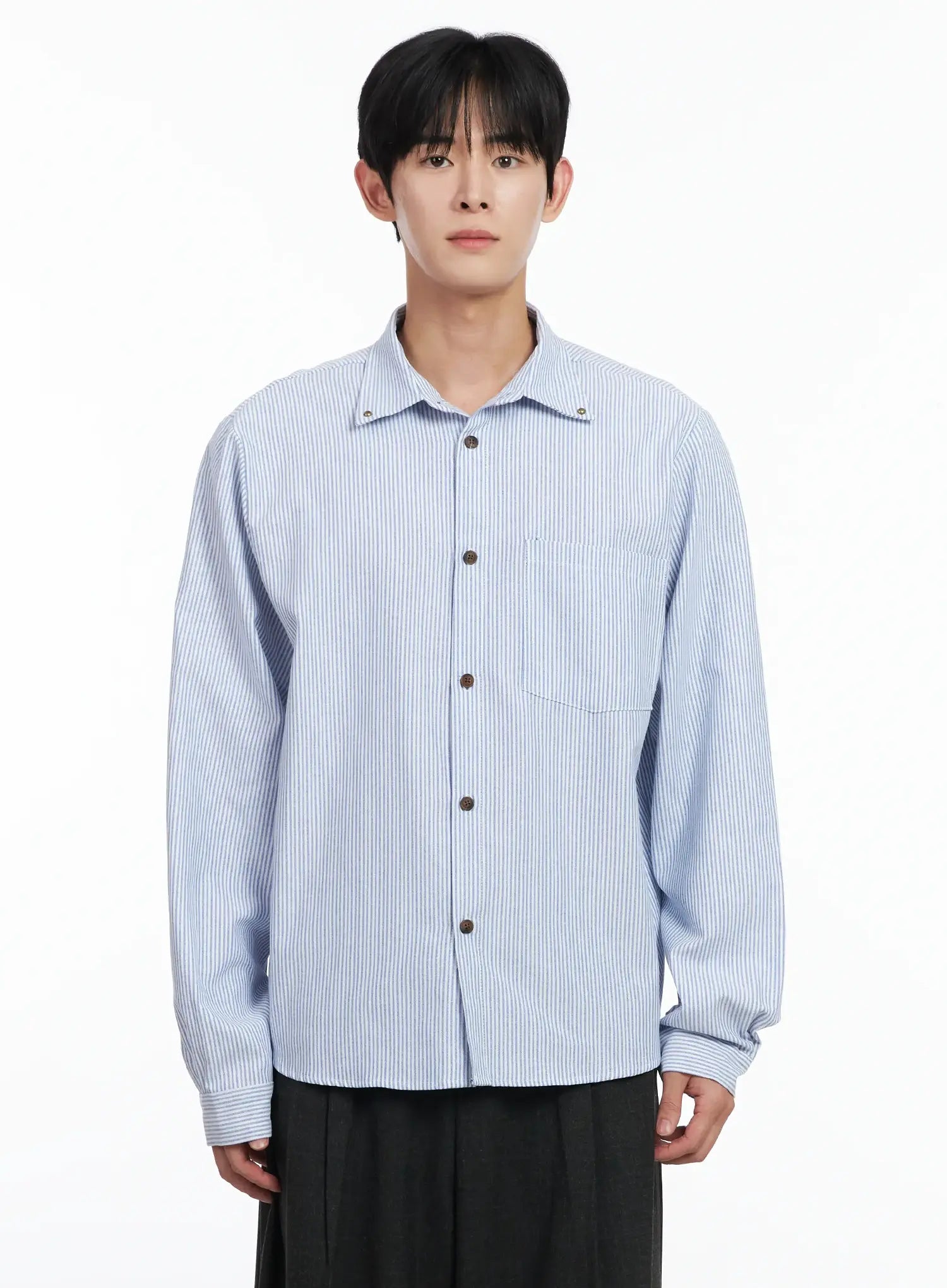 Men's Simple Striped Button-Up Shirt IJ521