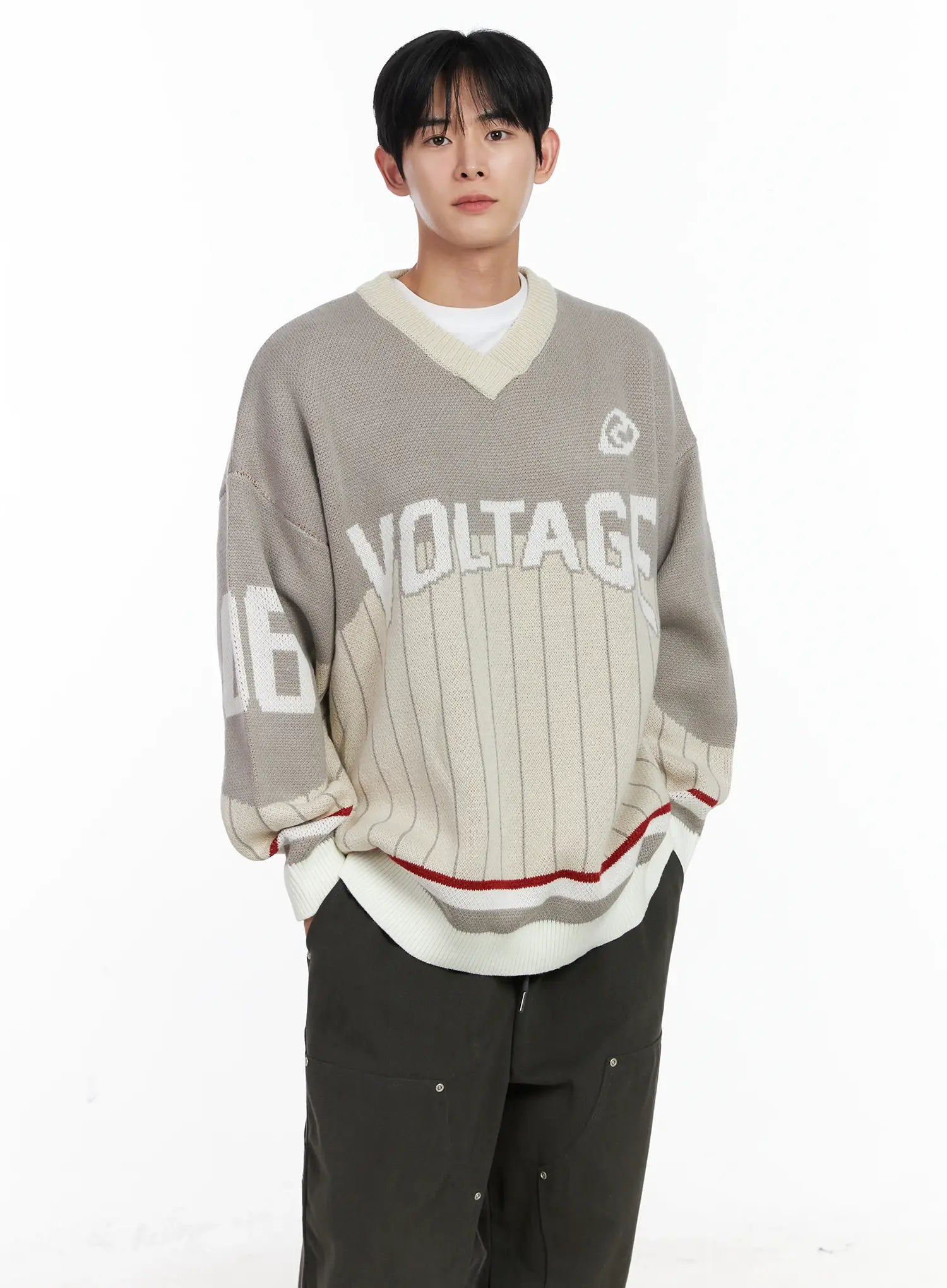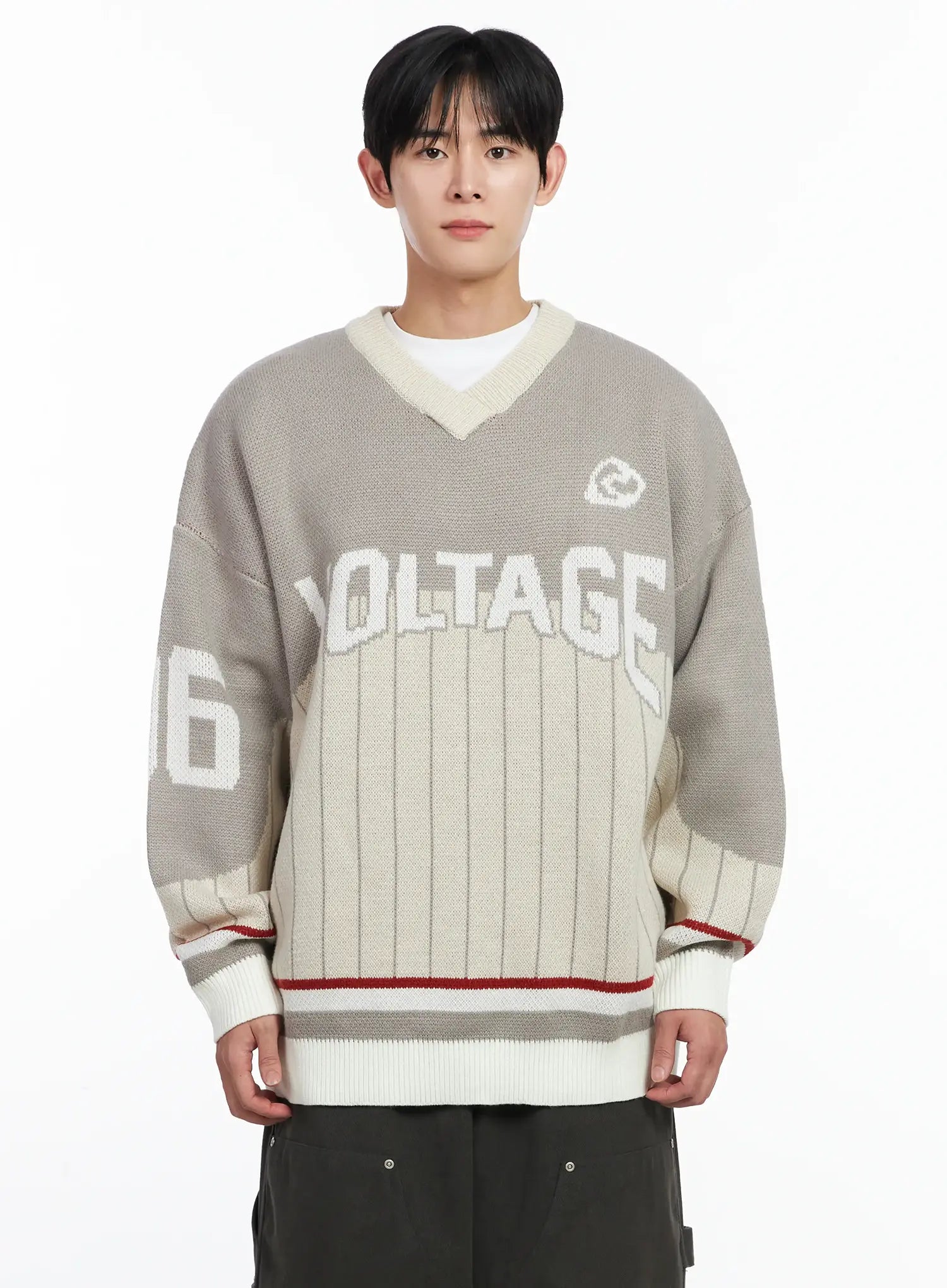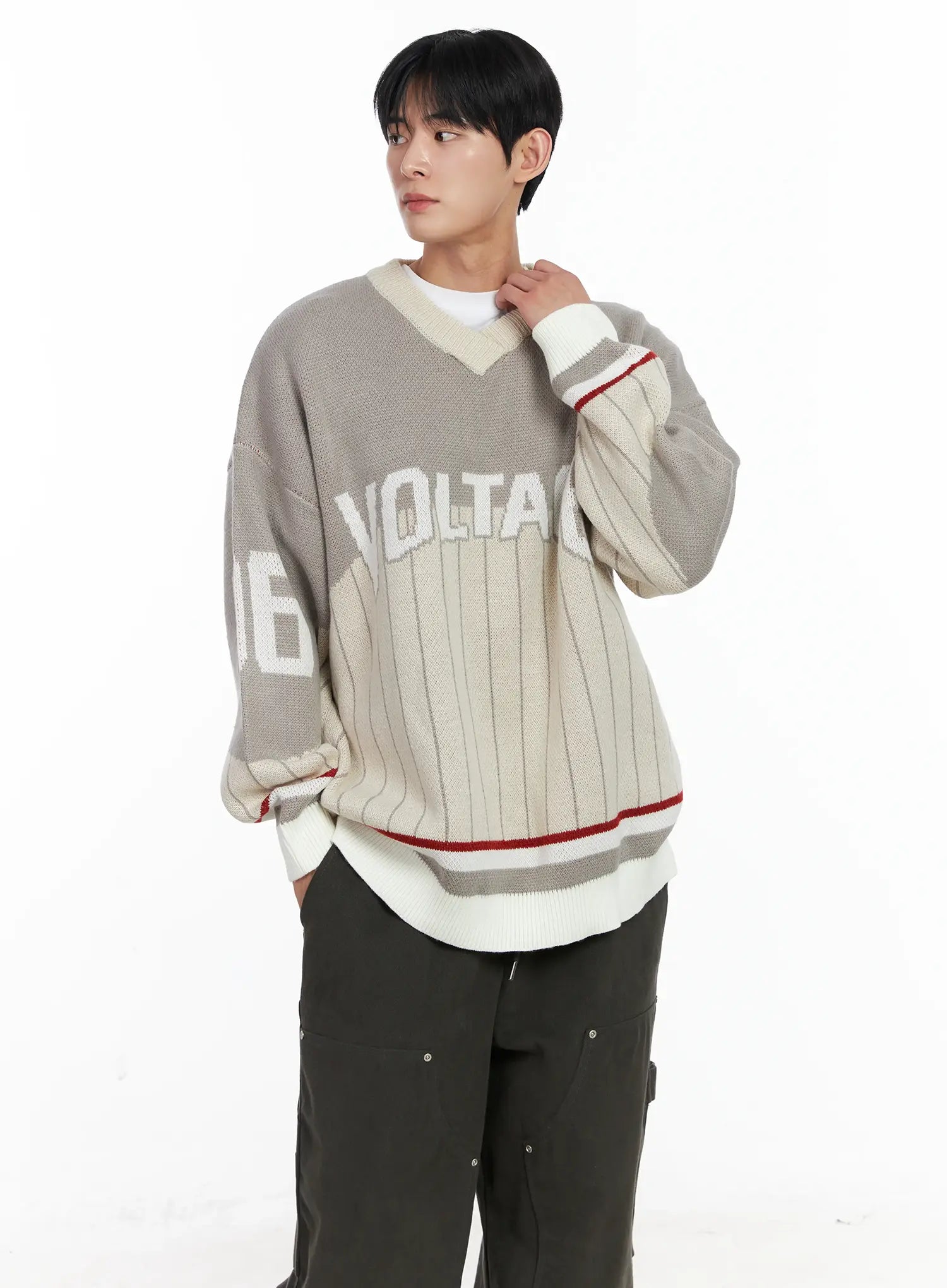 Men's Sporty V-Neck Knit Sweater IJ521