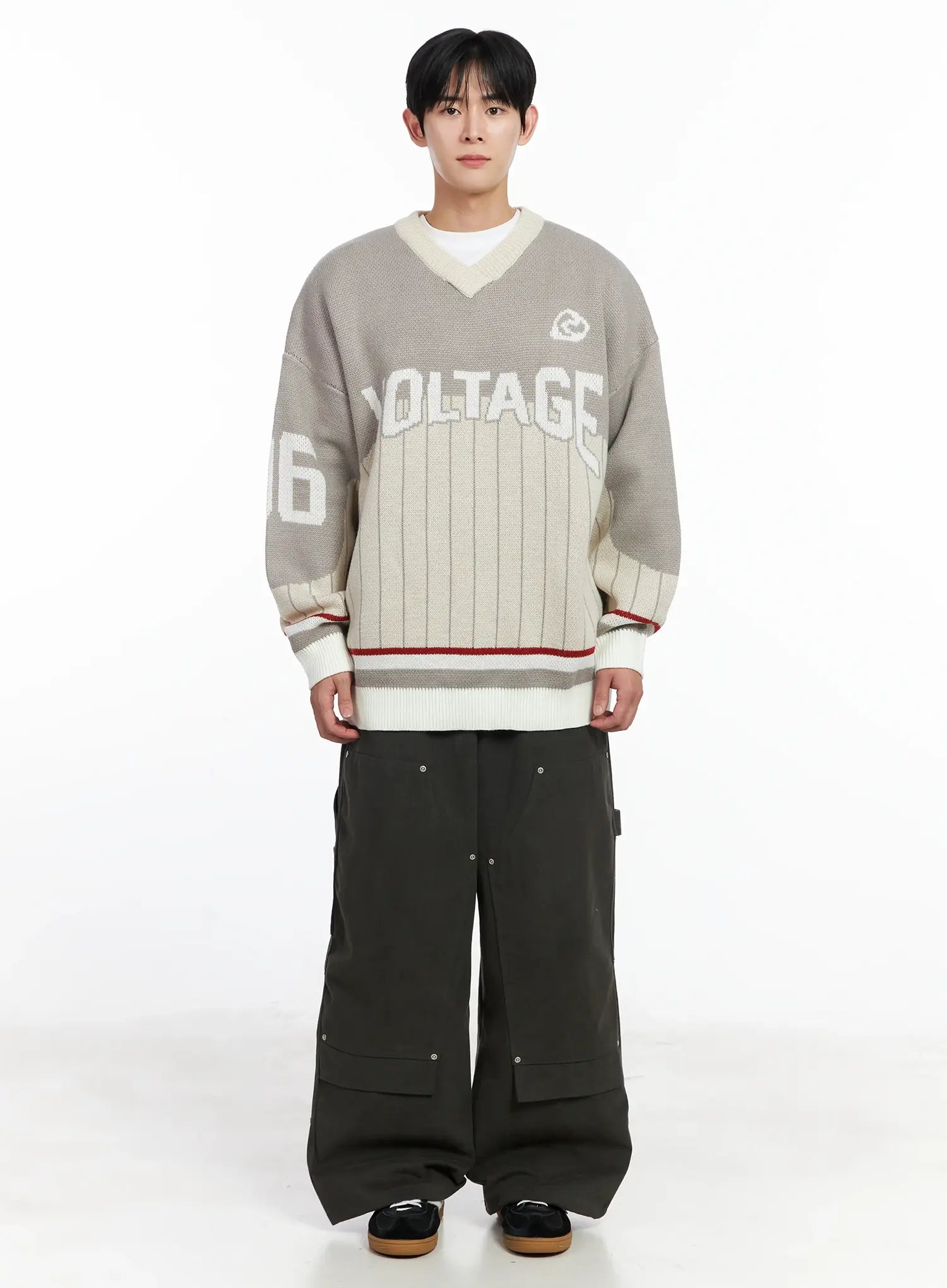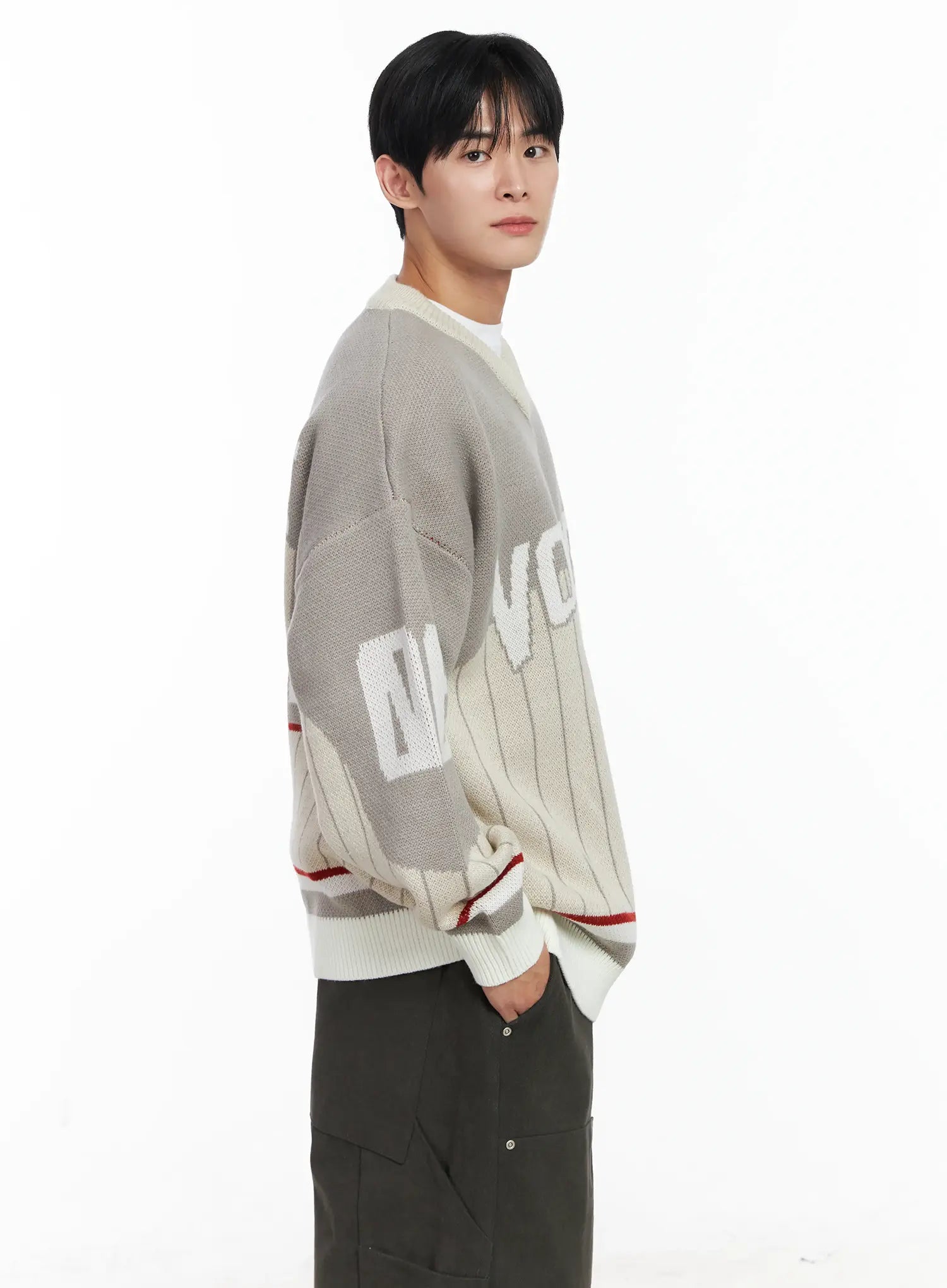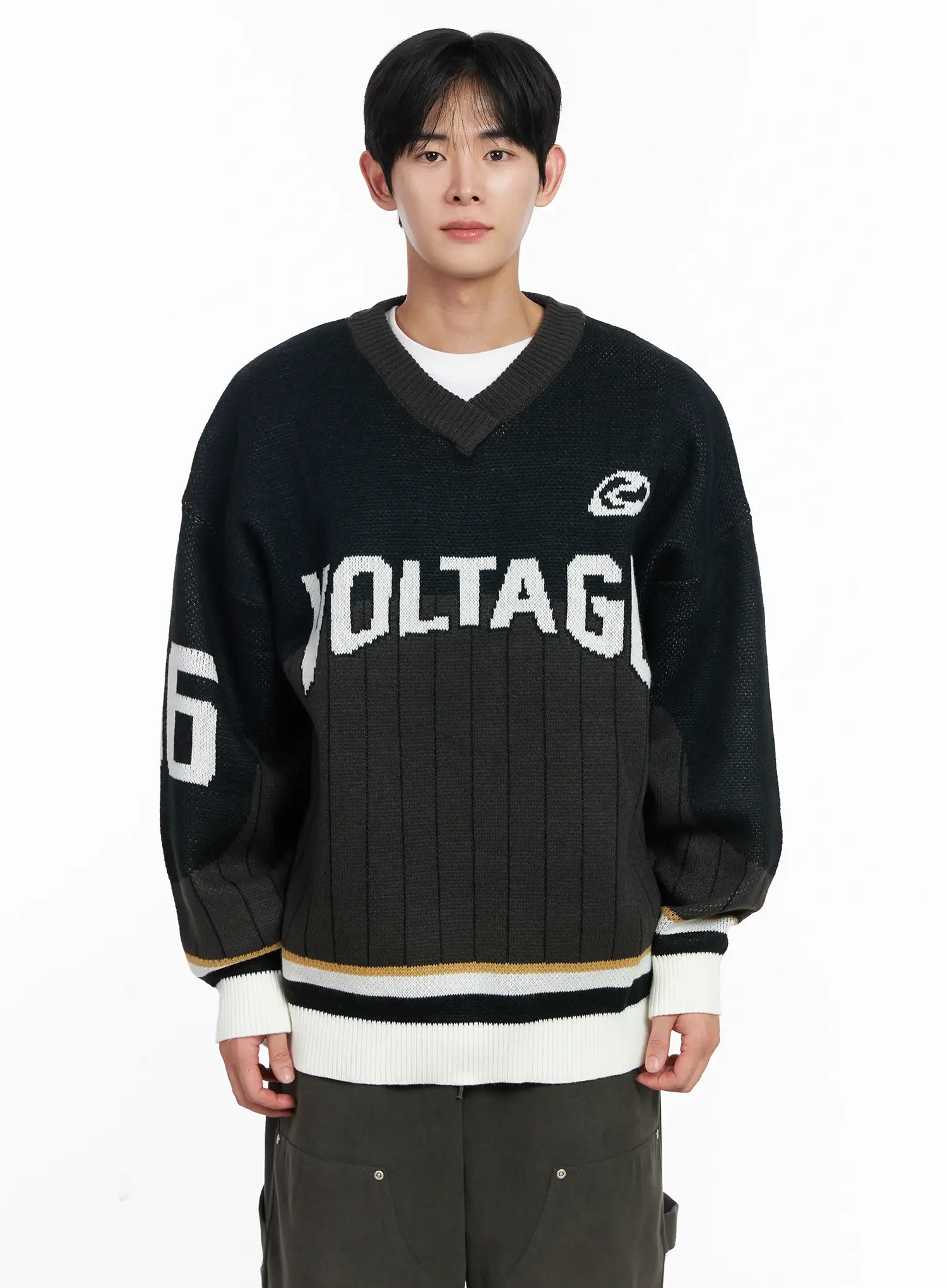 Men's Sporty V-Neck Knit Sweater IJ521